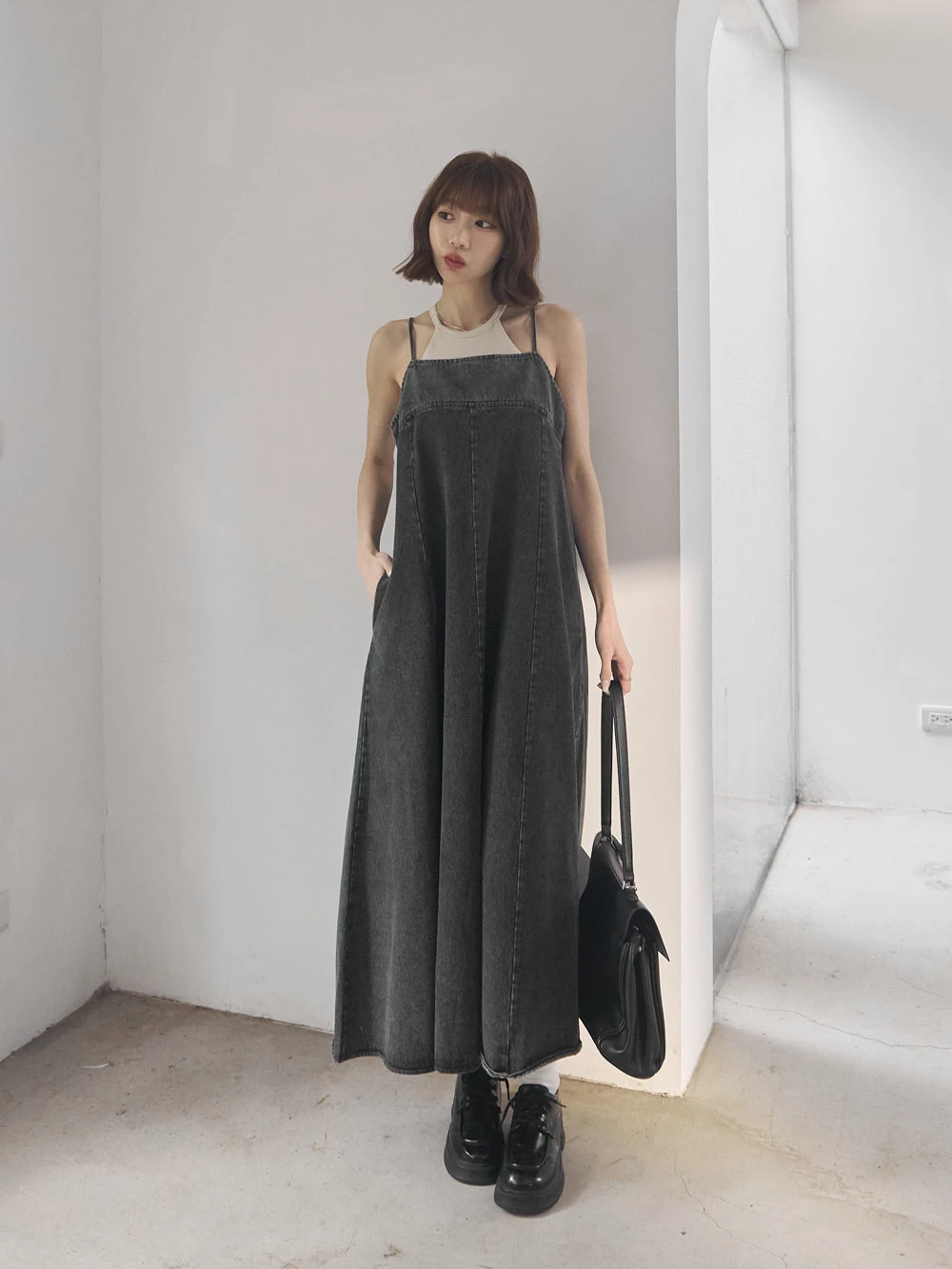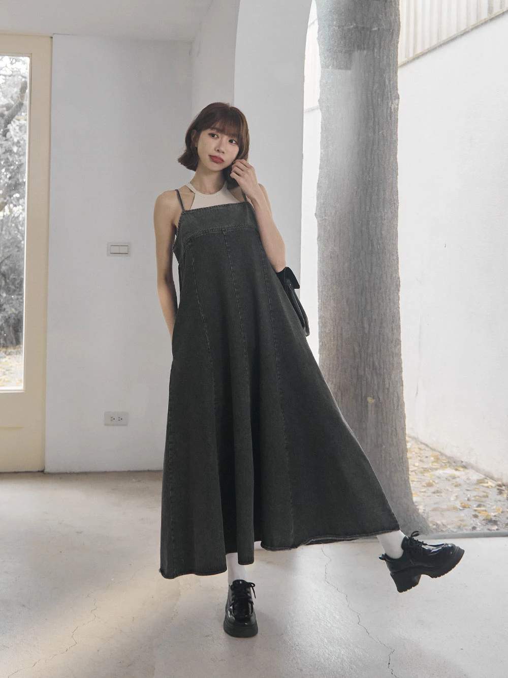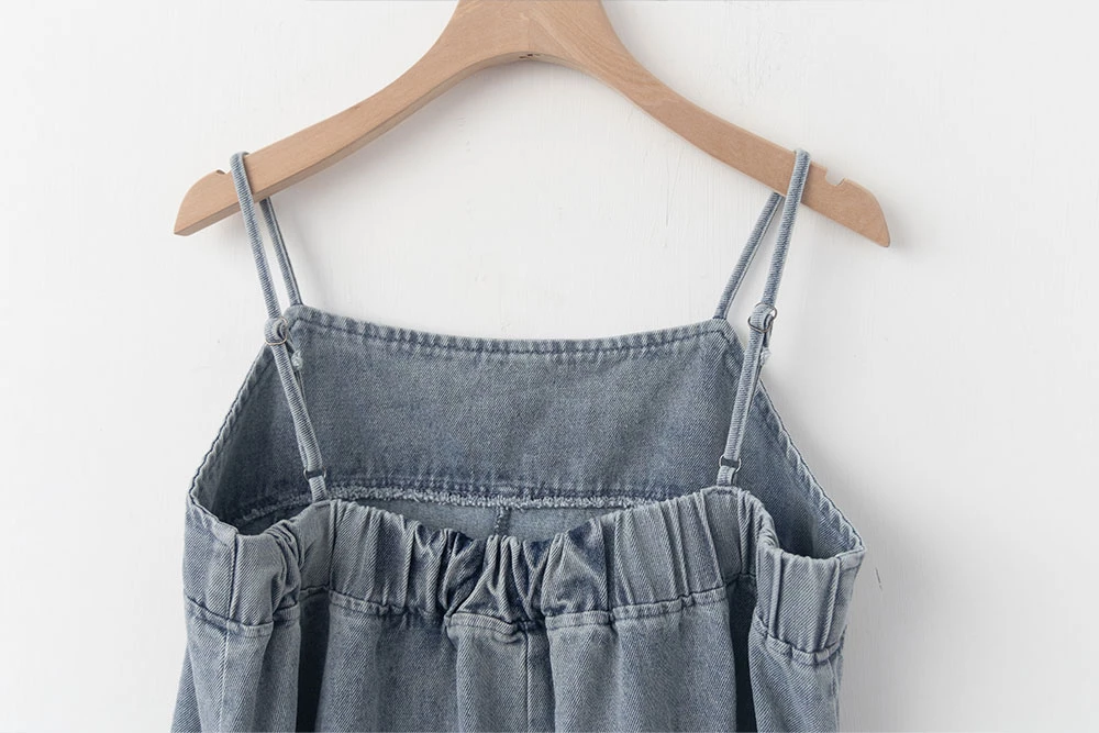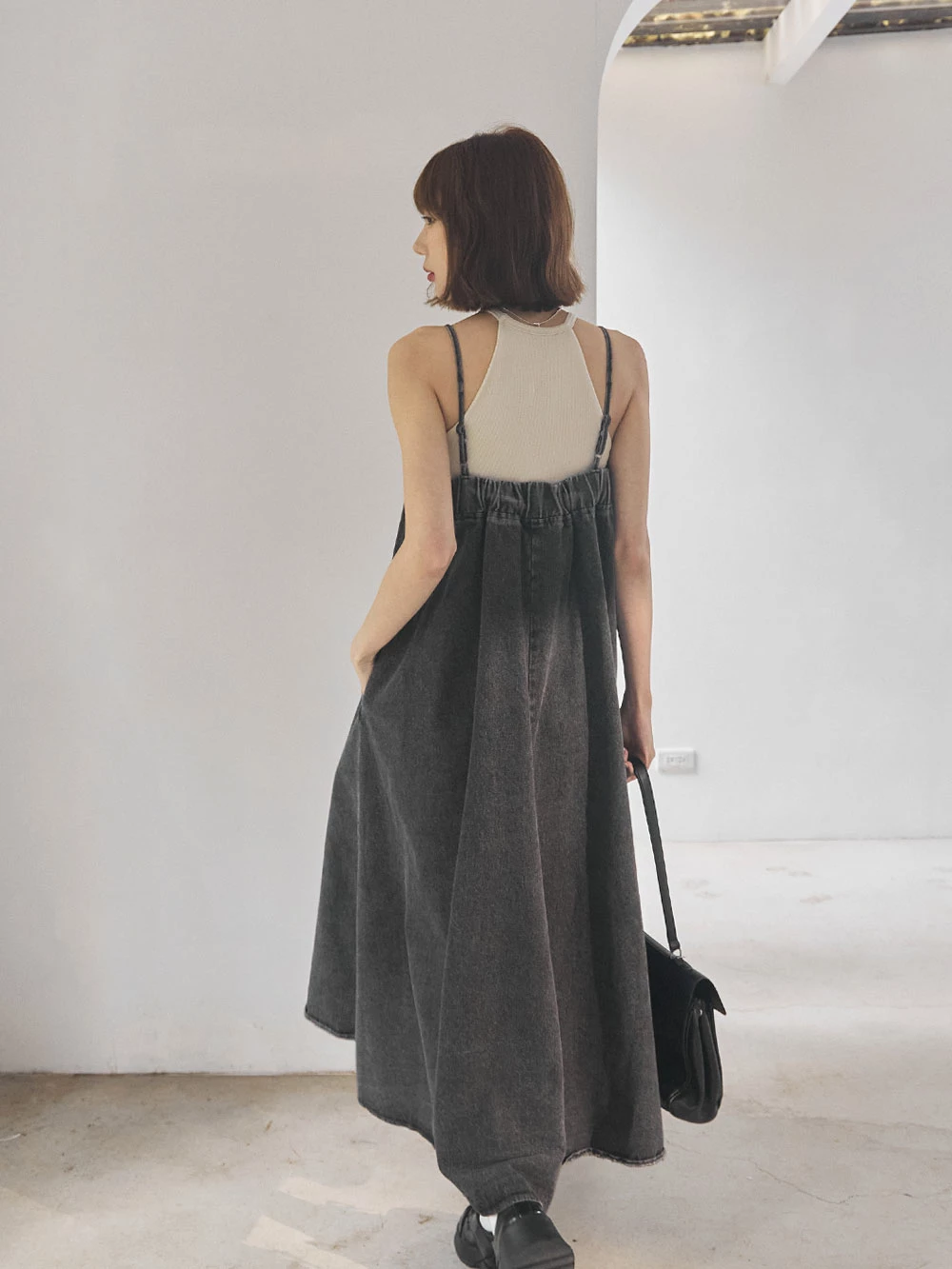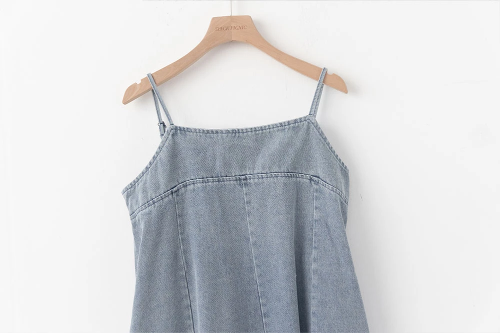 後鬆緊細肩牛仔洋裝 | Space Picnic