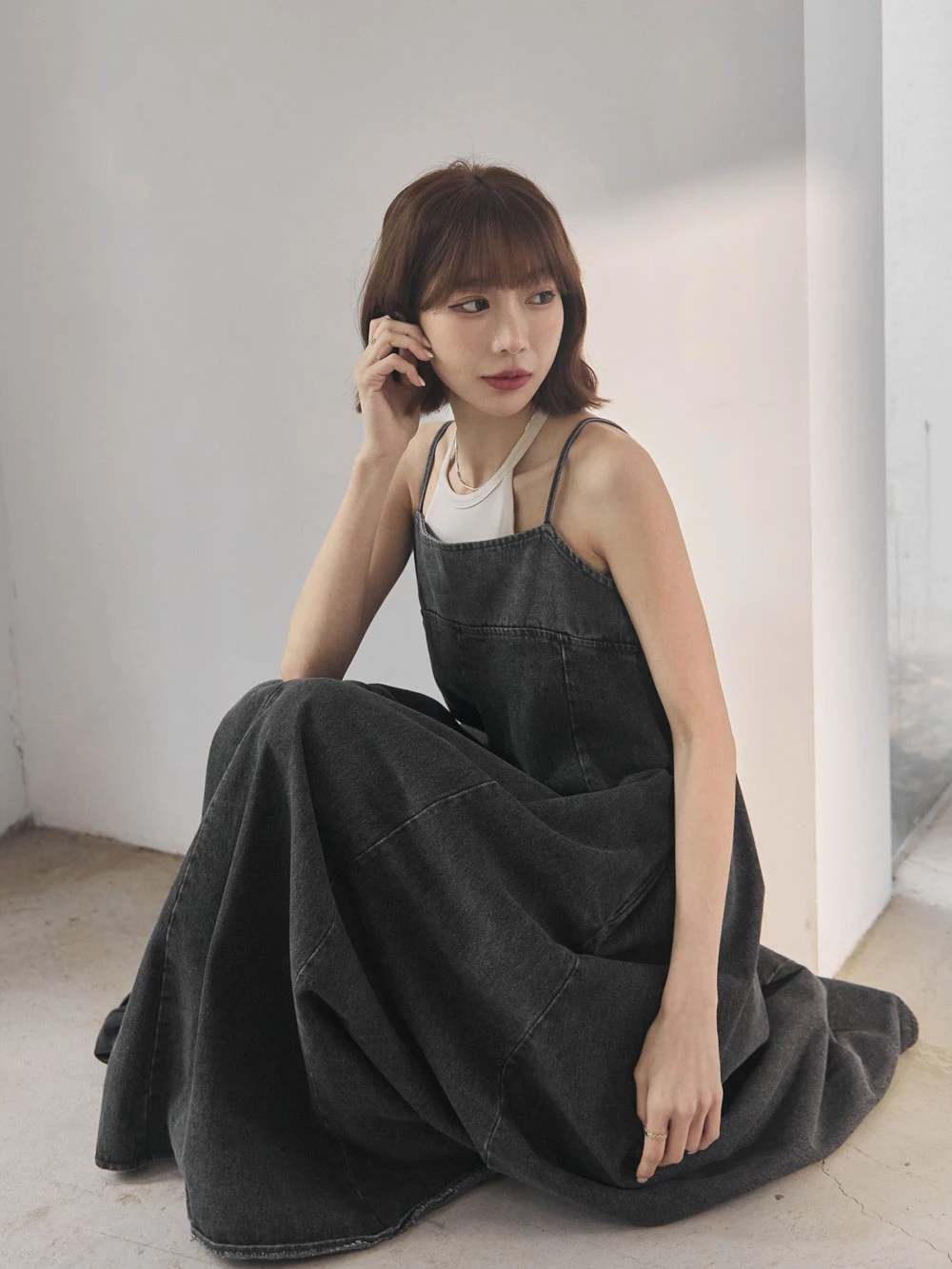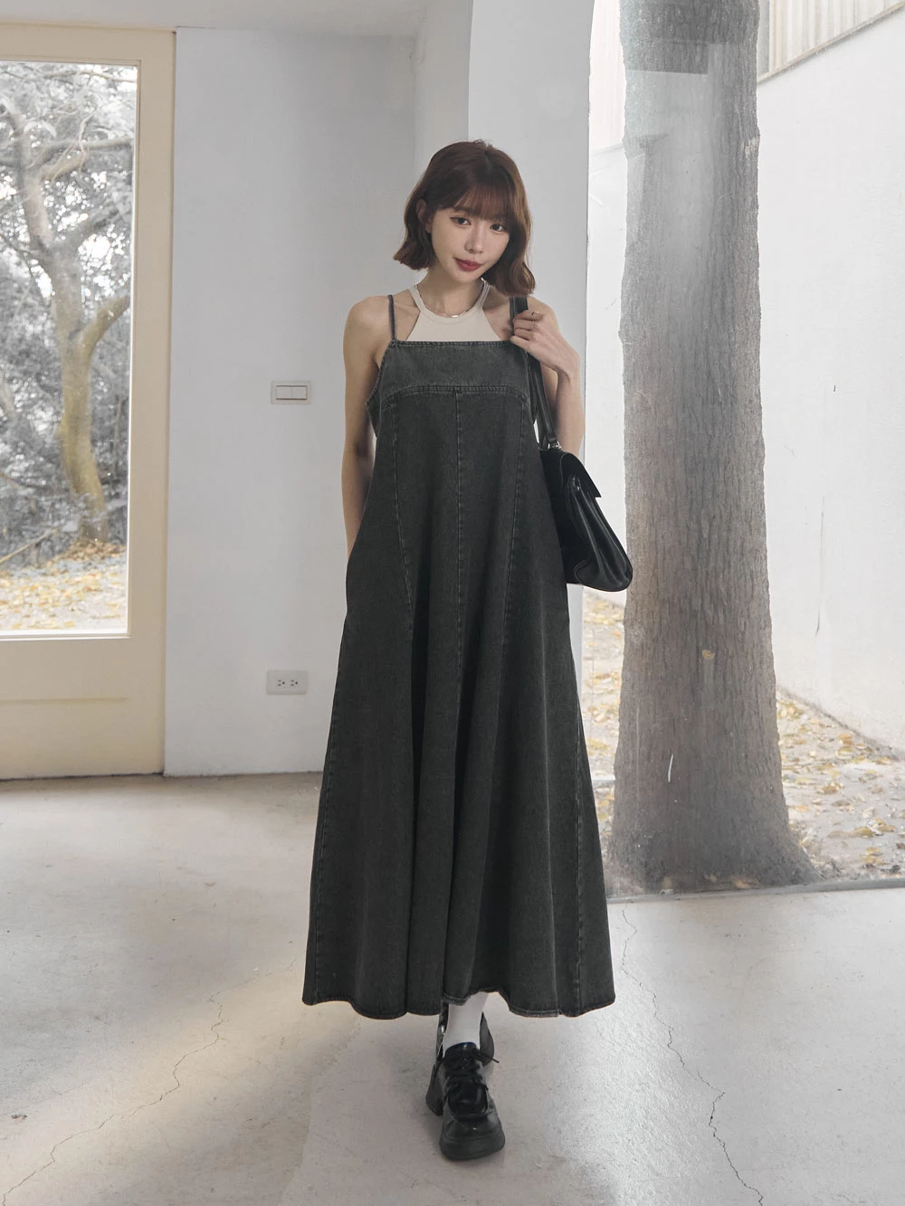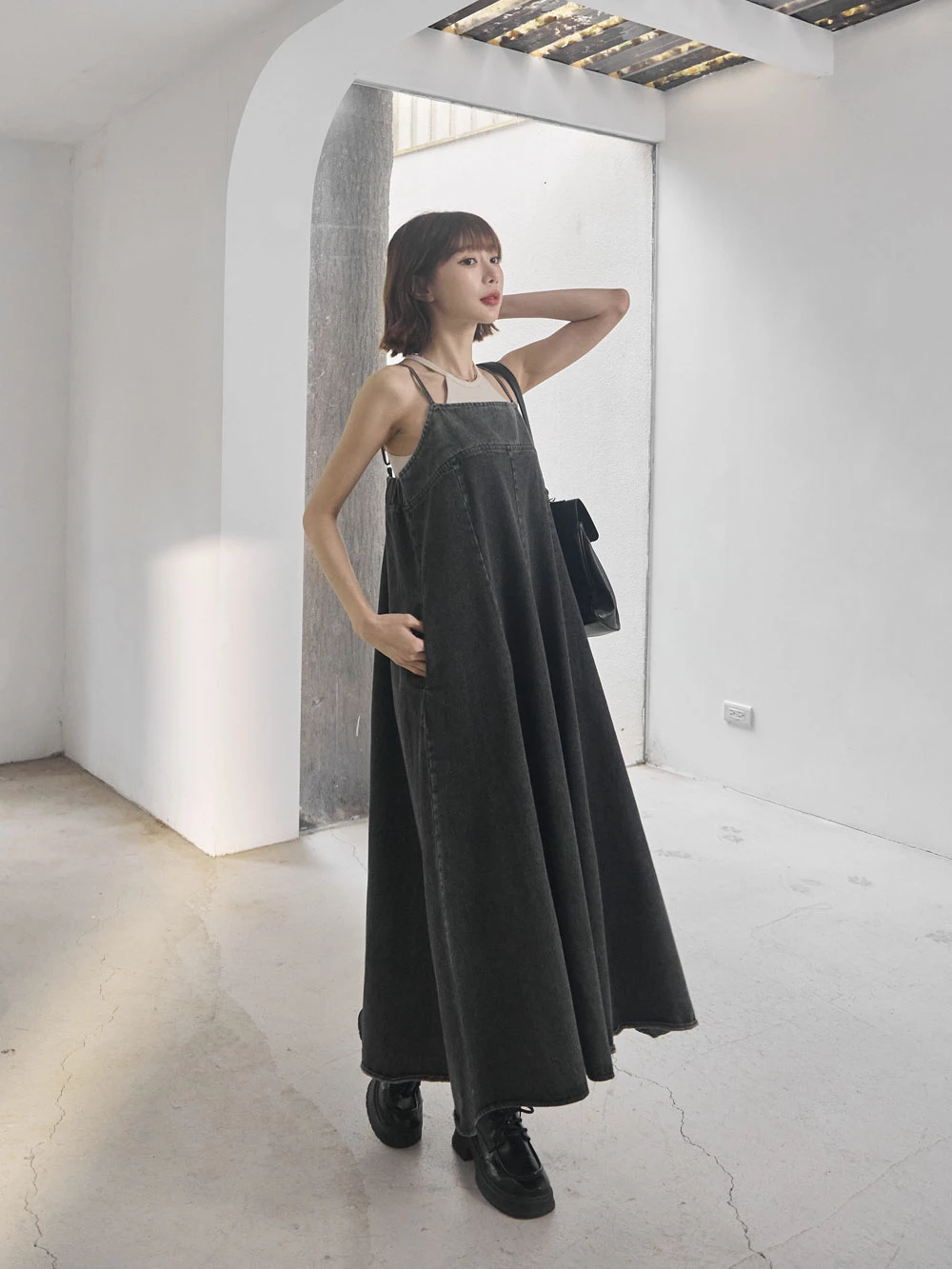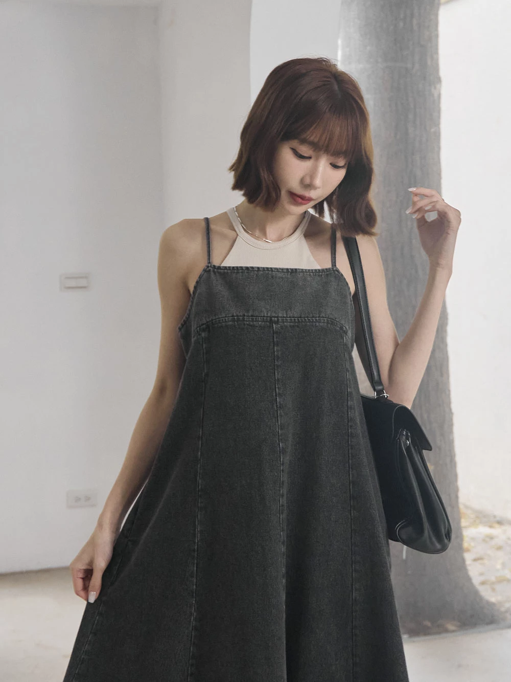 後鬆緊細肩牛仔洋裝 | Space Picnic