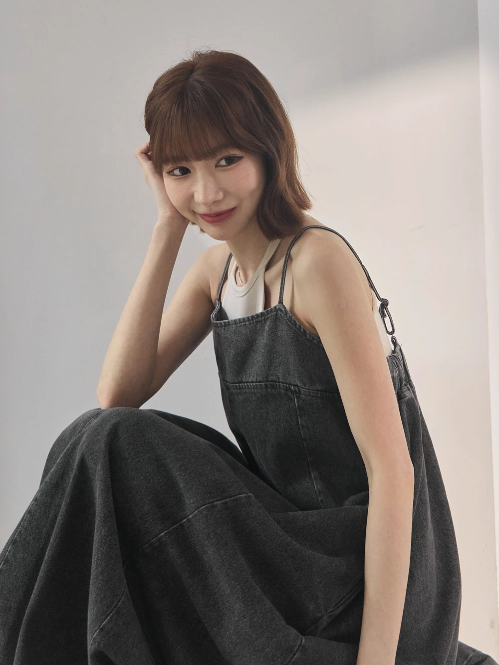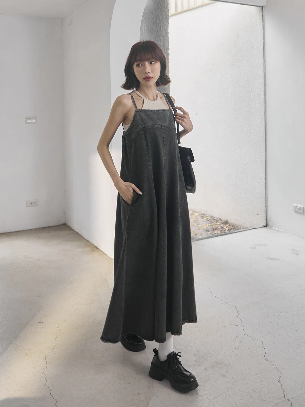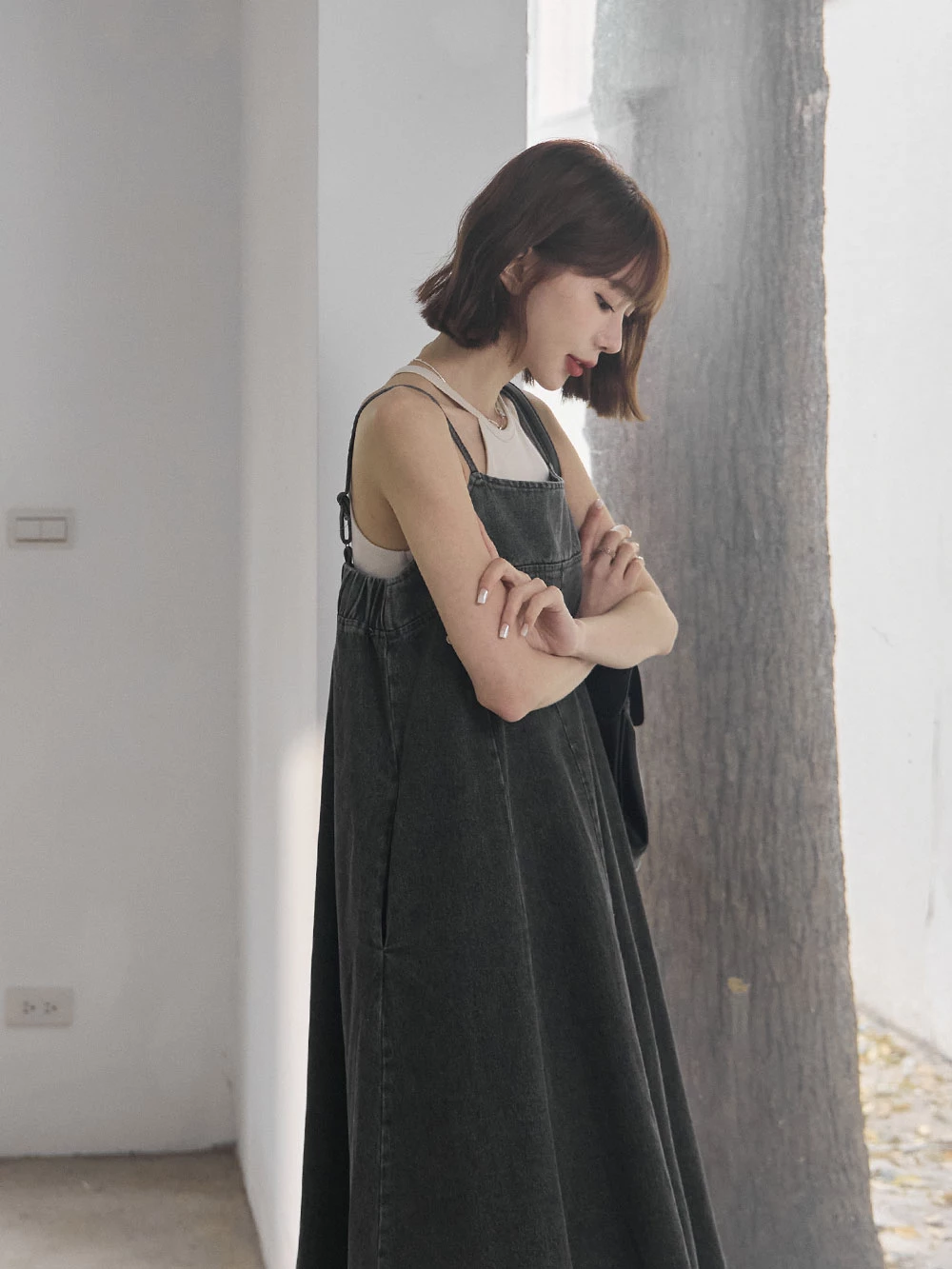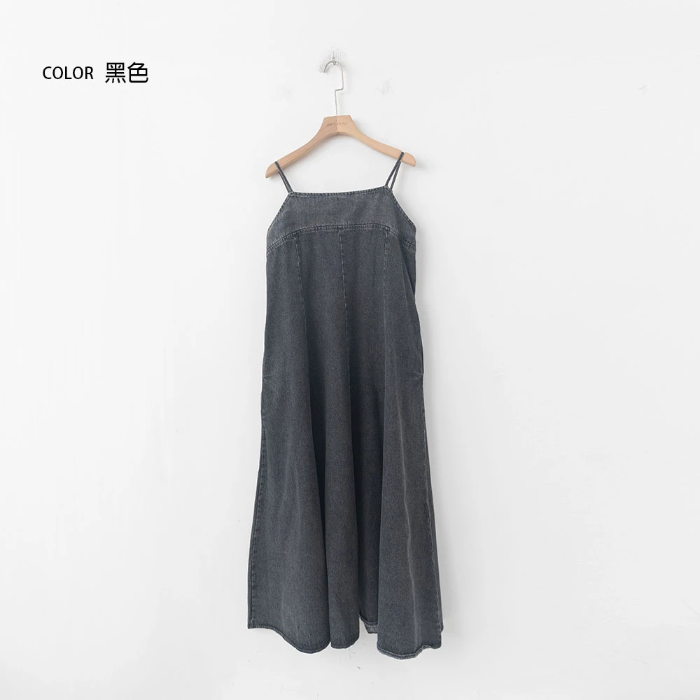 後鬆緊細肩牛仔洋裝 | Space Picnic