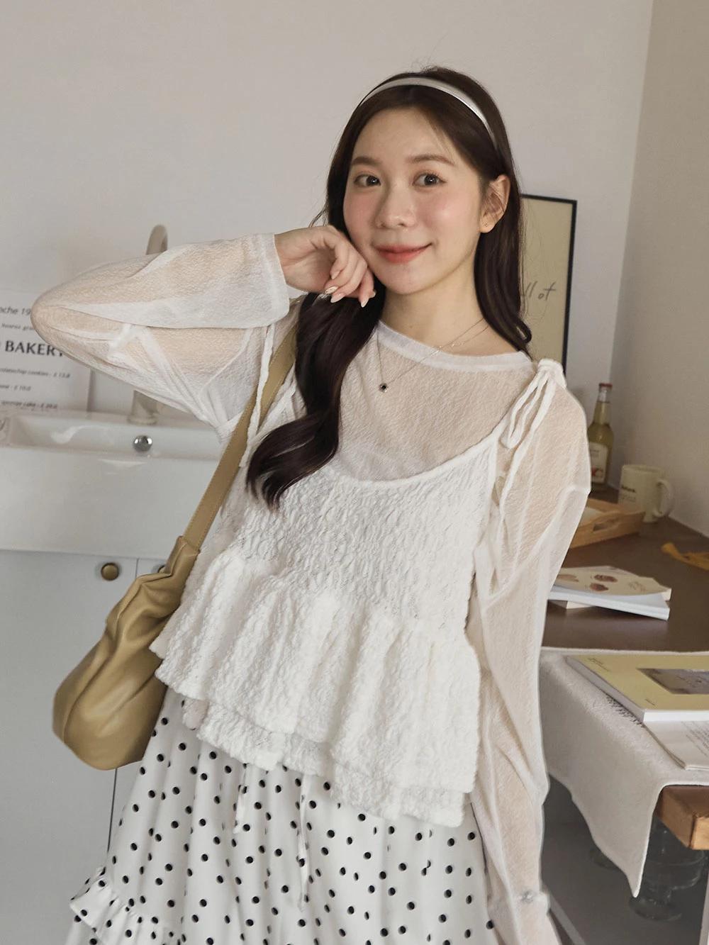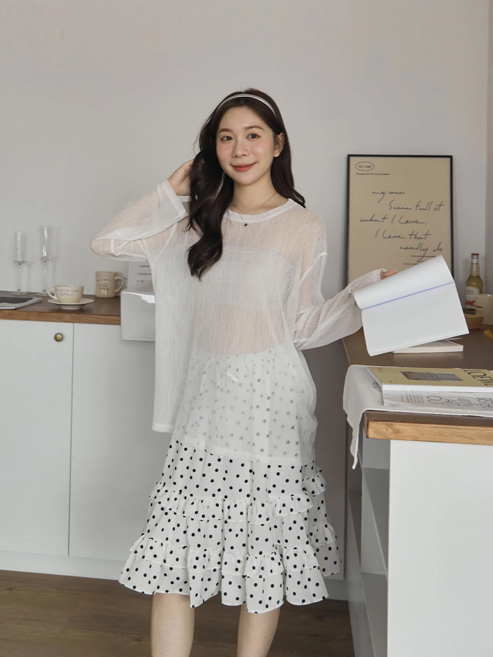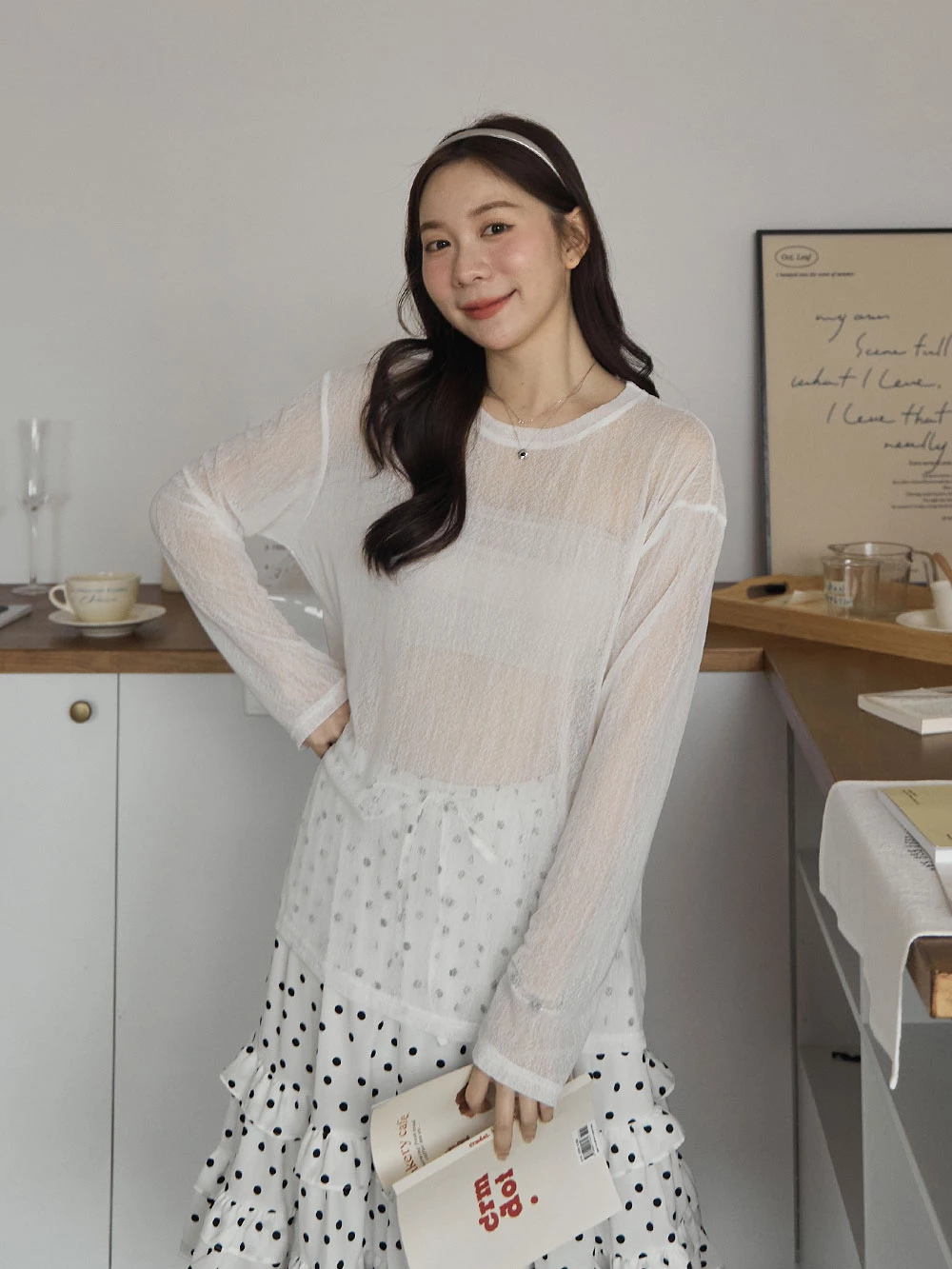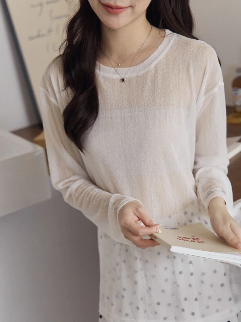 紋理感透膚寬鬆上衣