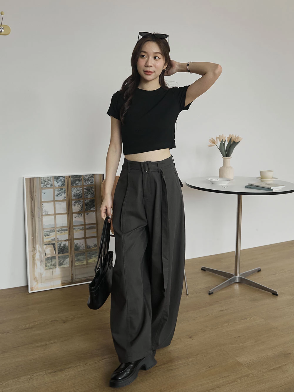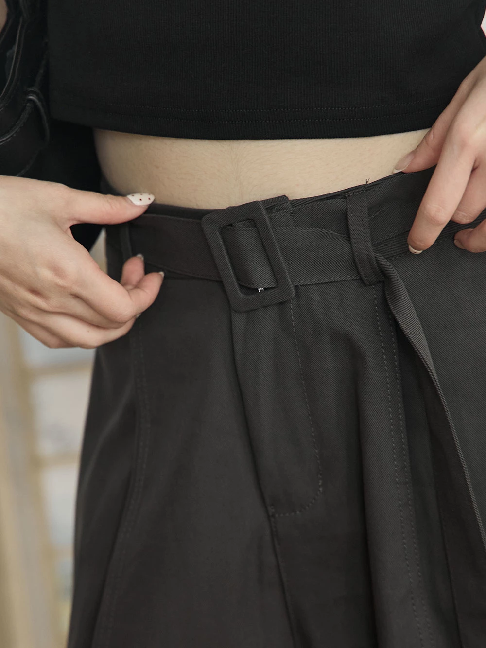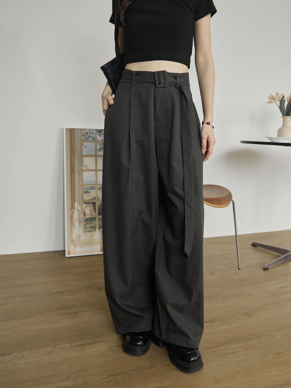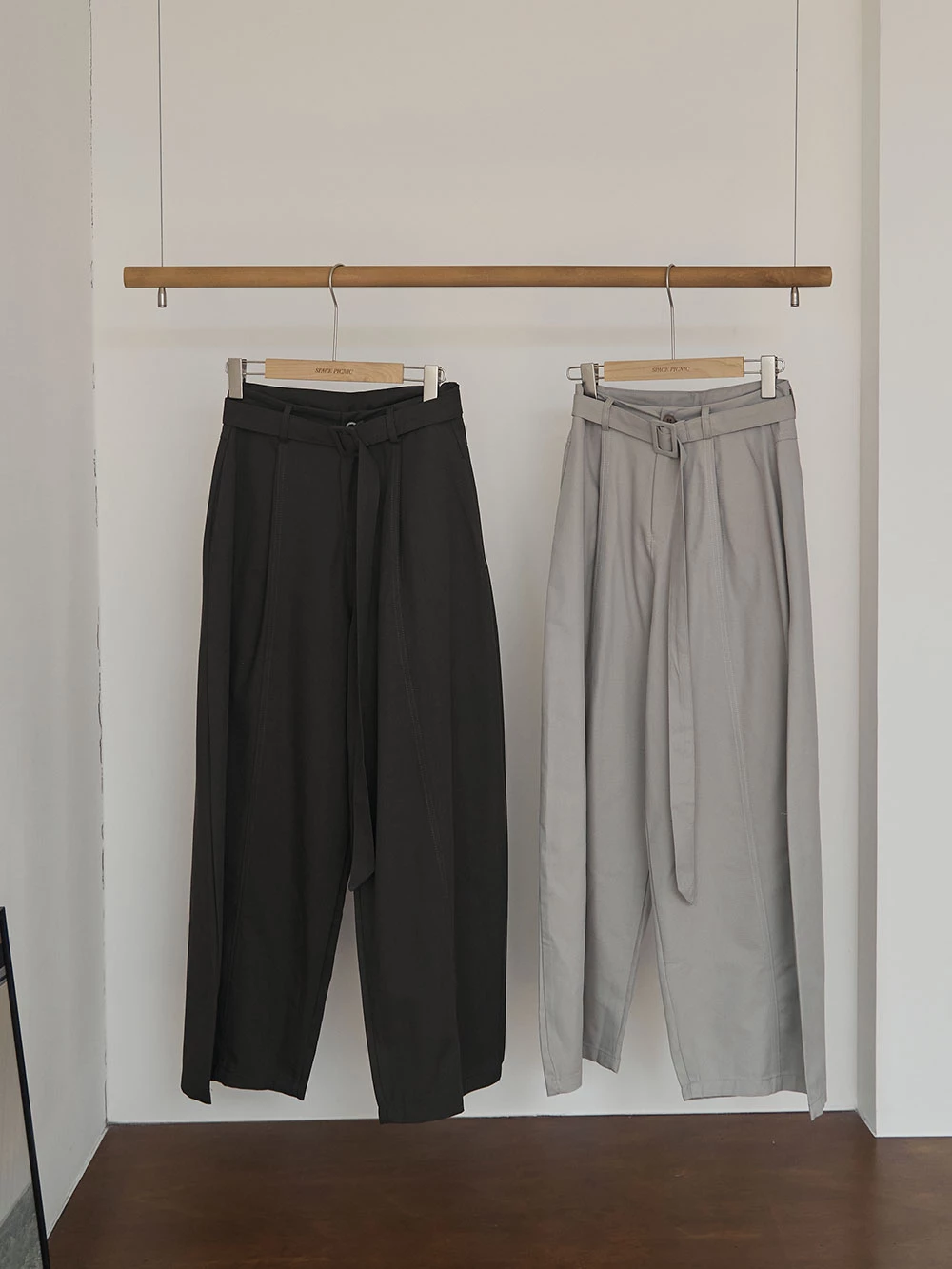 挺料斜紋打摺寬褲-附腰帶 | Space Picnic
