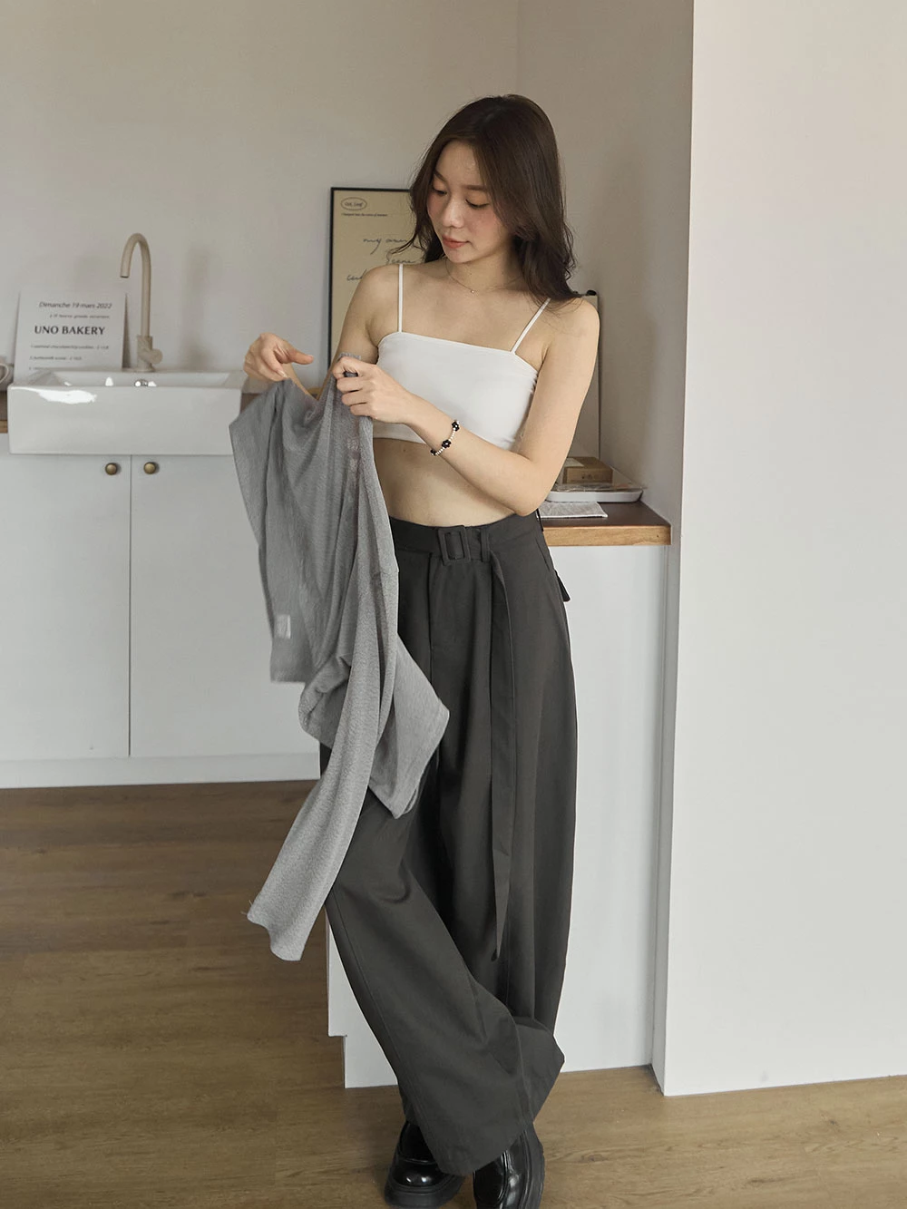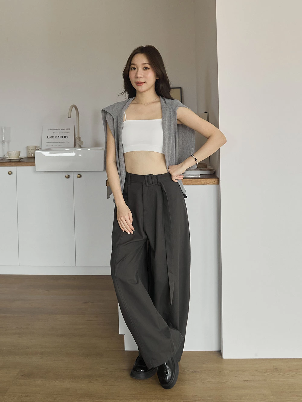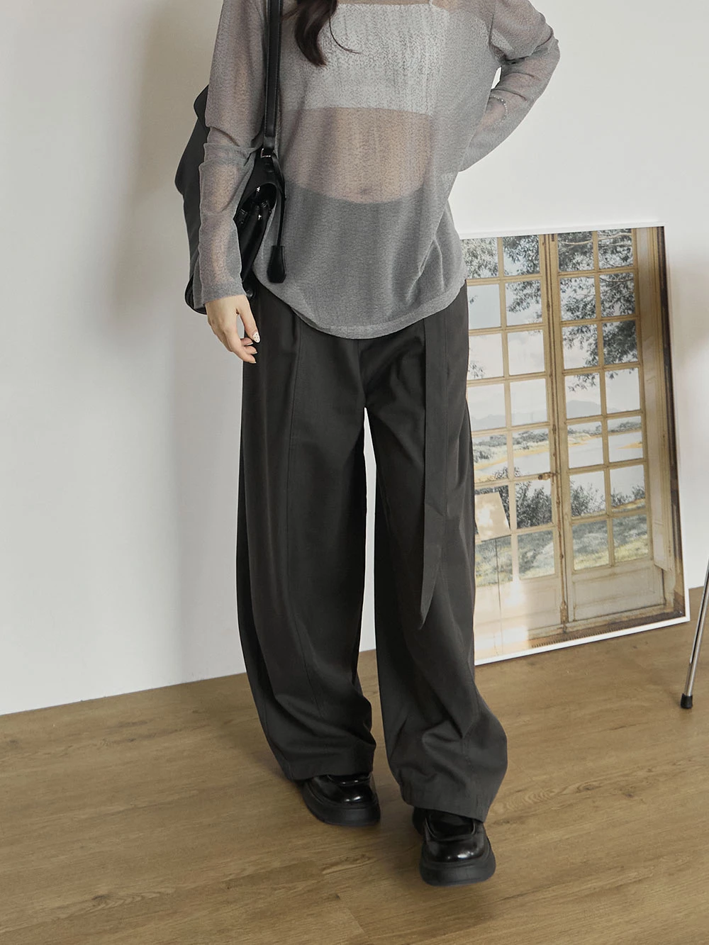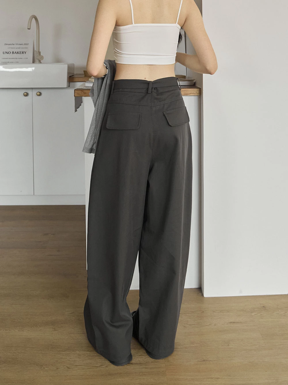 挺料斜紋打摺寬褲-附腰帶 | Space Picnic
