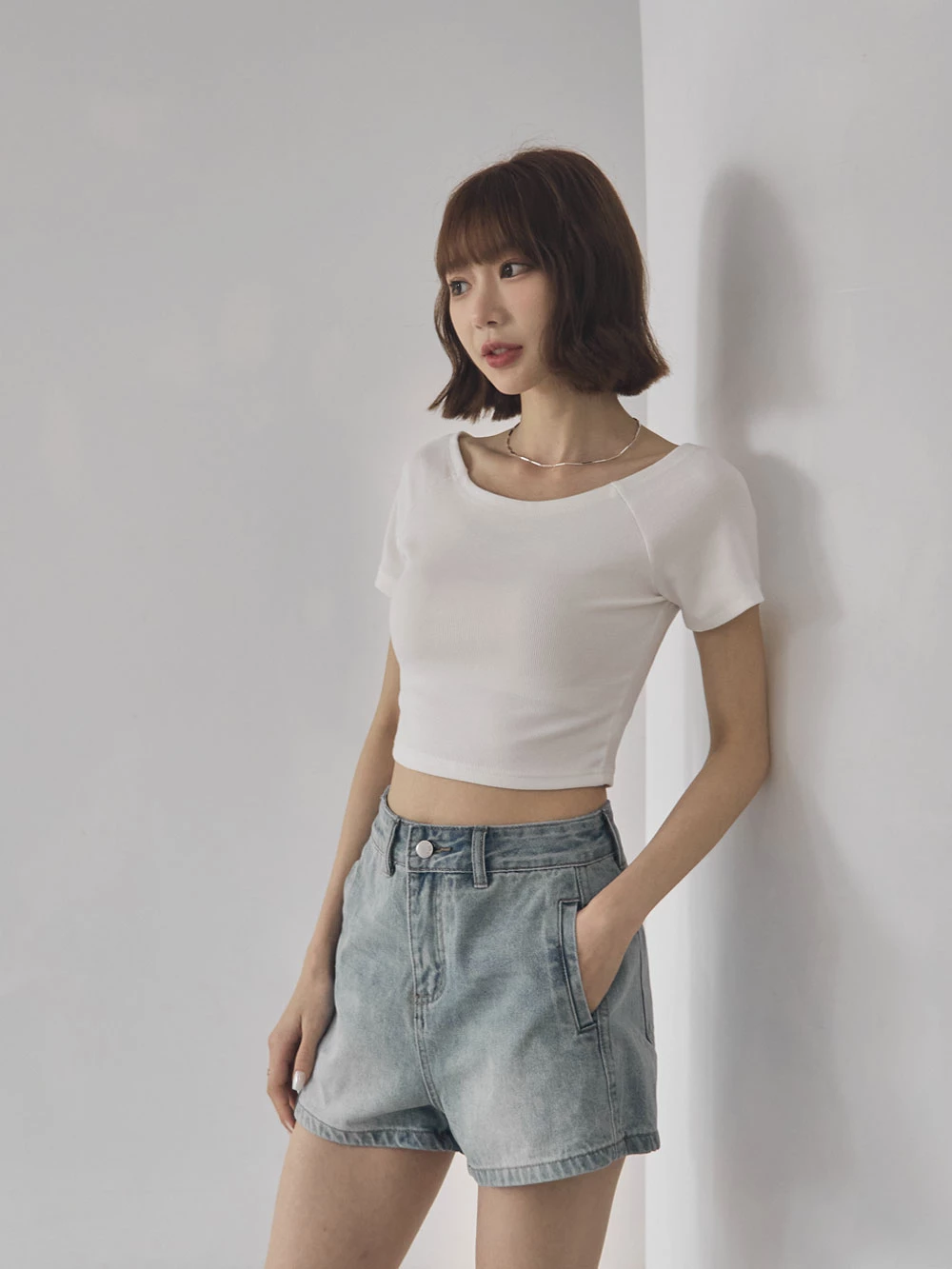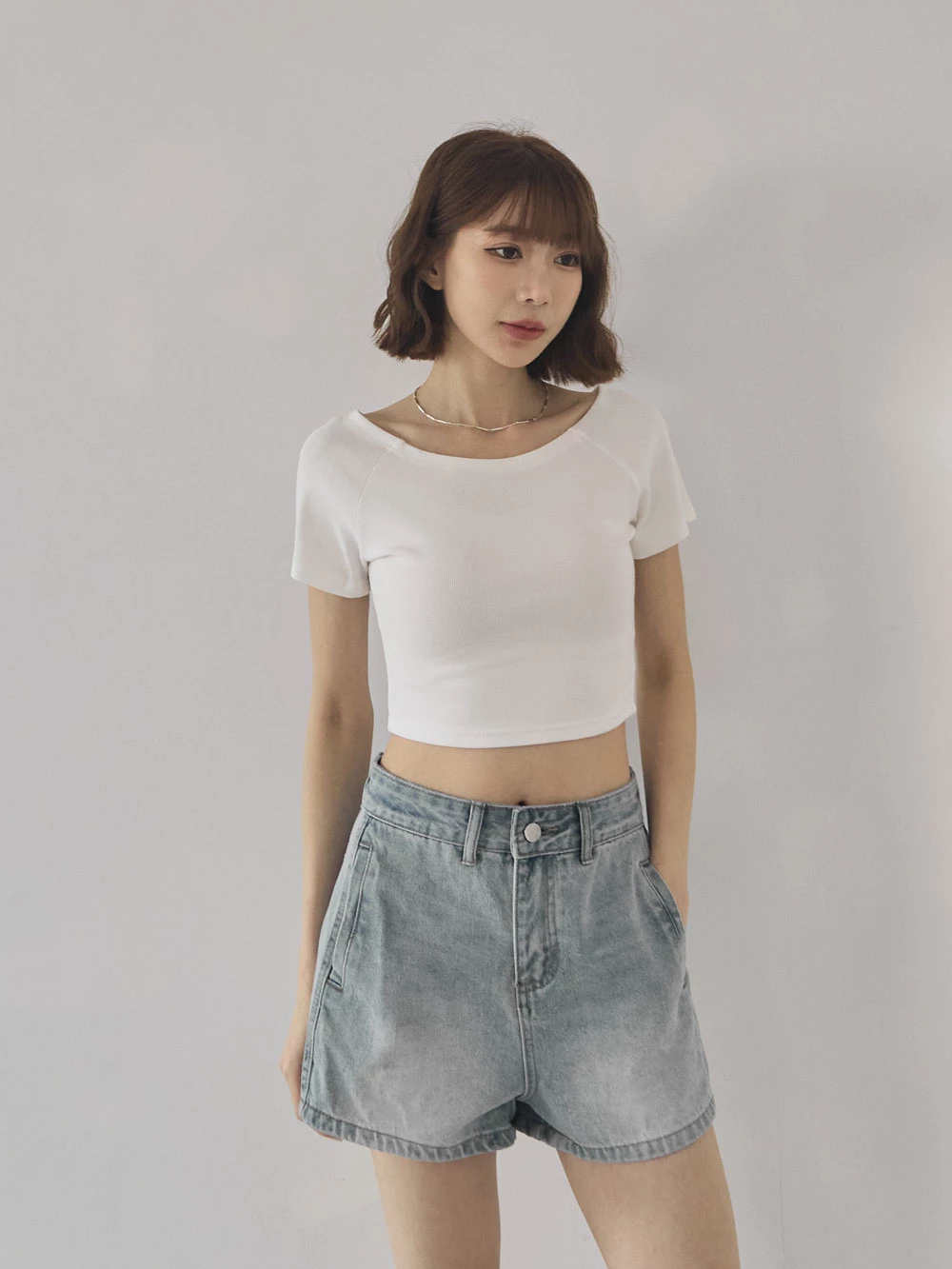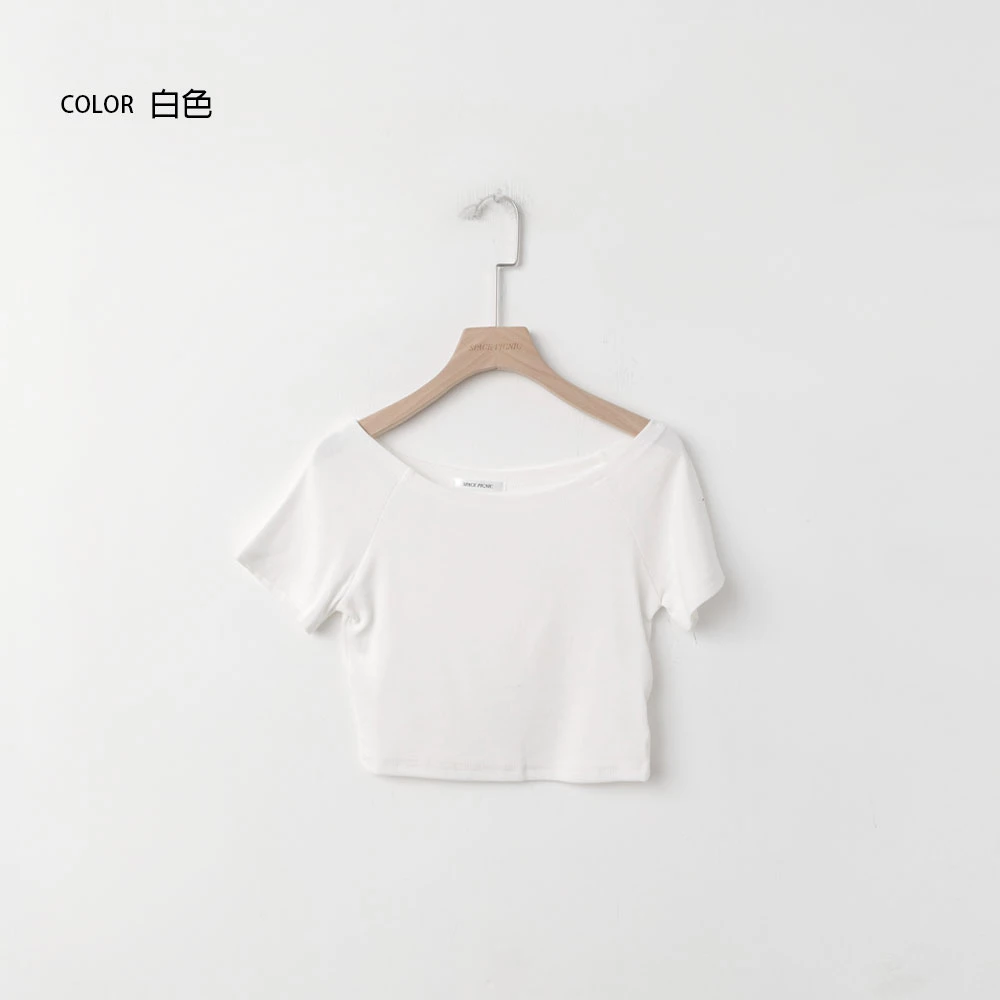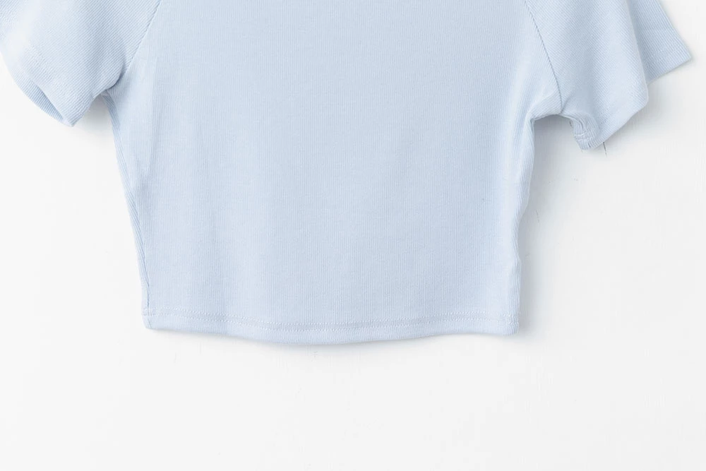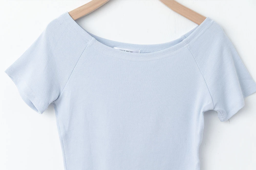 坑條短版寬領上衣