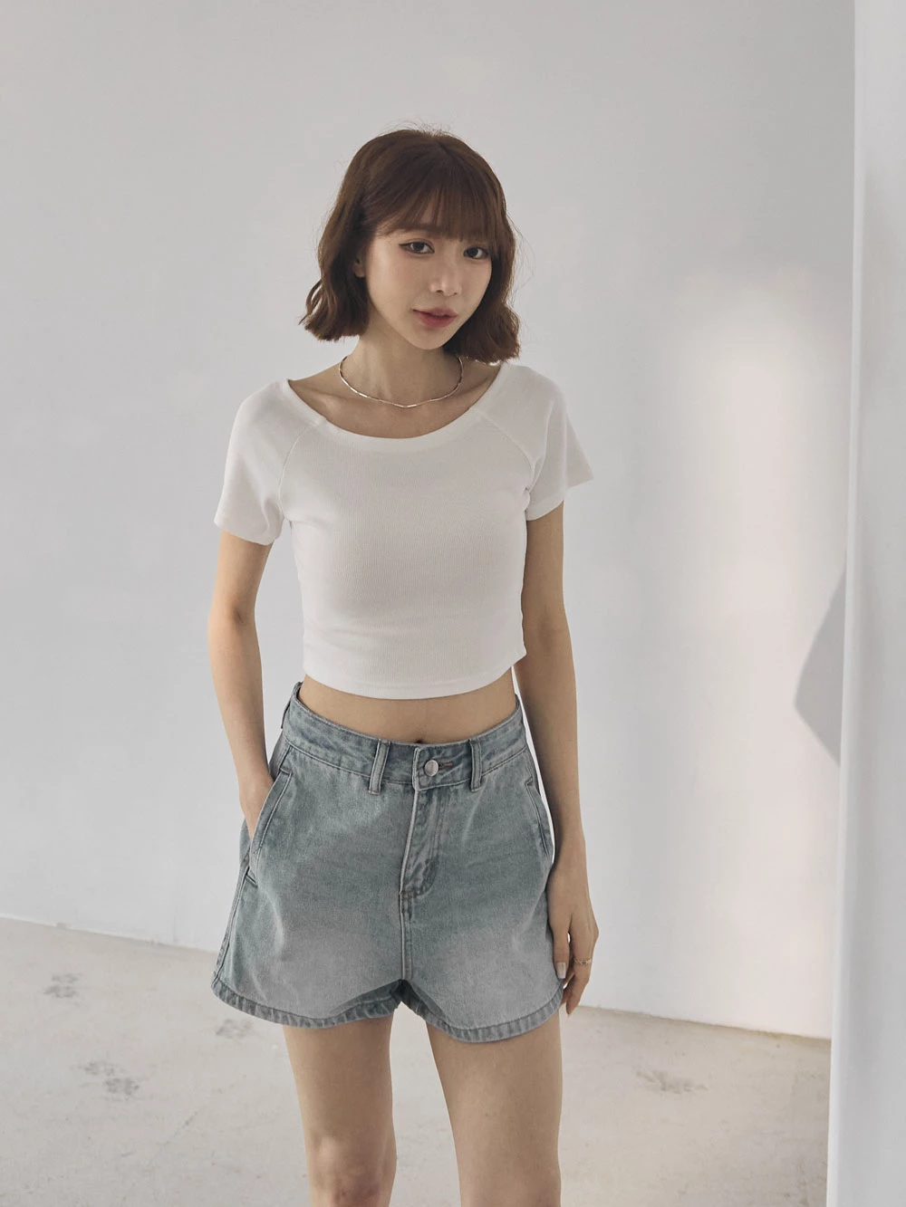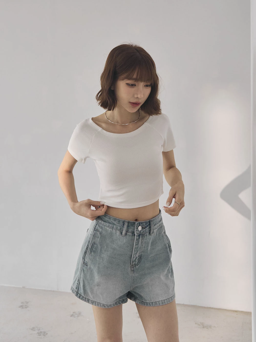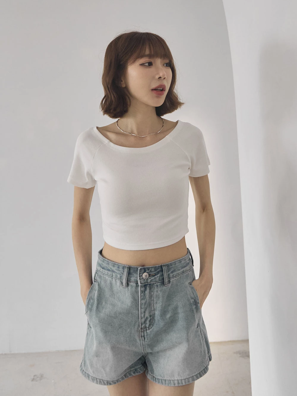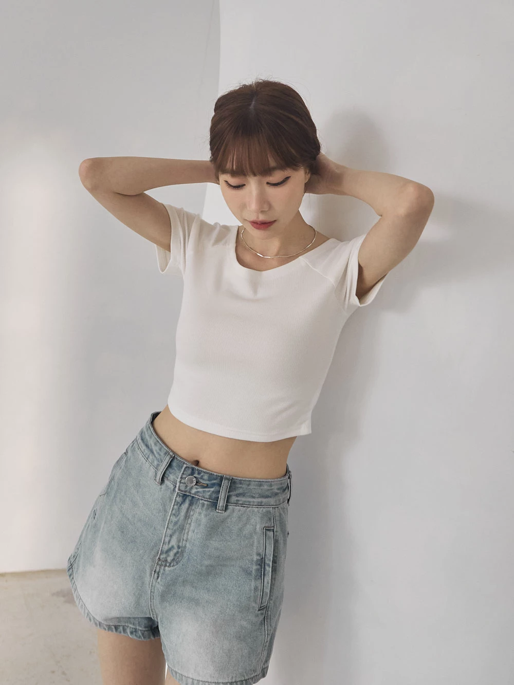 坑條短版寬領上衣