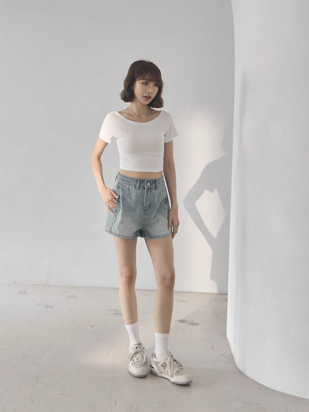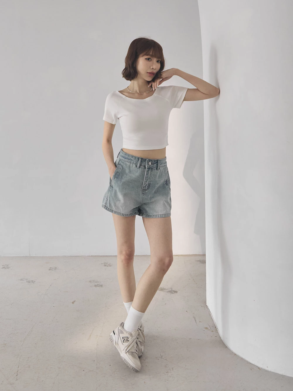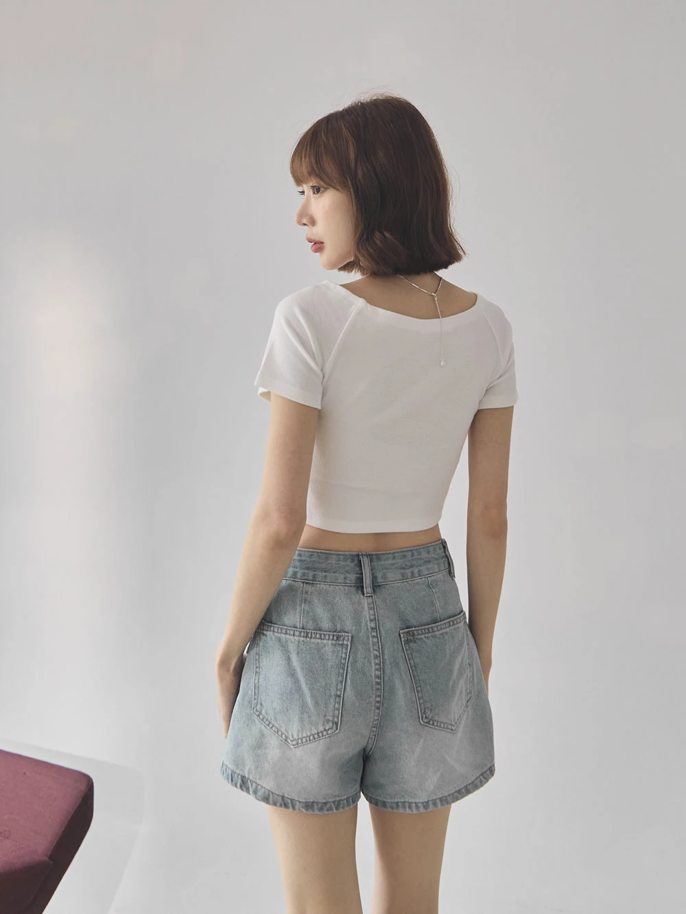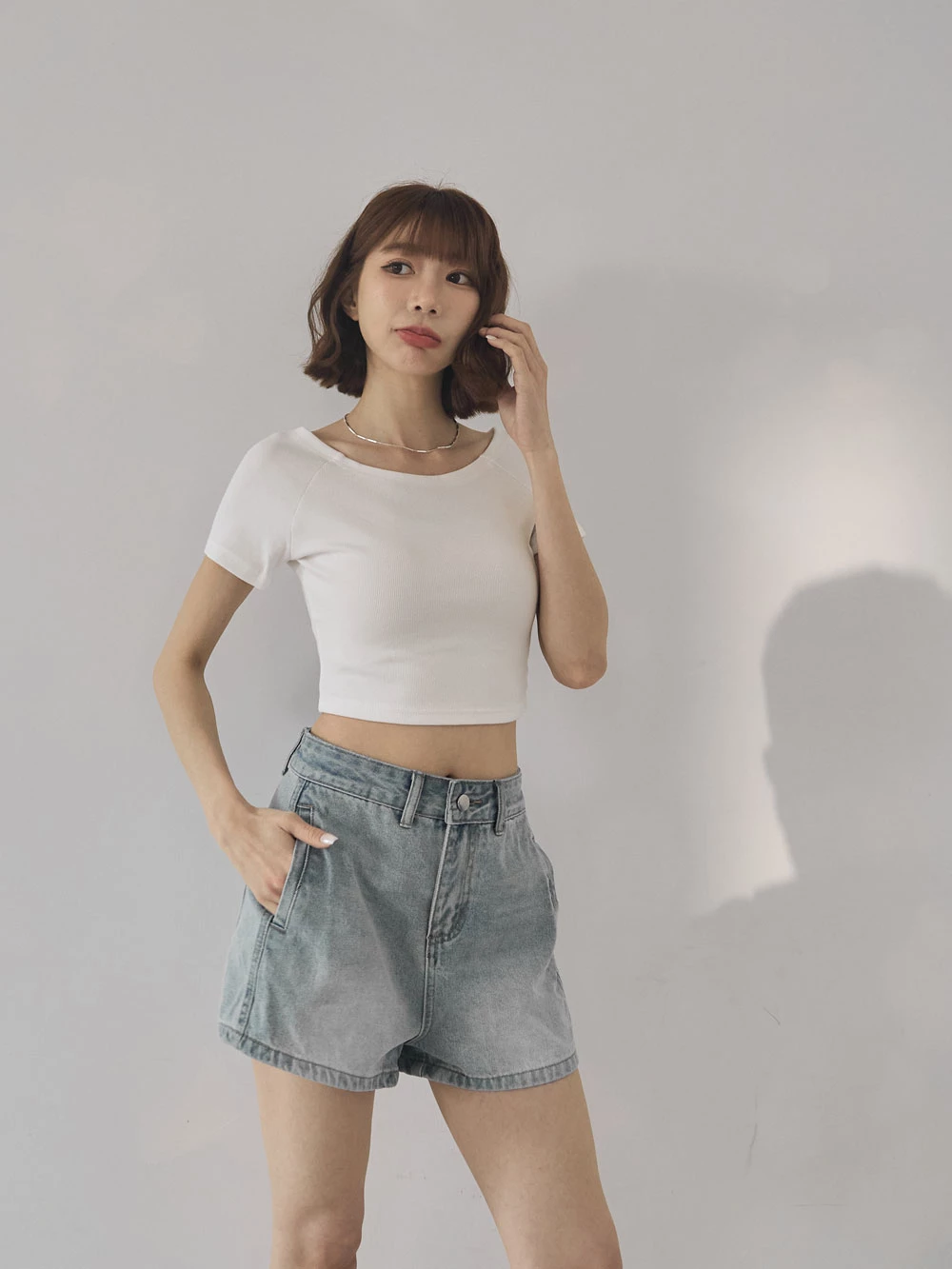坑條短版寬領上衣