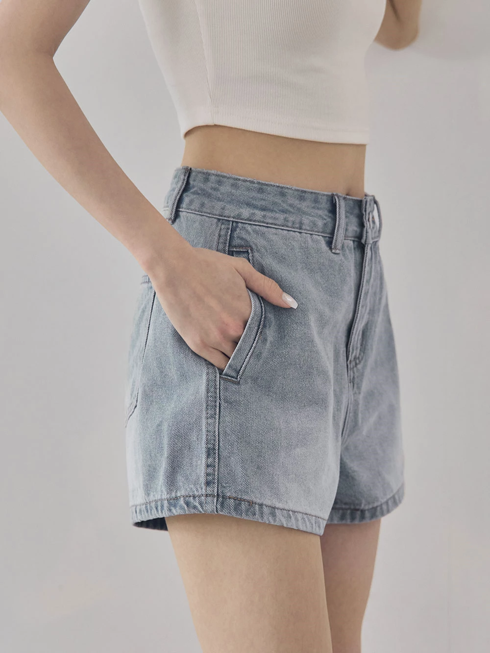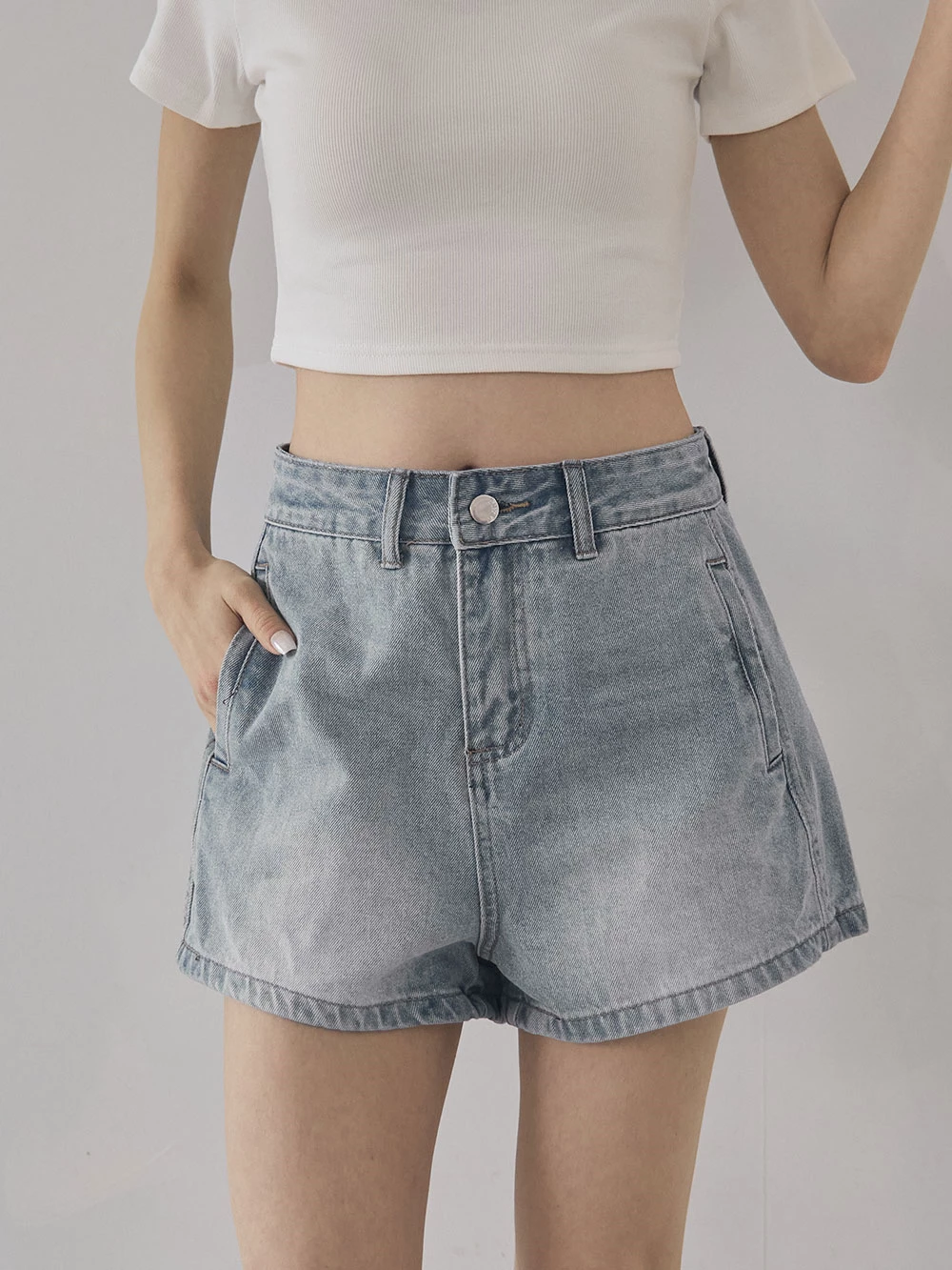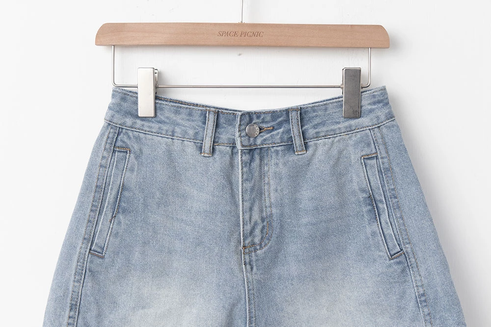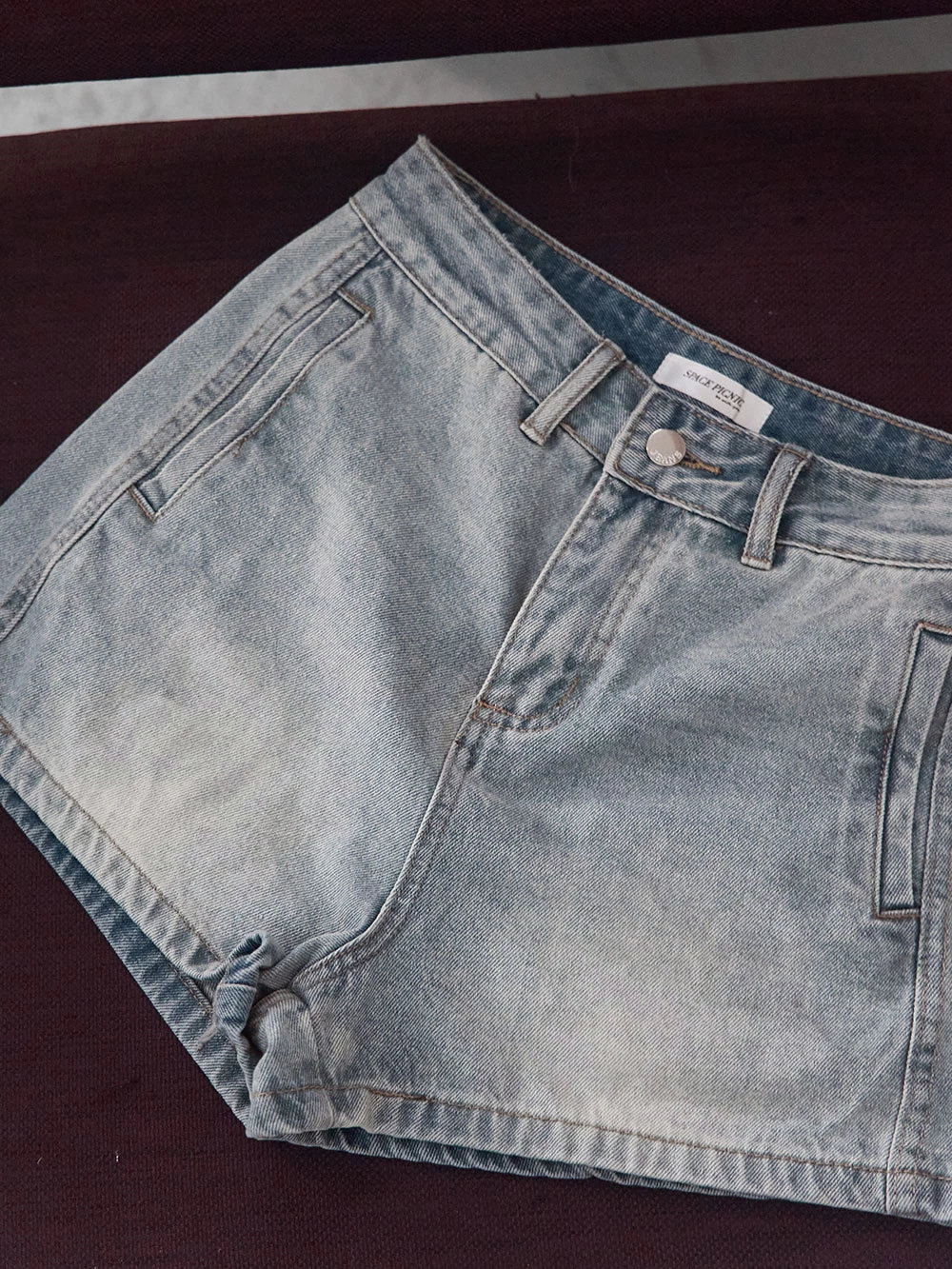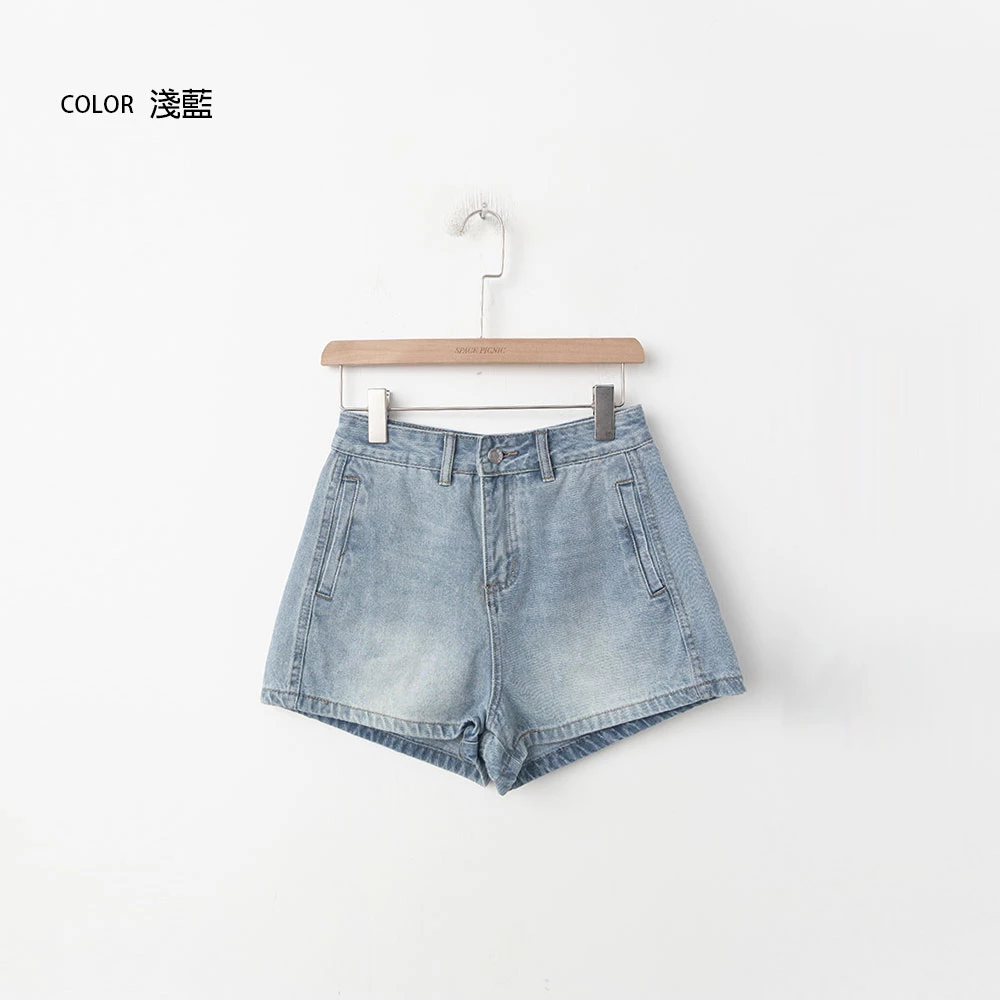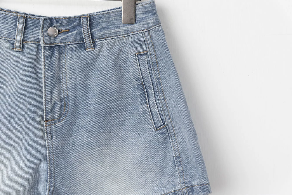 刷色雙口袋牛仔短褲