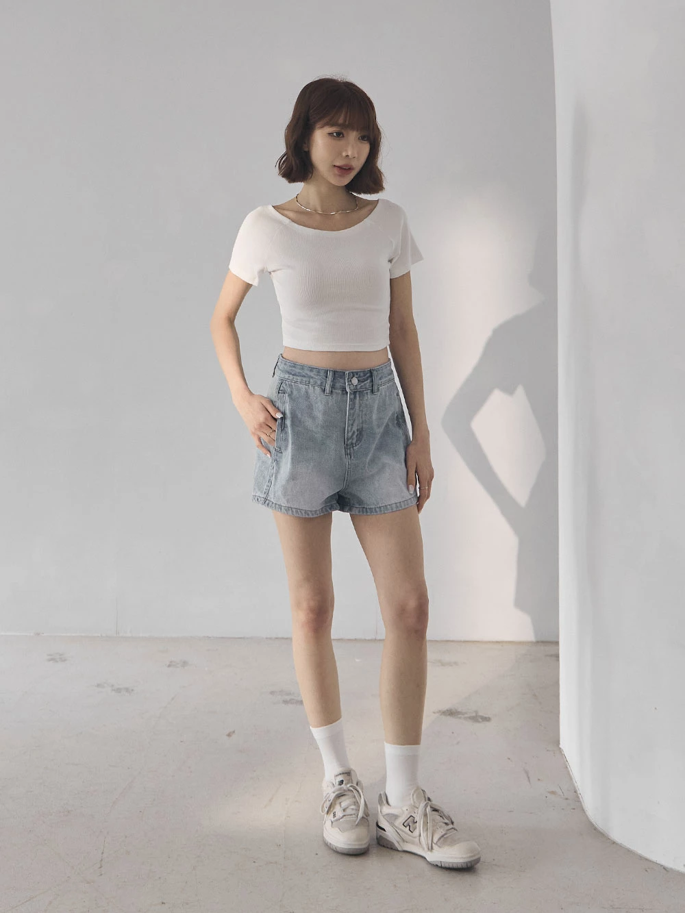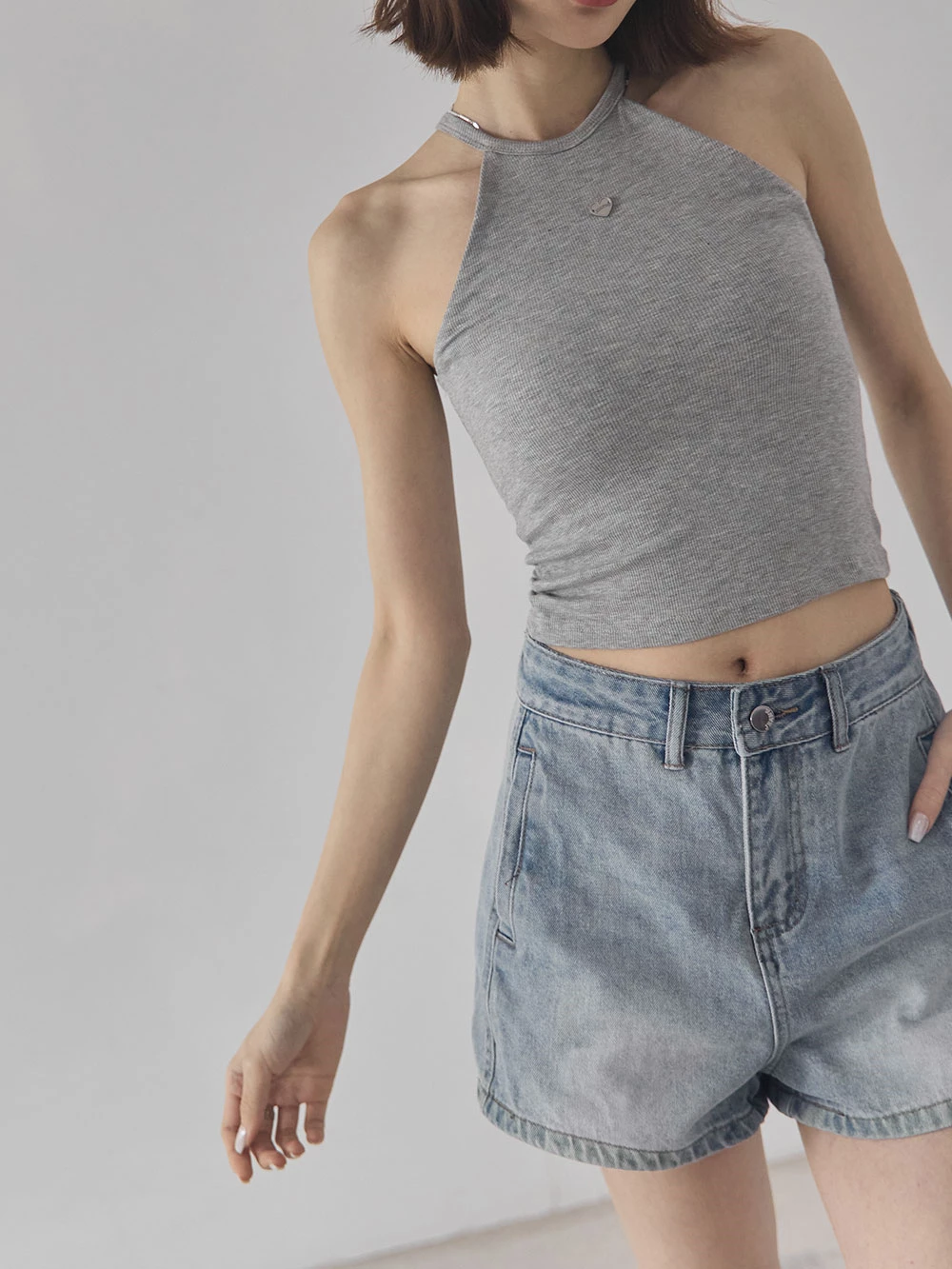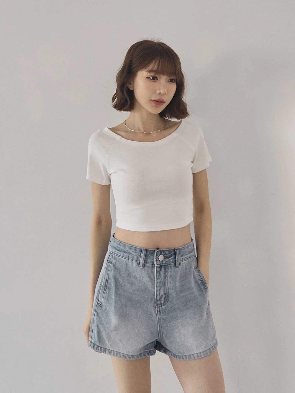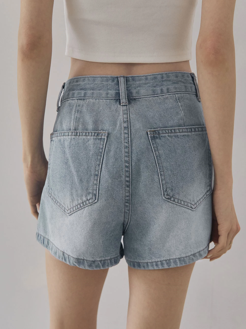 刷色雙口袋牛仔短褲
