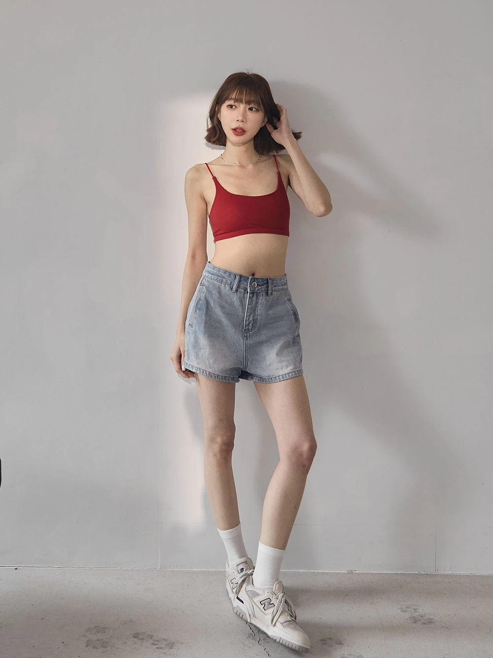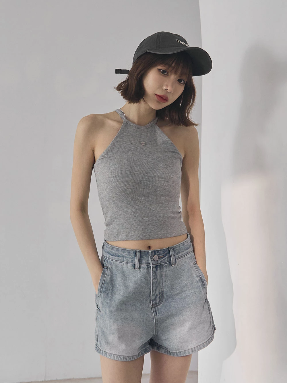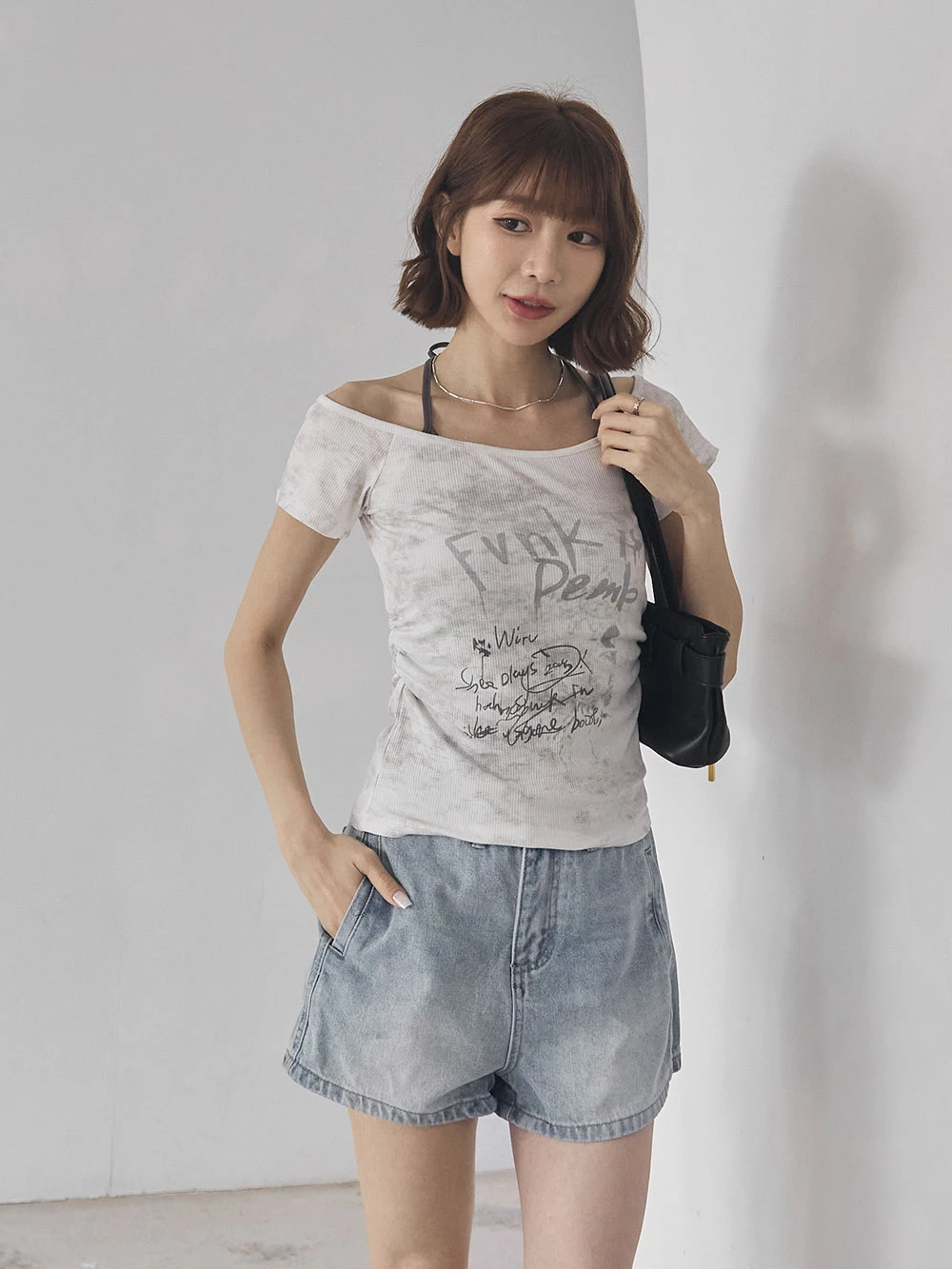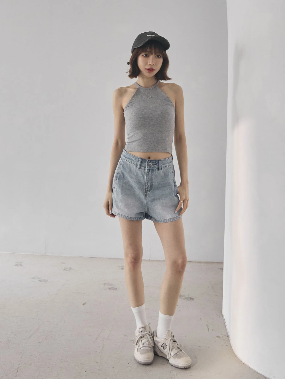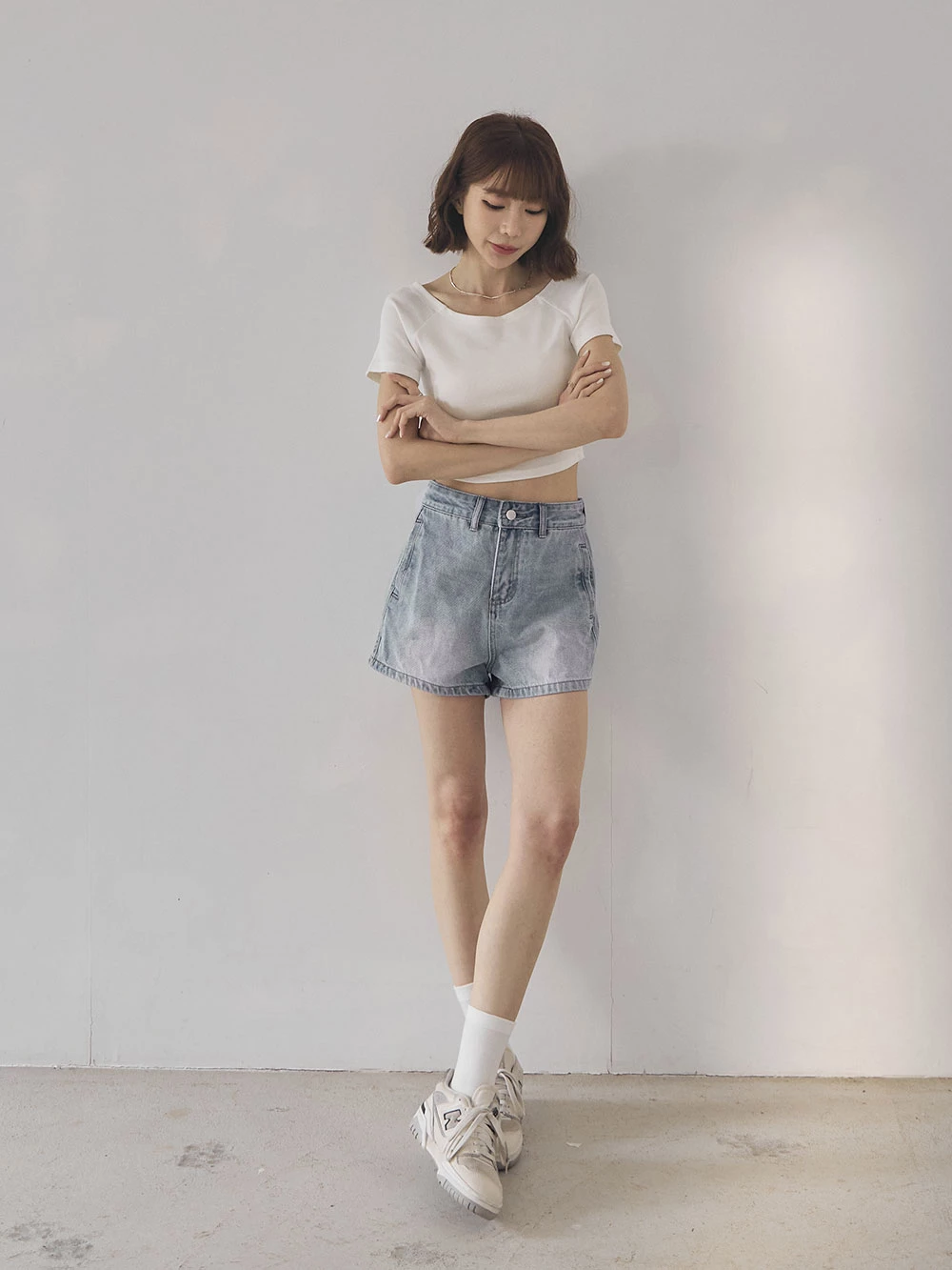 刷色雙口袋牛仔短褲