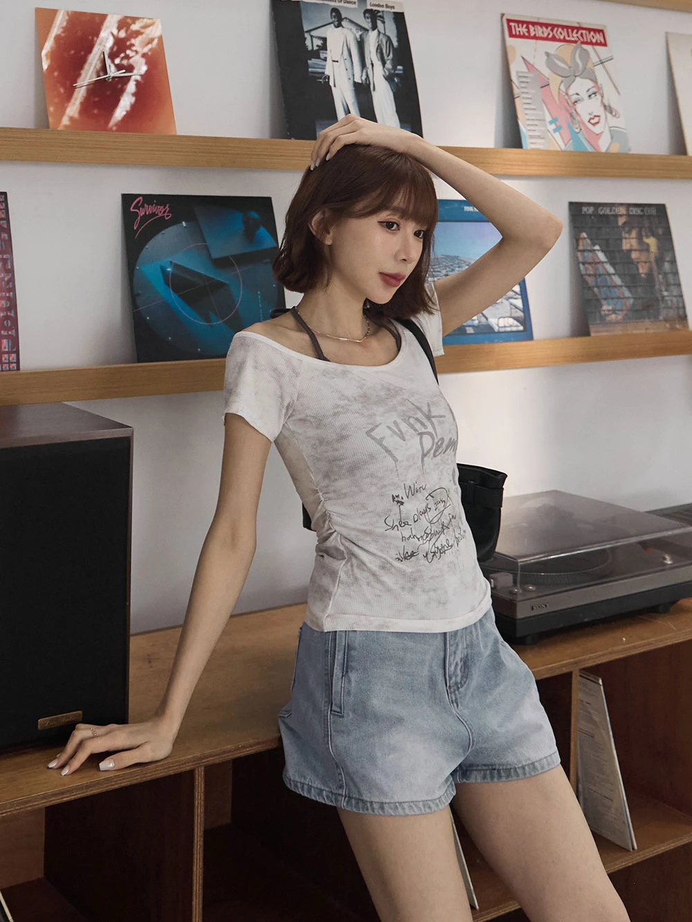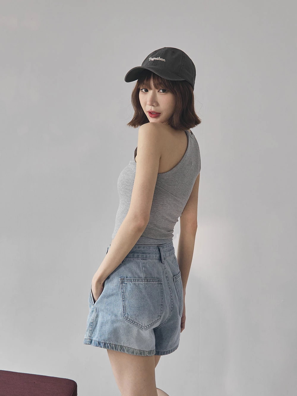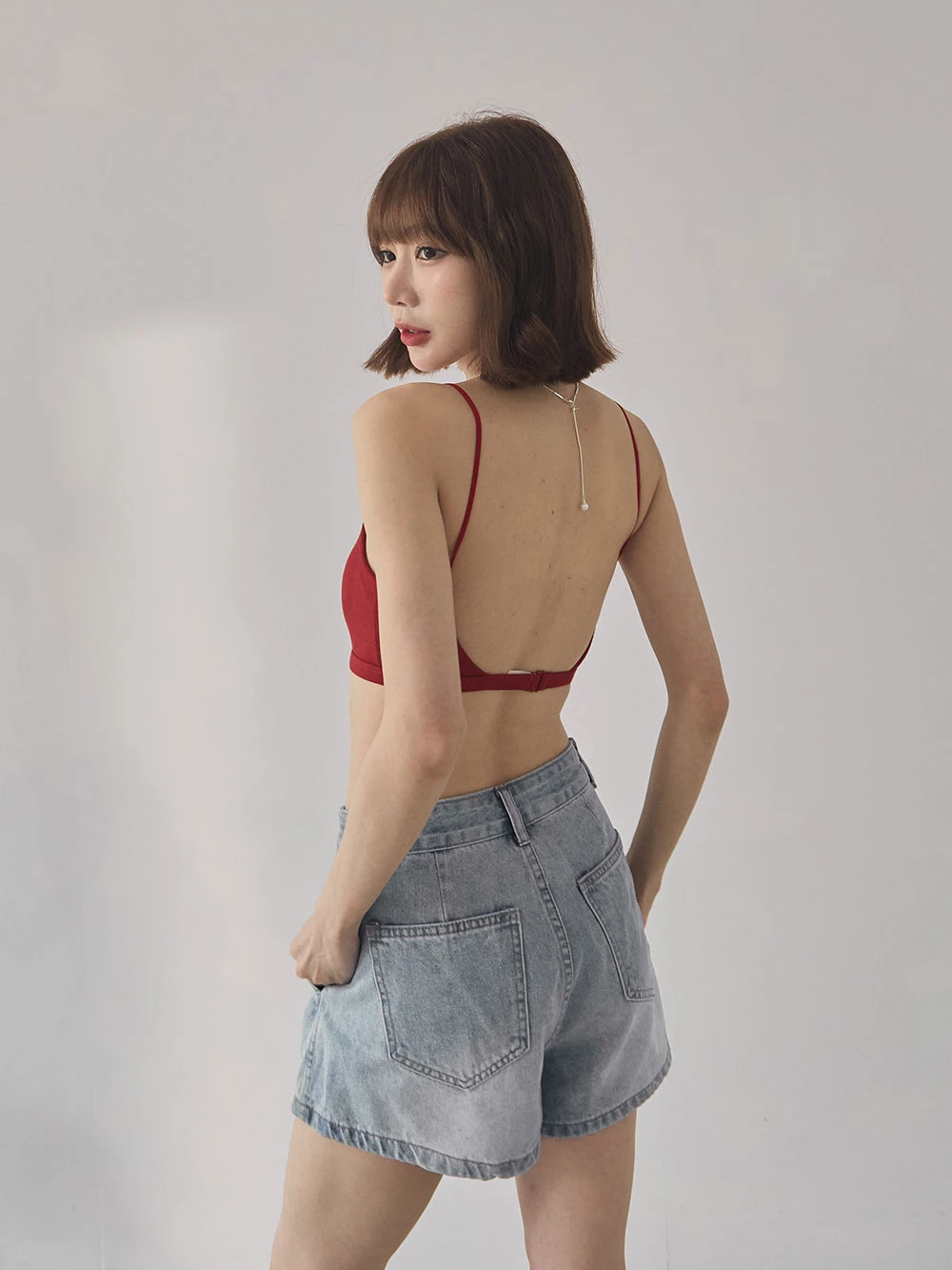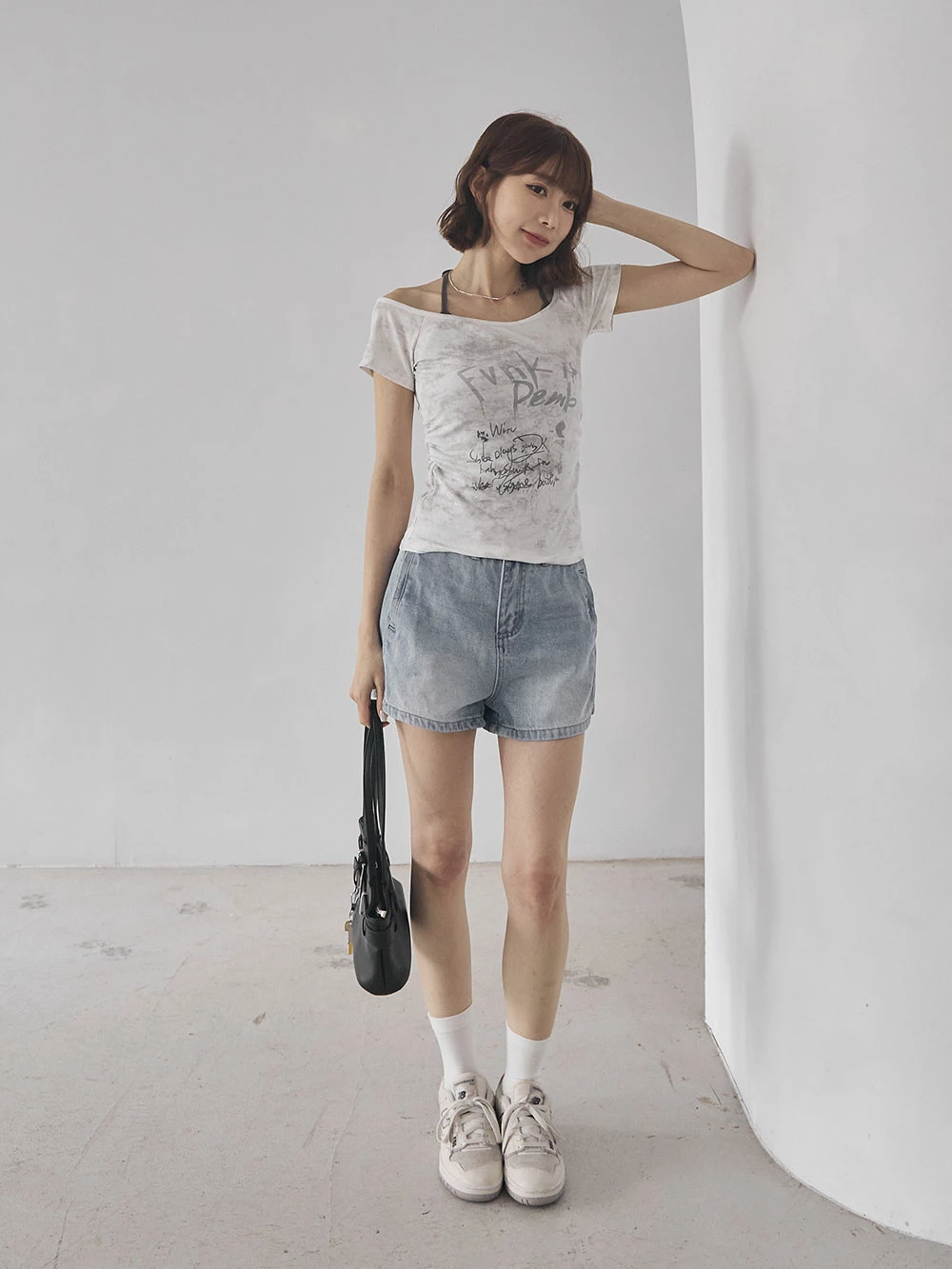 刷色雙口袋牛仔短褲