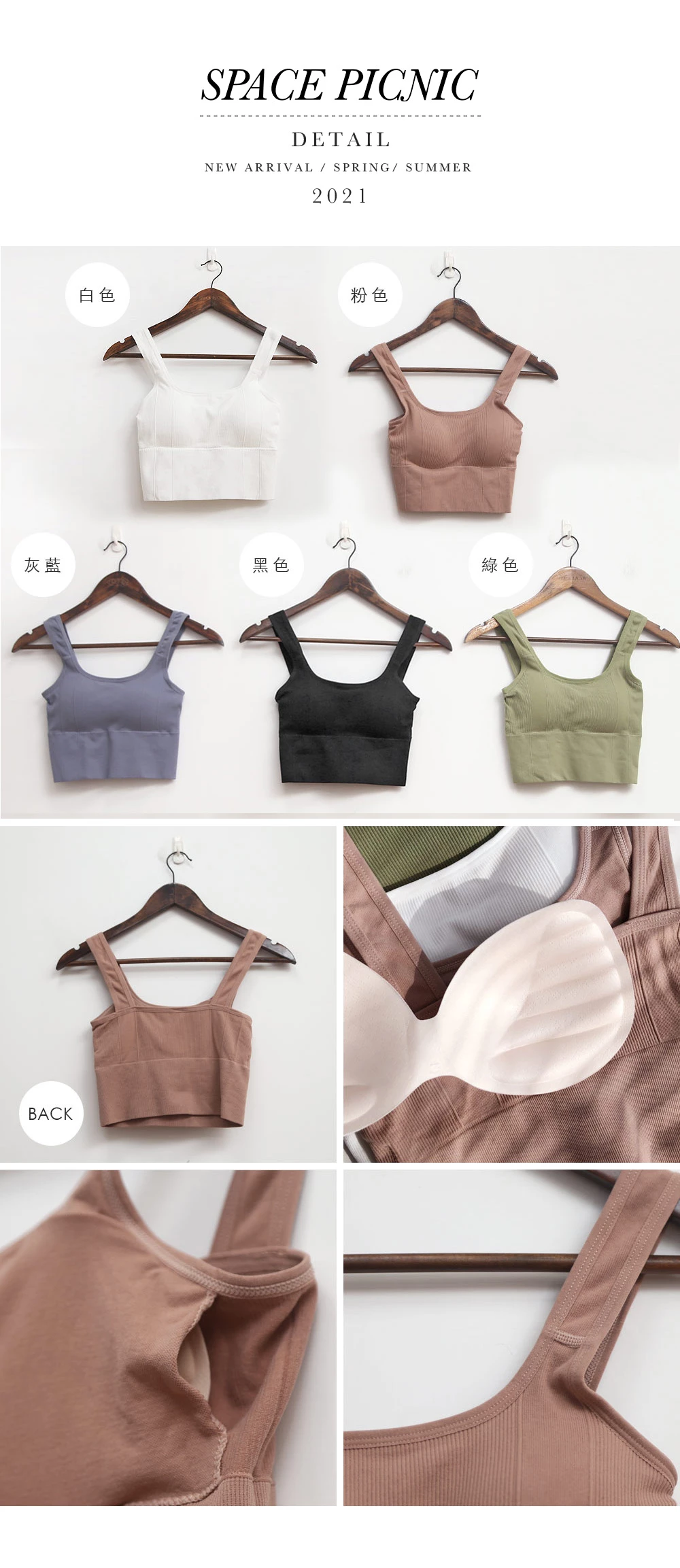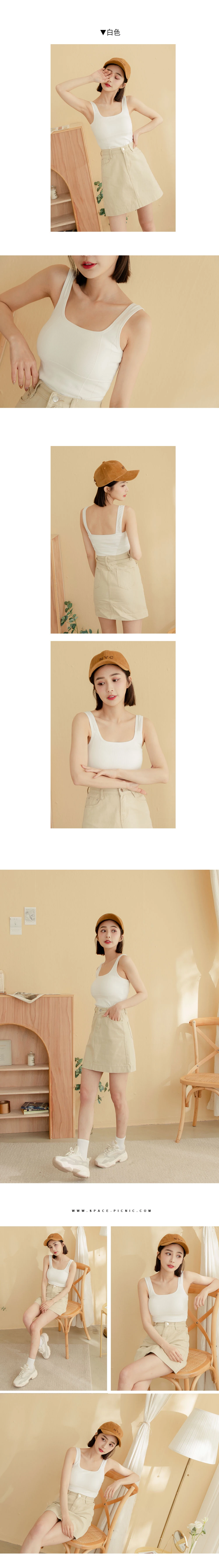 囤貨小可愛1.0 - 方領坑條短版胸墊背心