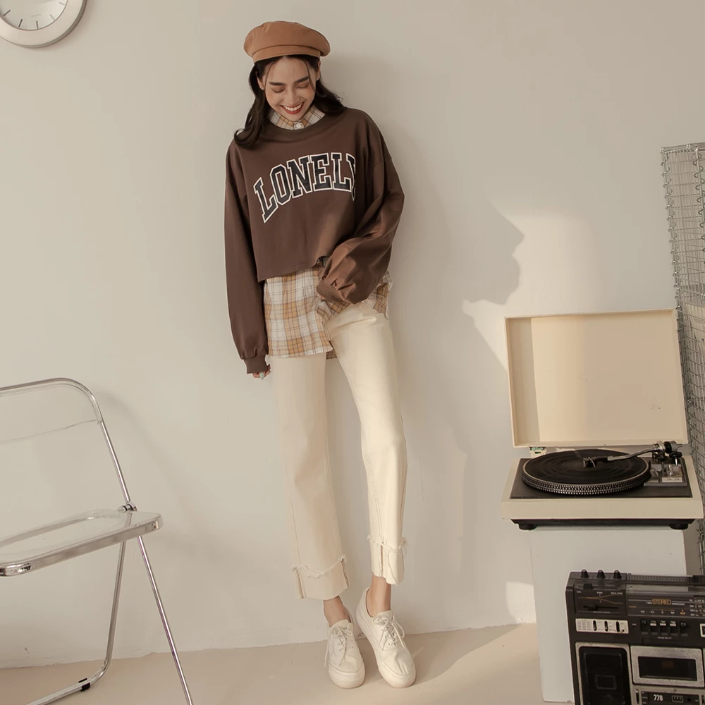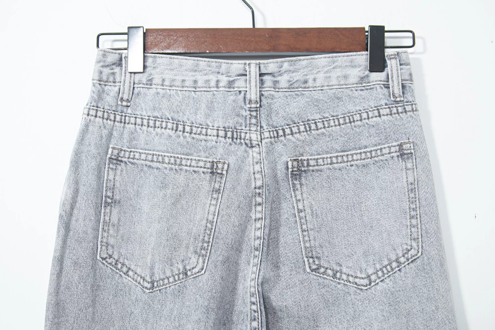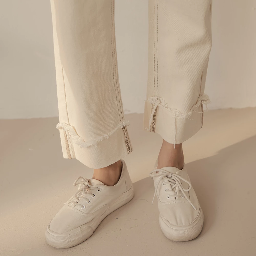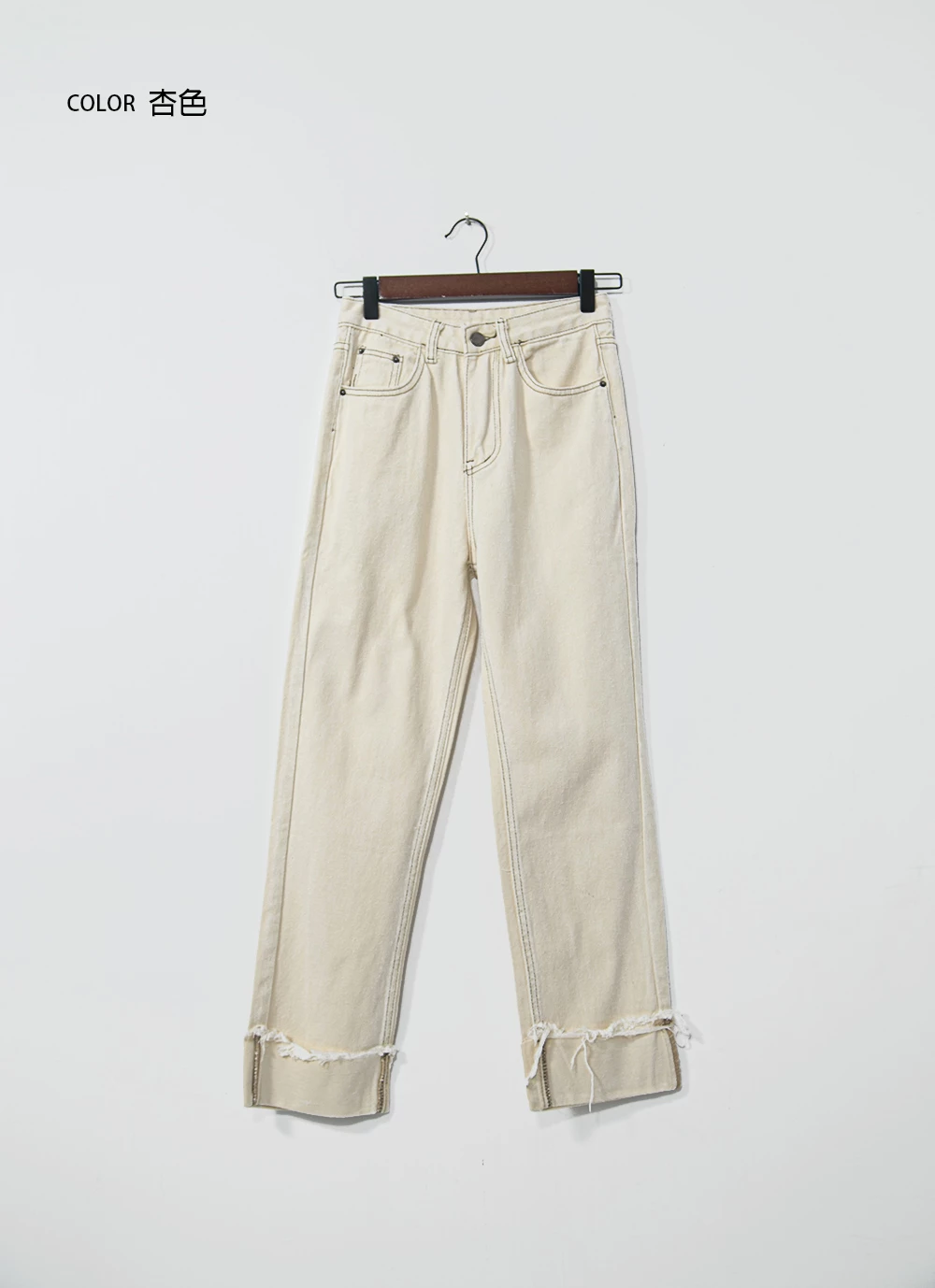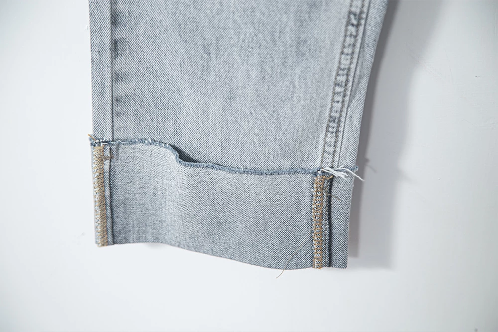 抽鬚反摺牛仔直筒褲