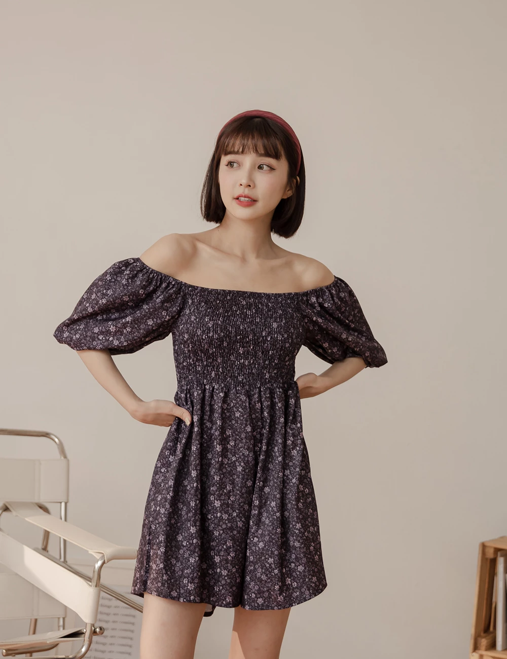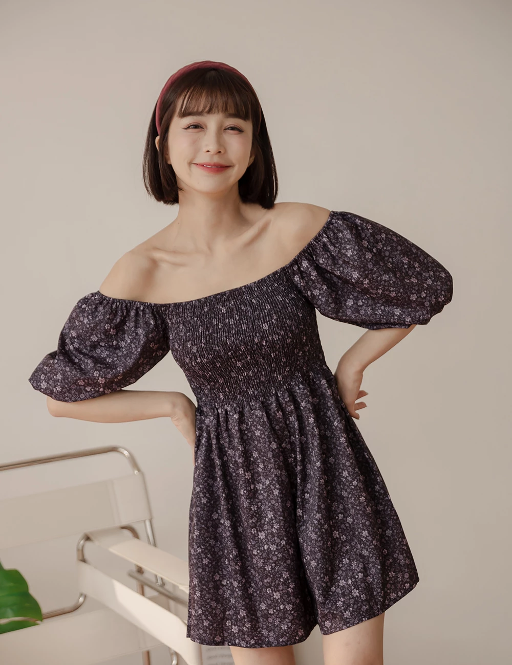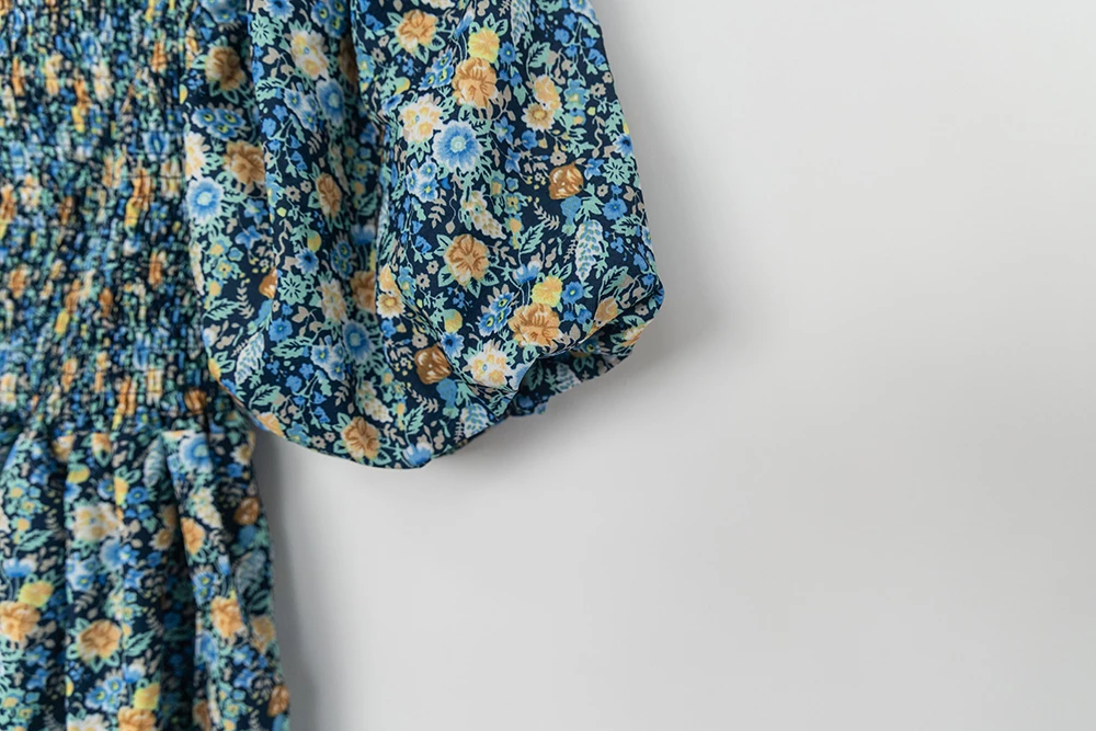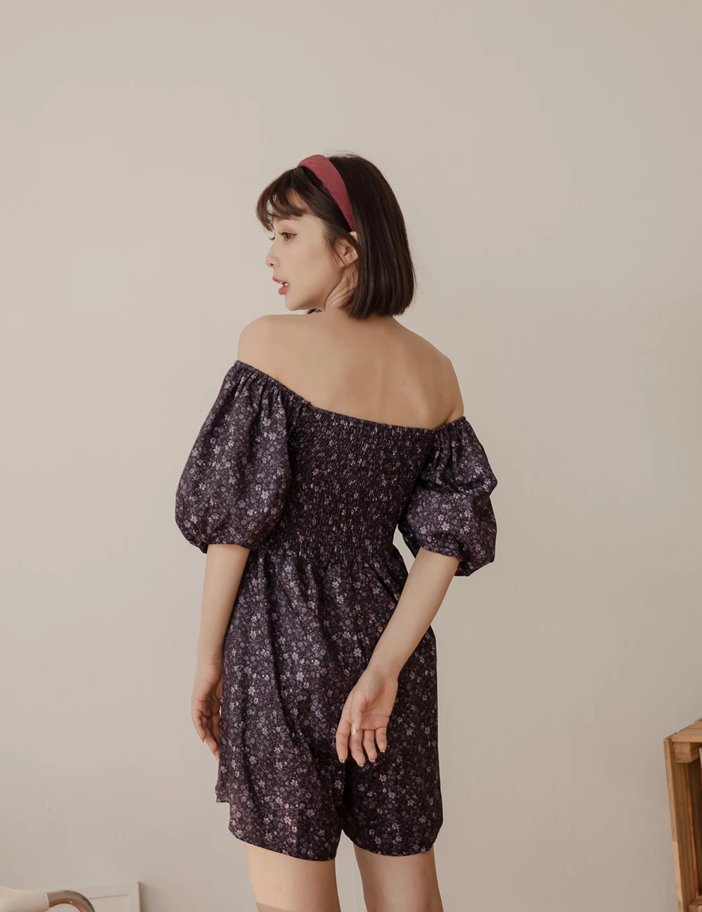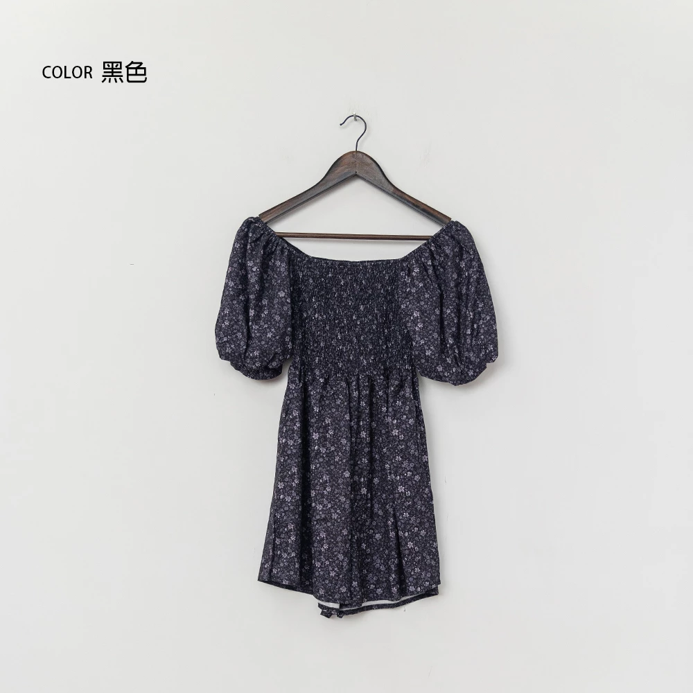 鬆緊領碎花連身短褲