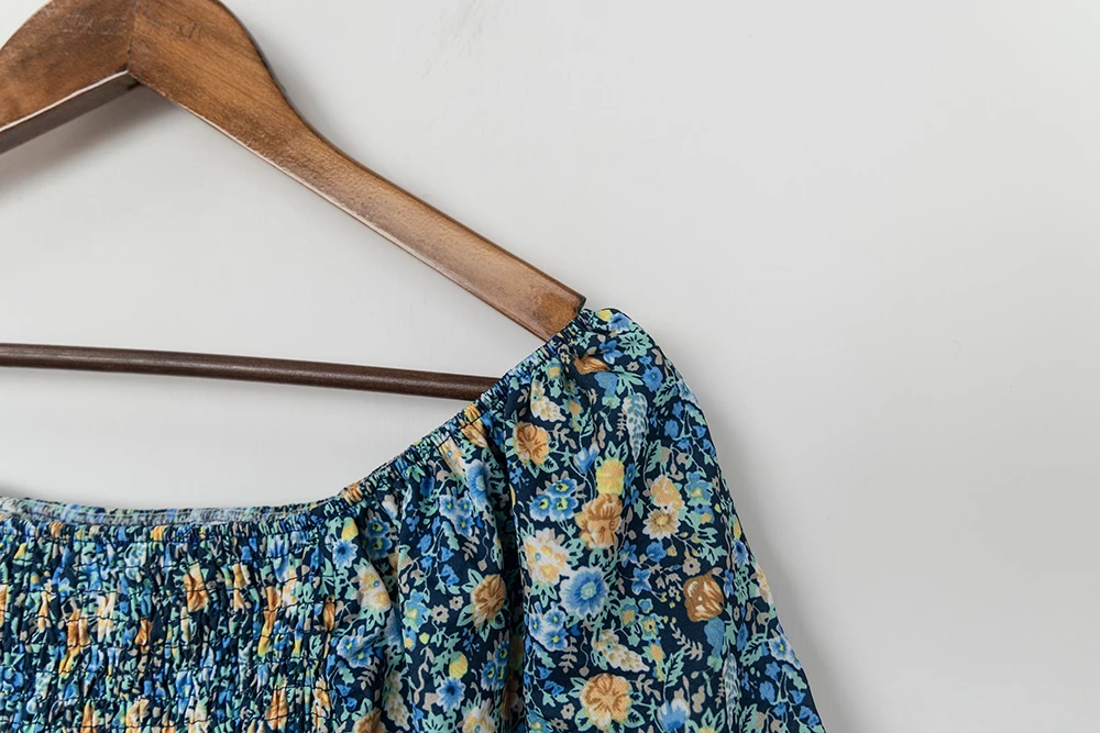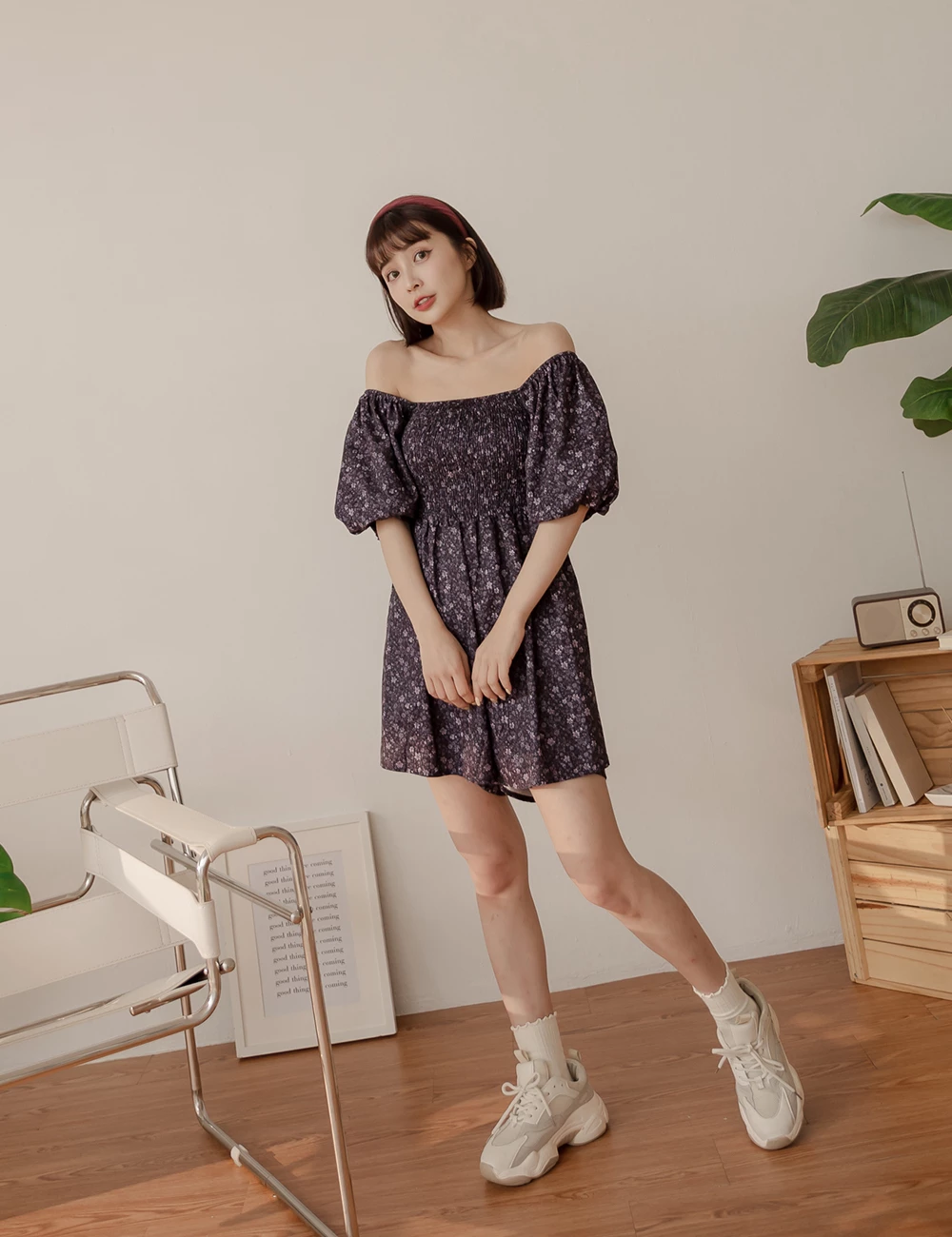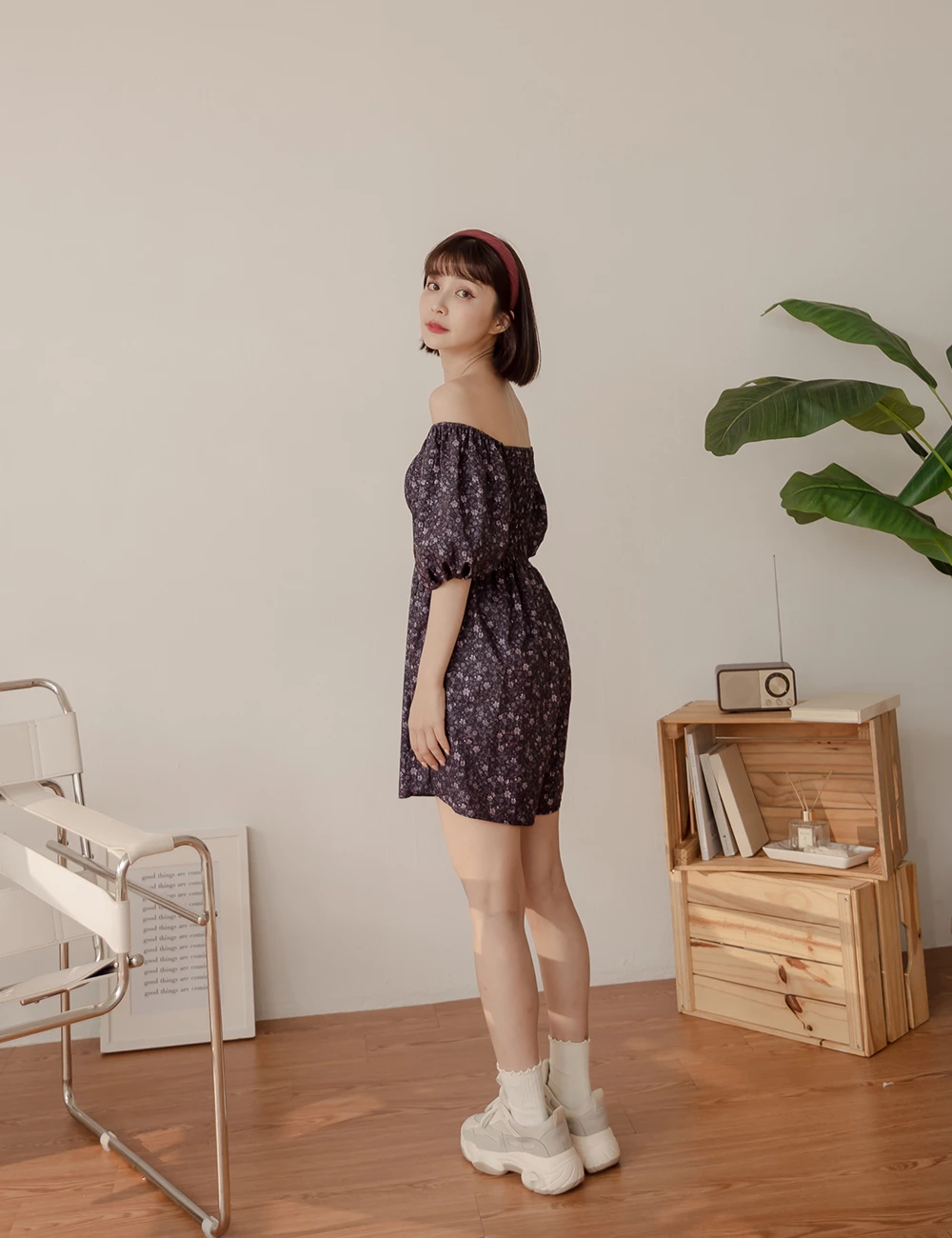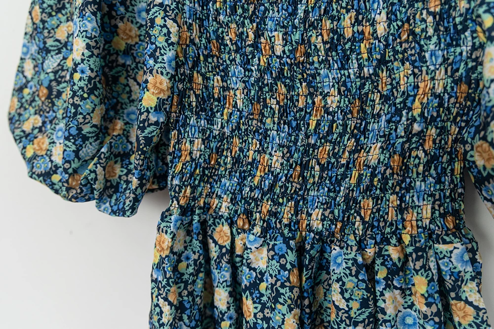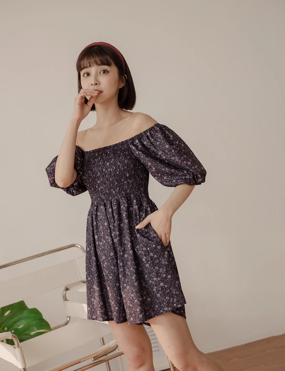 鬆緊領碎花連身短褲