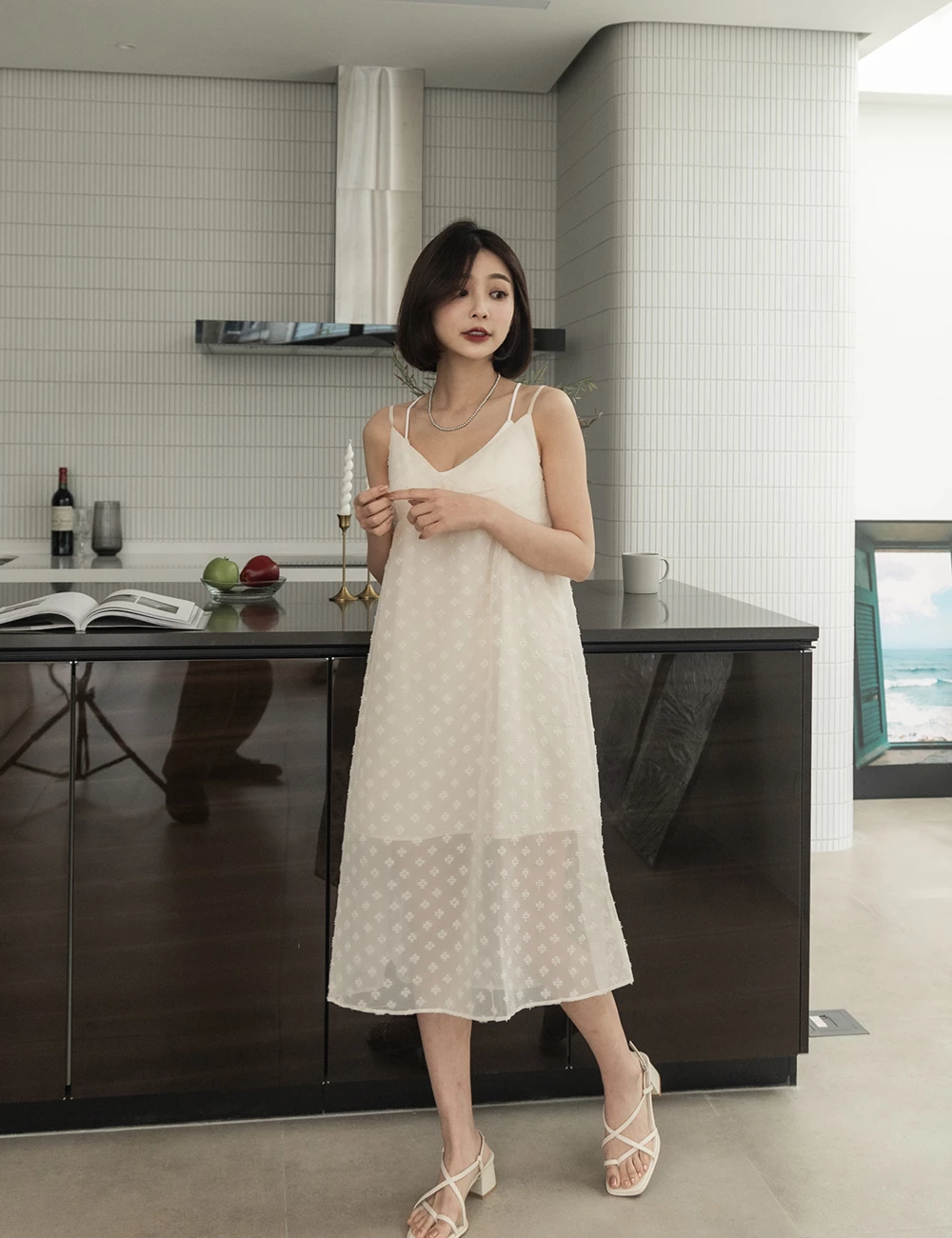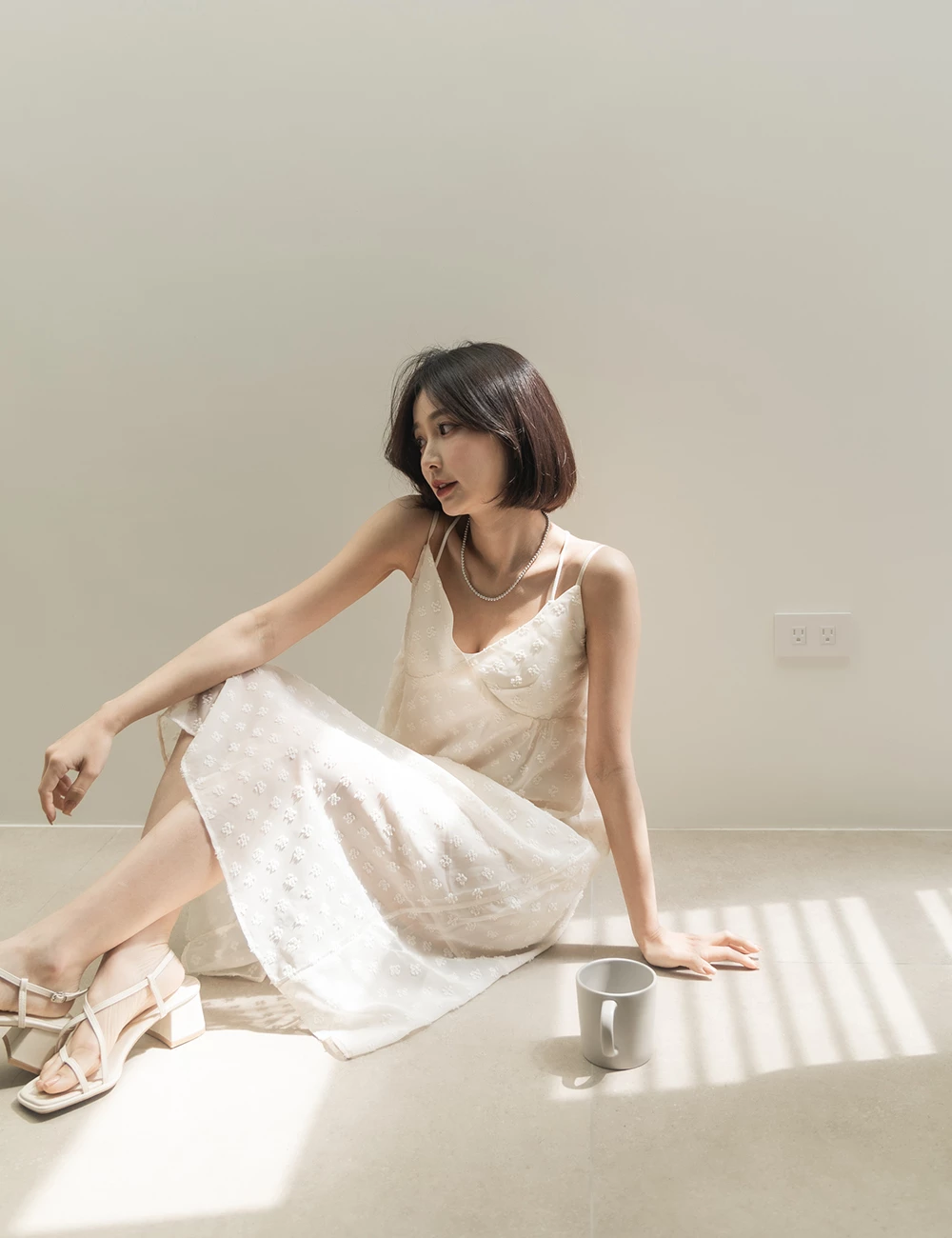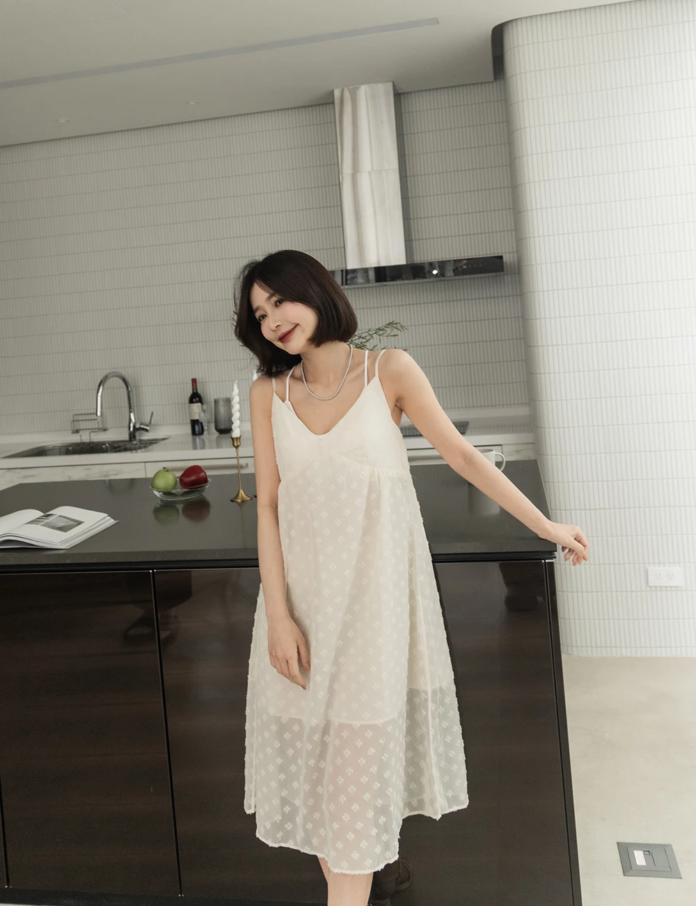 蕾絲提花細肩微透洋裝 | Space Picnic
