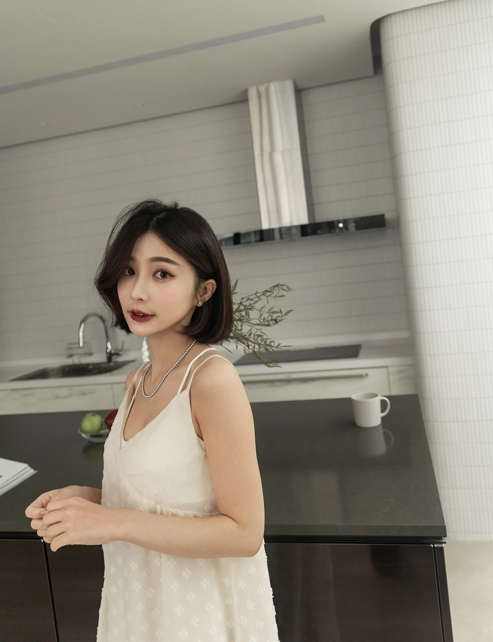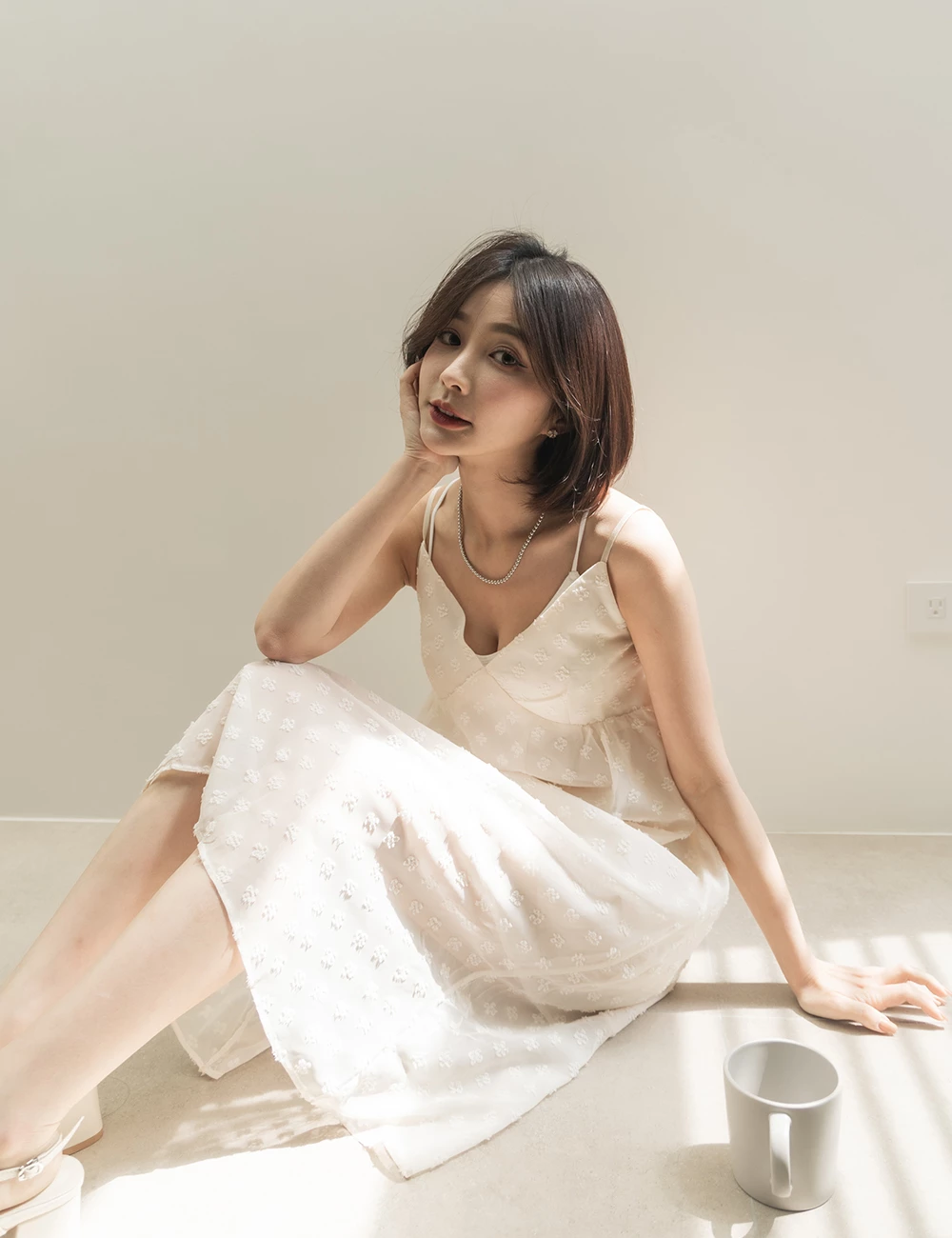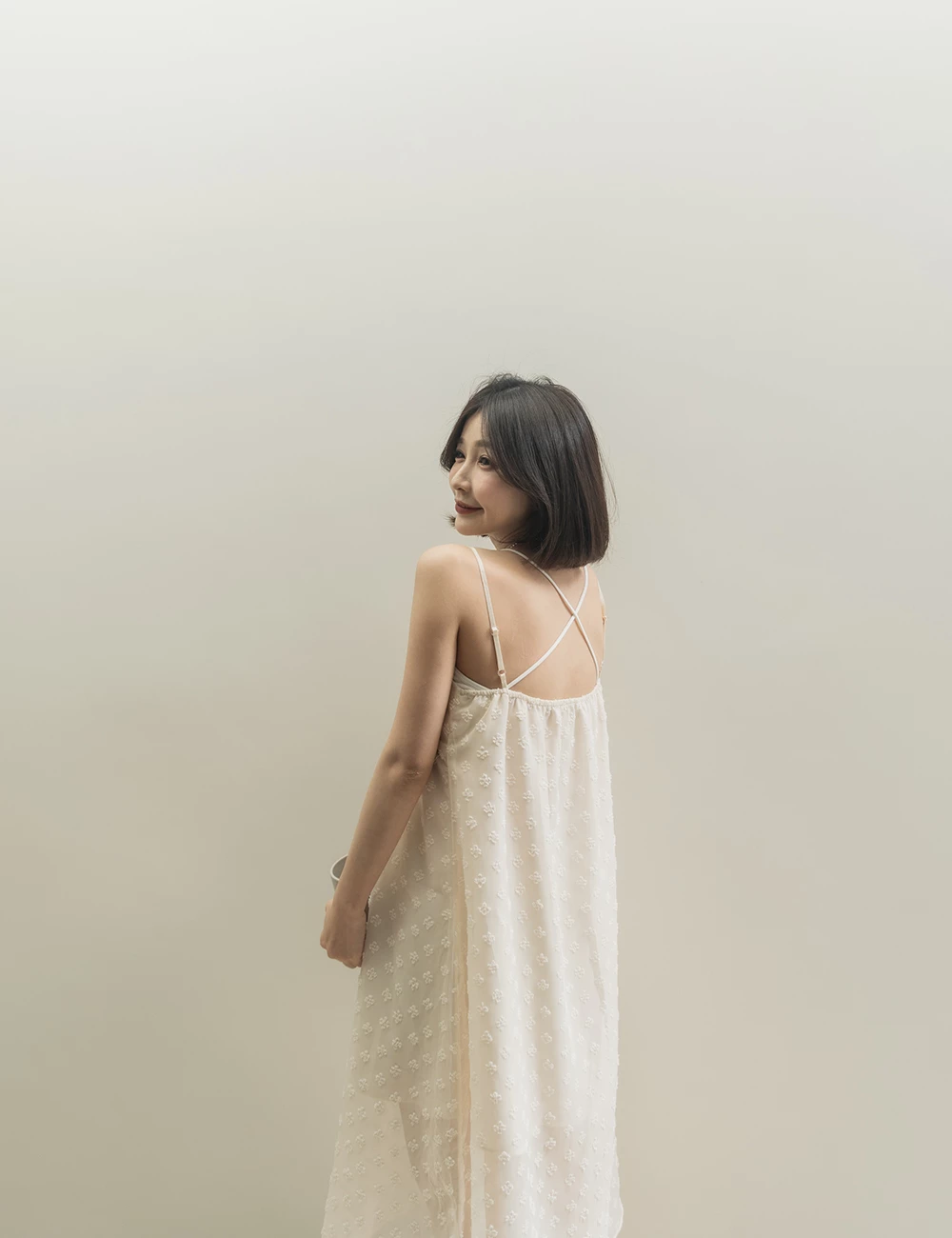 蕾絲提花細肩微透洋裝 | Space Picnic