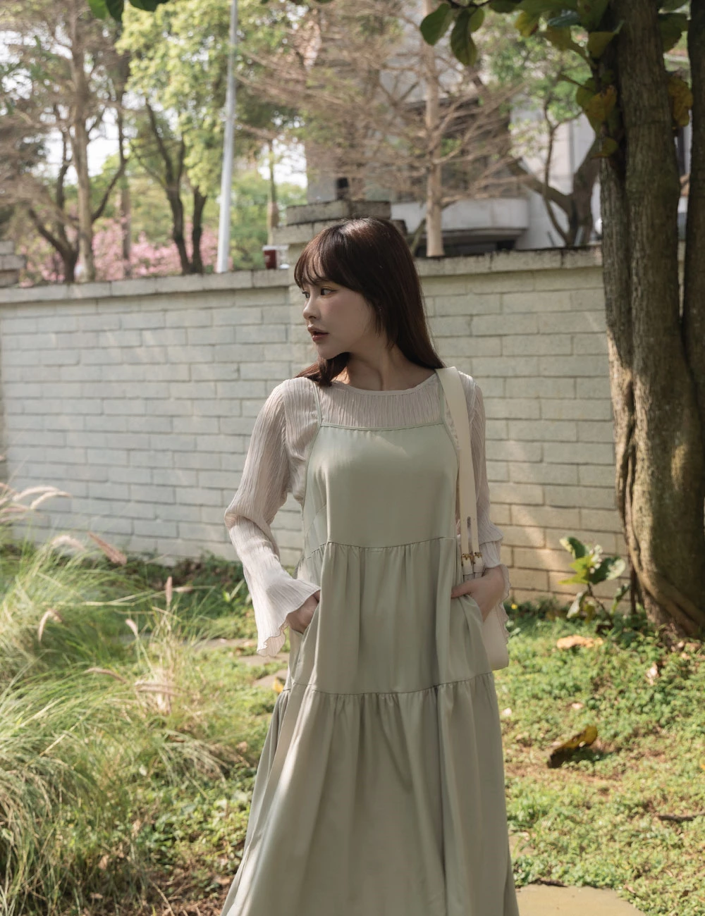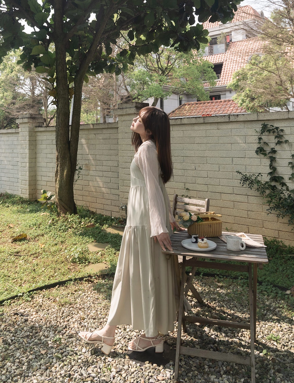 細肩蛋糕洋裝-附綁帶