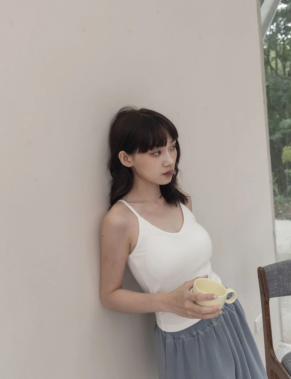 羅紋細肩胸墊背心