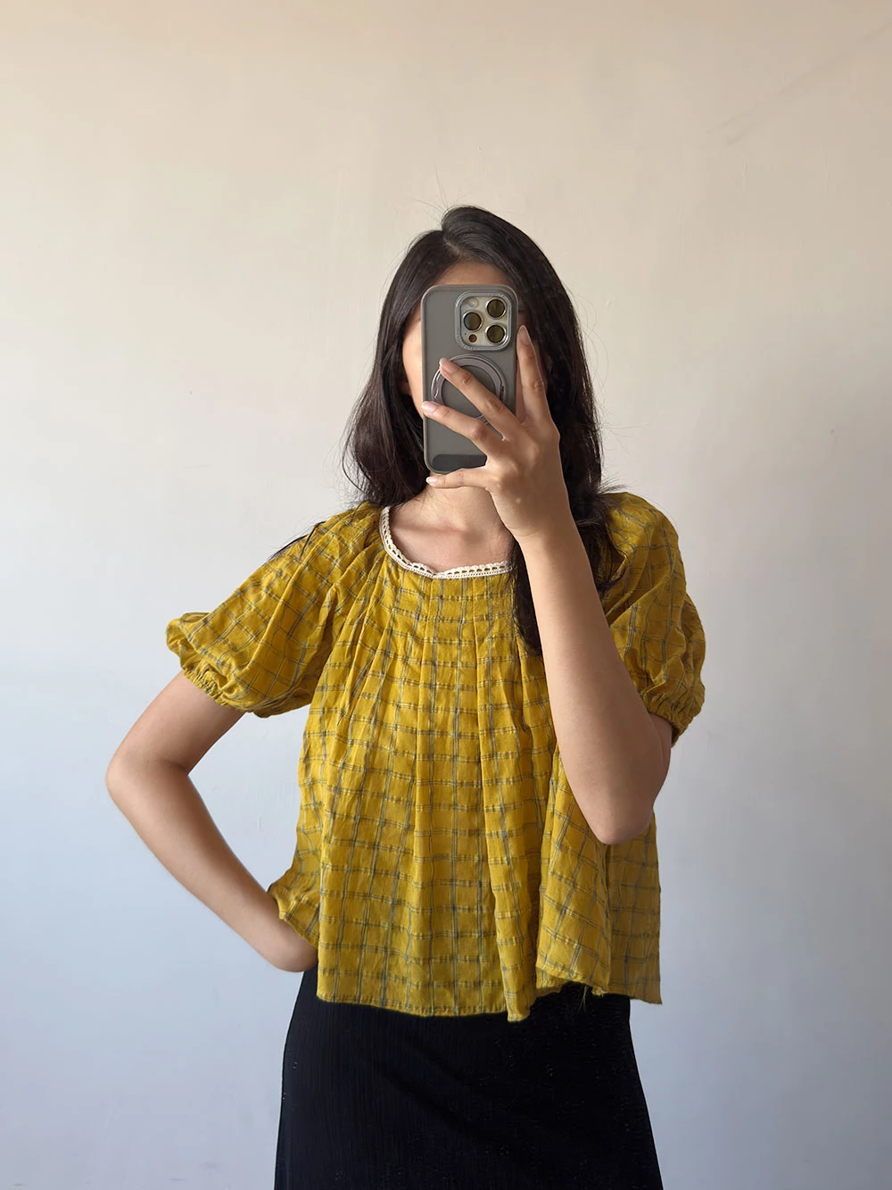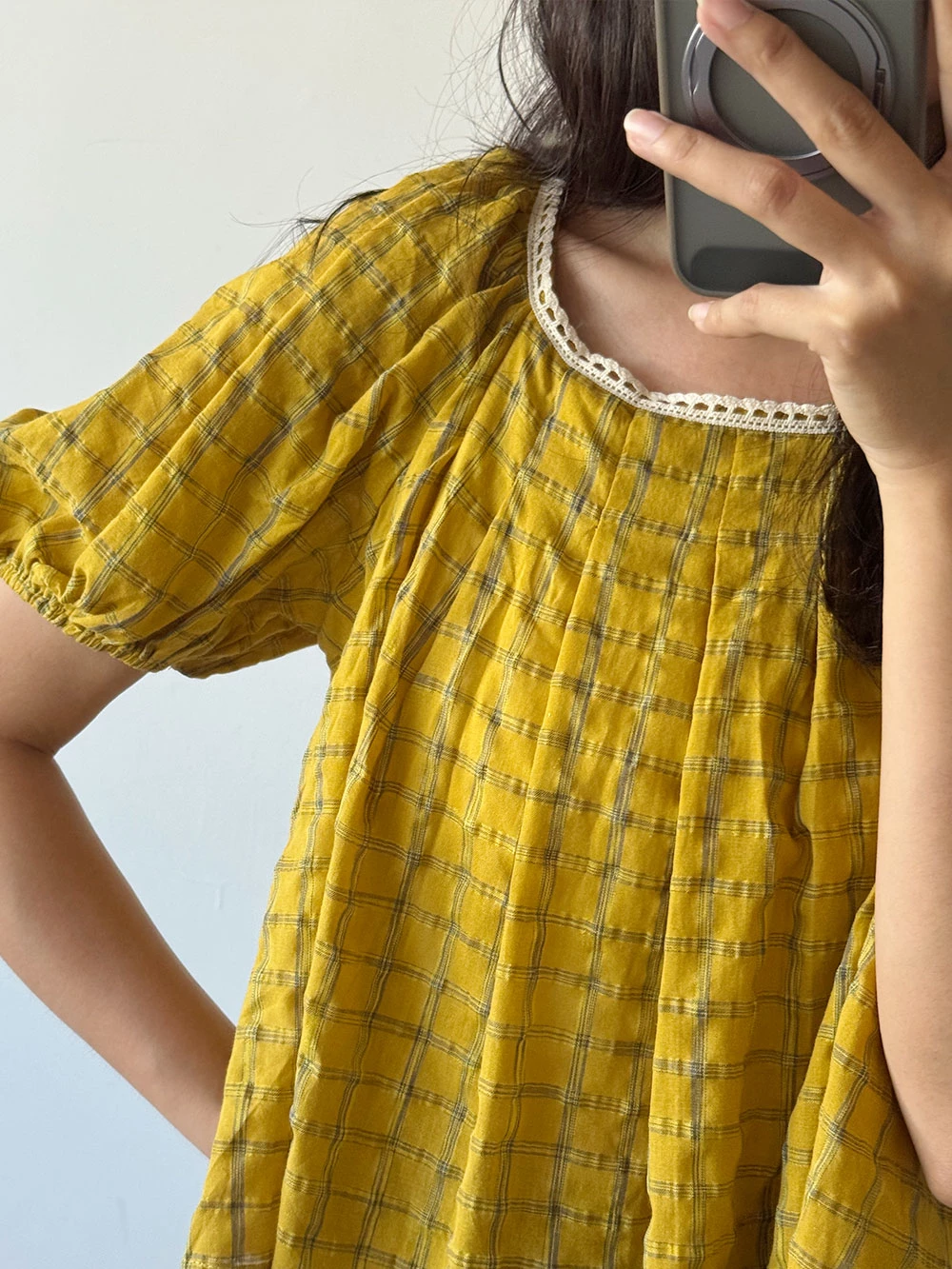 格紋綁帶上衣