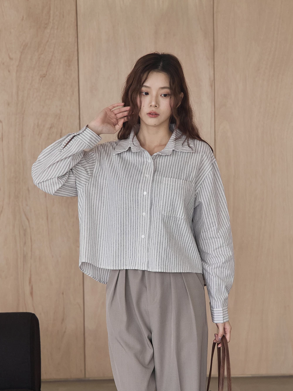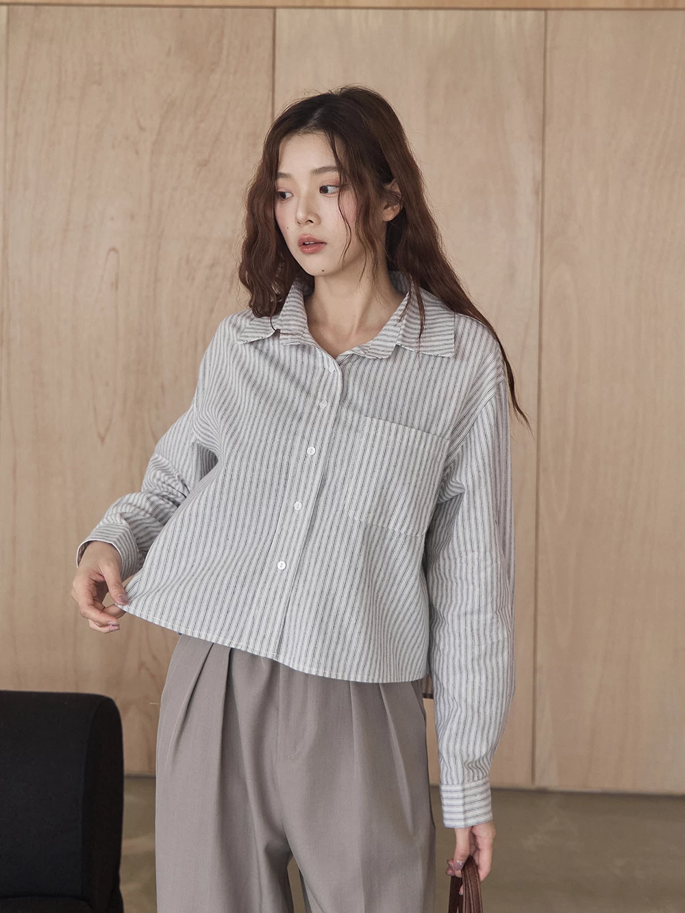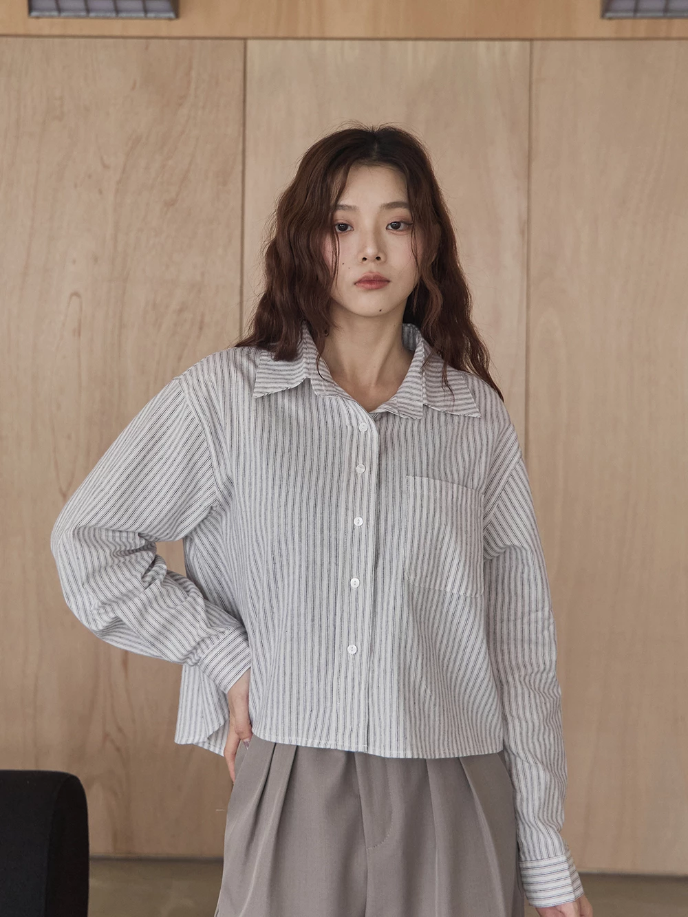 SPmade-條紋短版磨毛襯衫 | Space Picnic
