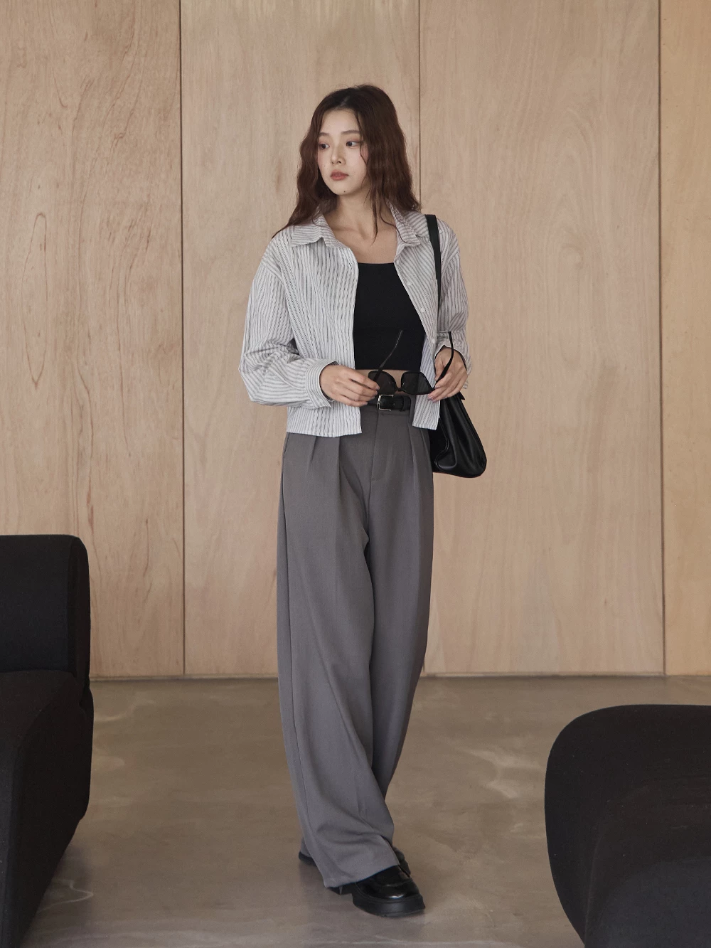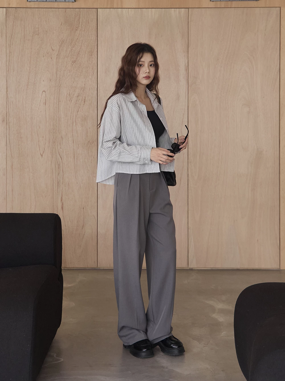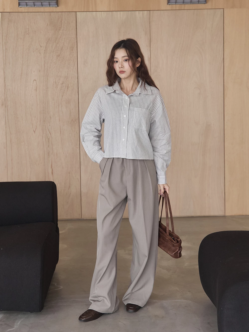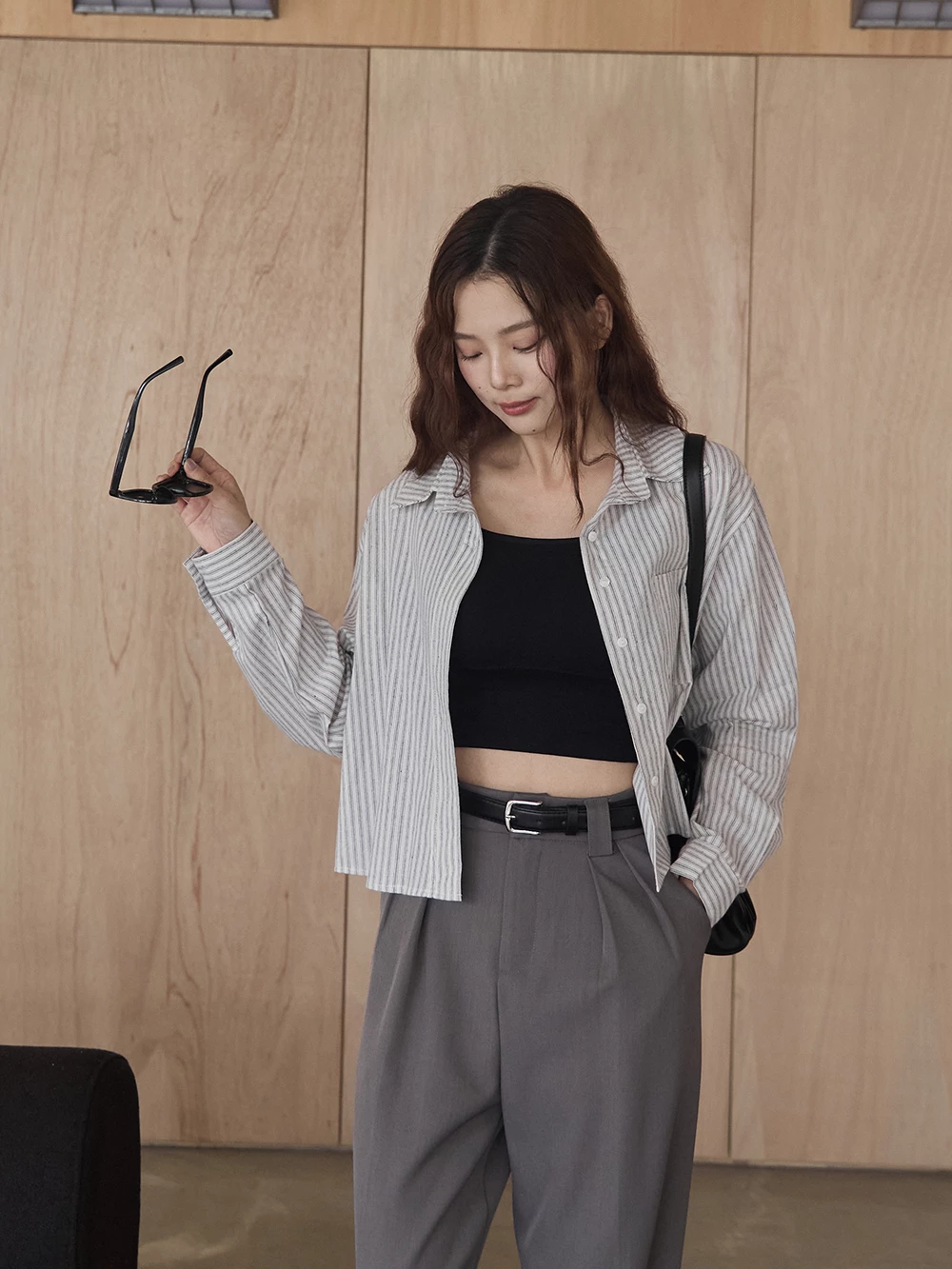 SPmade-條紋短版磨毛襯衫 | Space Picnic