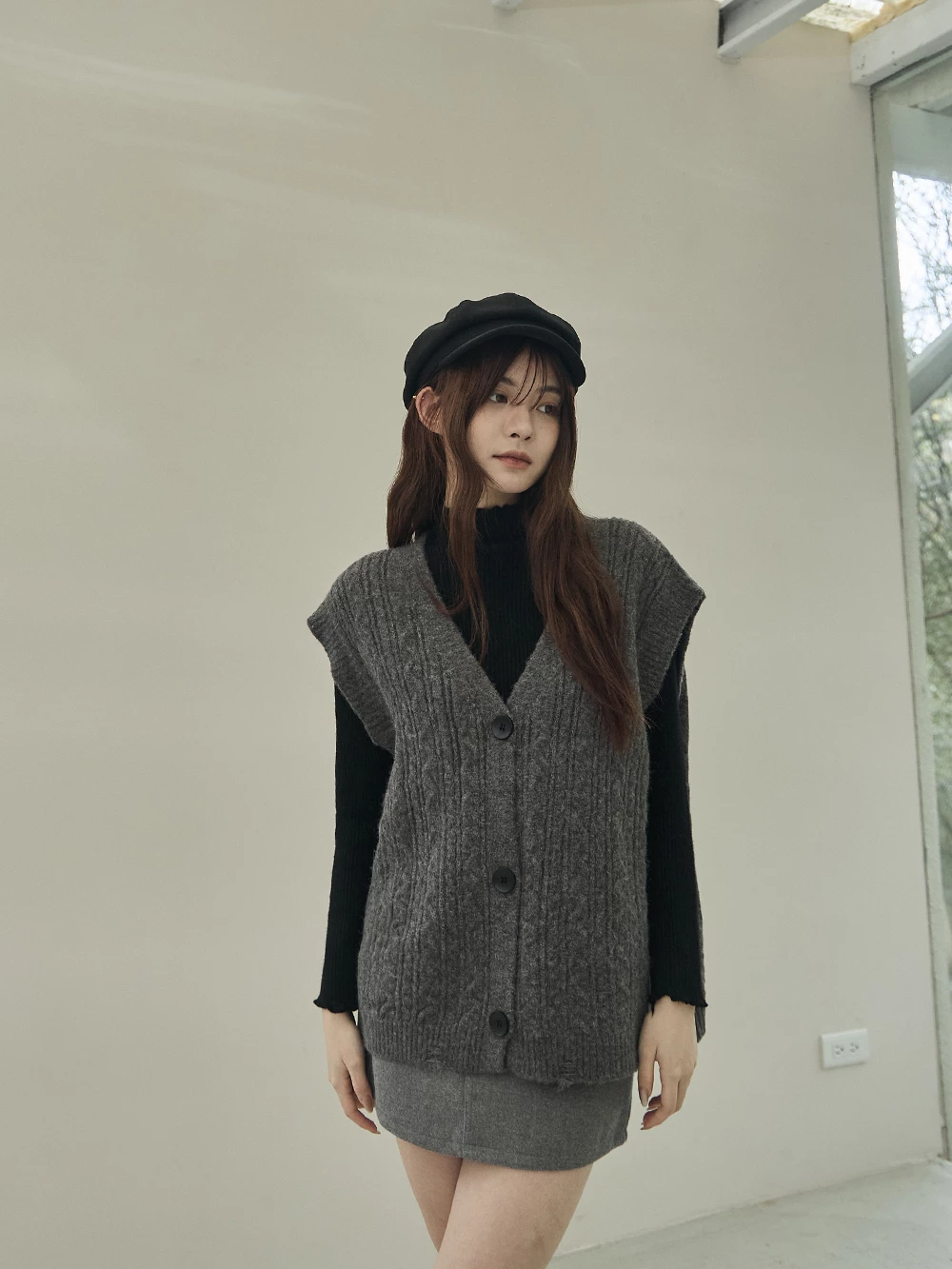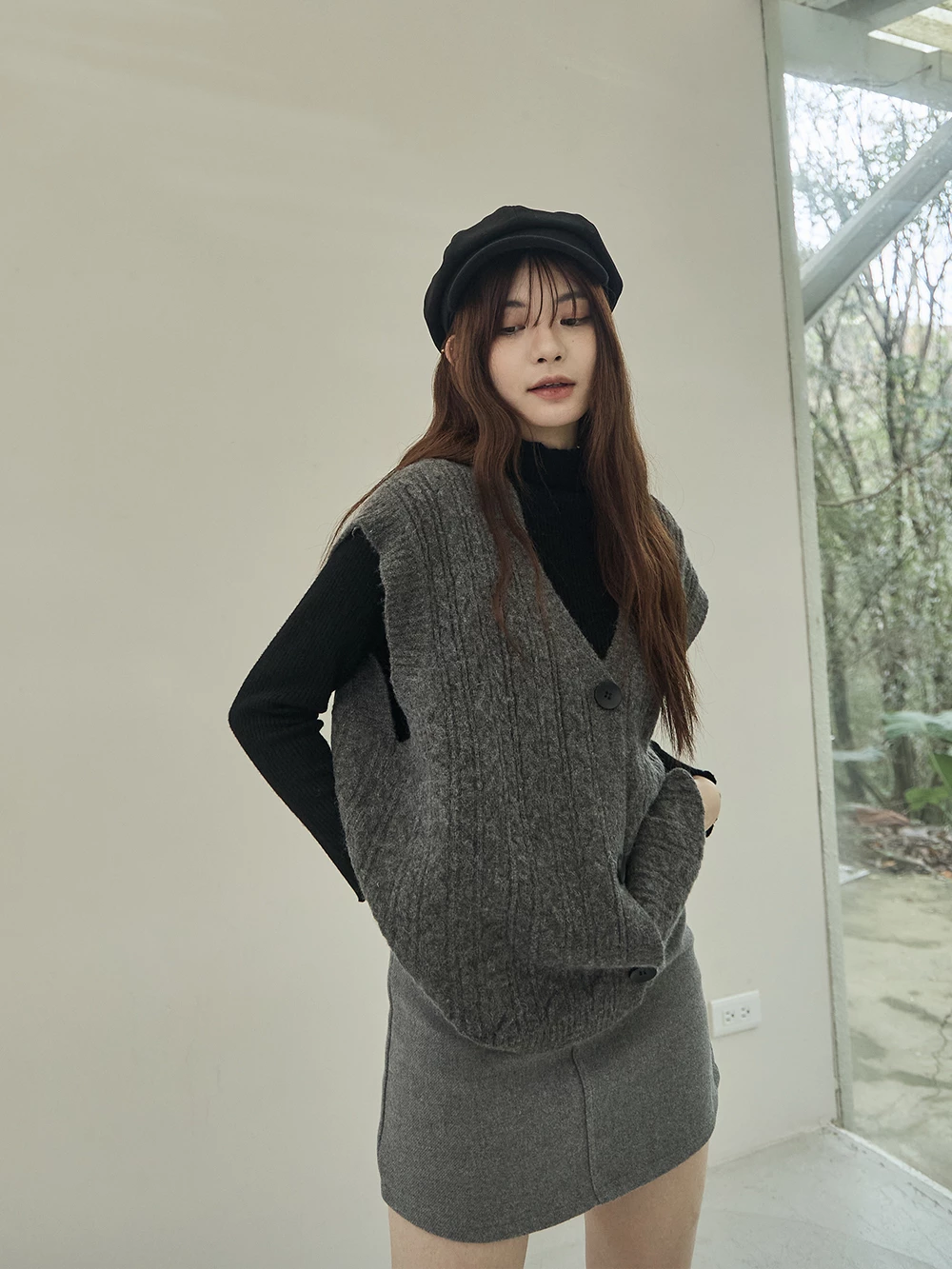 麻花針織寬鬆背心