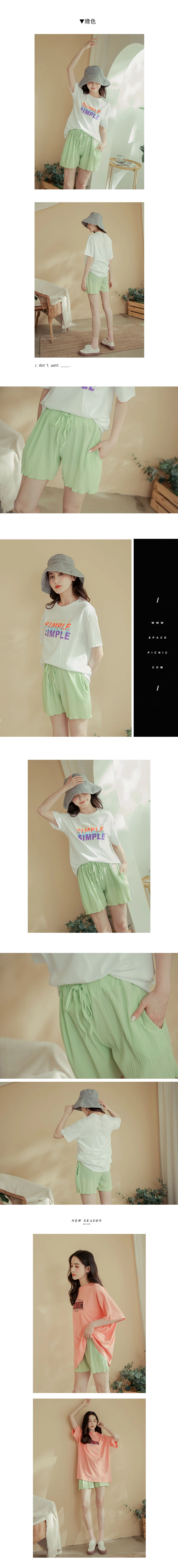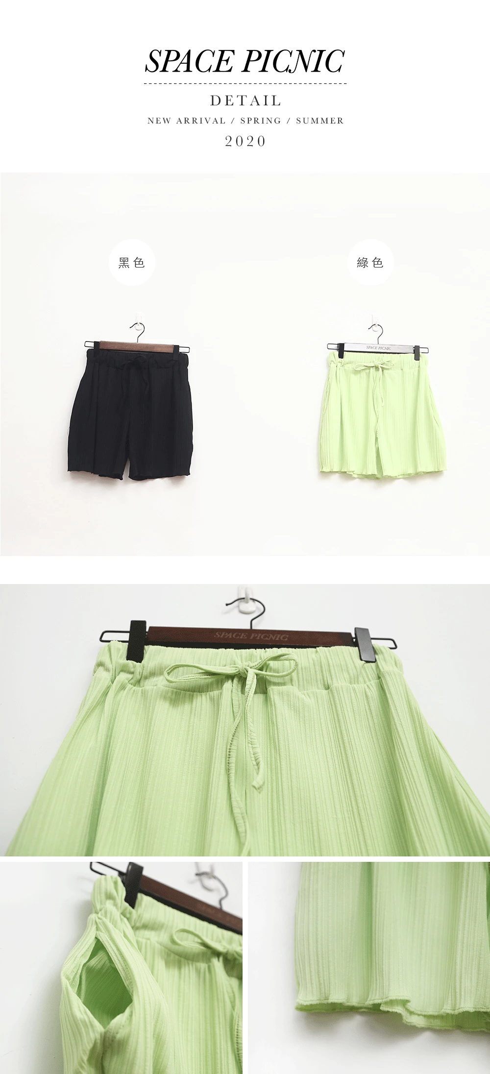 正韓-素面坑條抽繩短褲 | Space Picnic