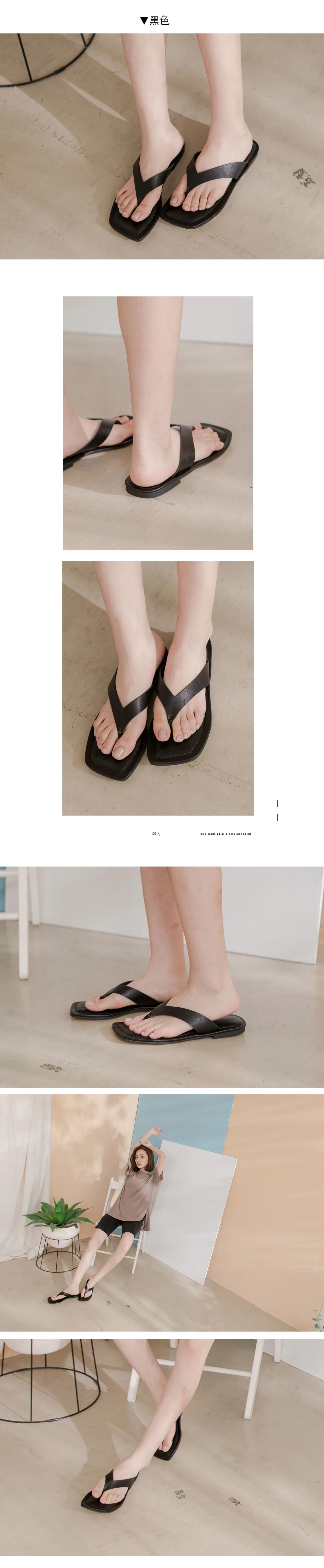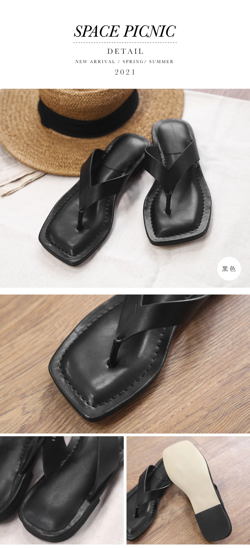 正韓-方頭平底皮革人字拖鞋 | Space Picnic