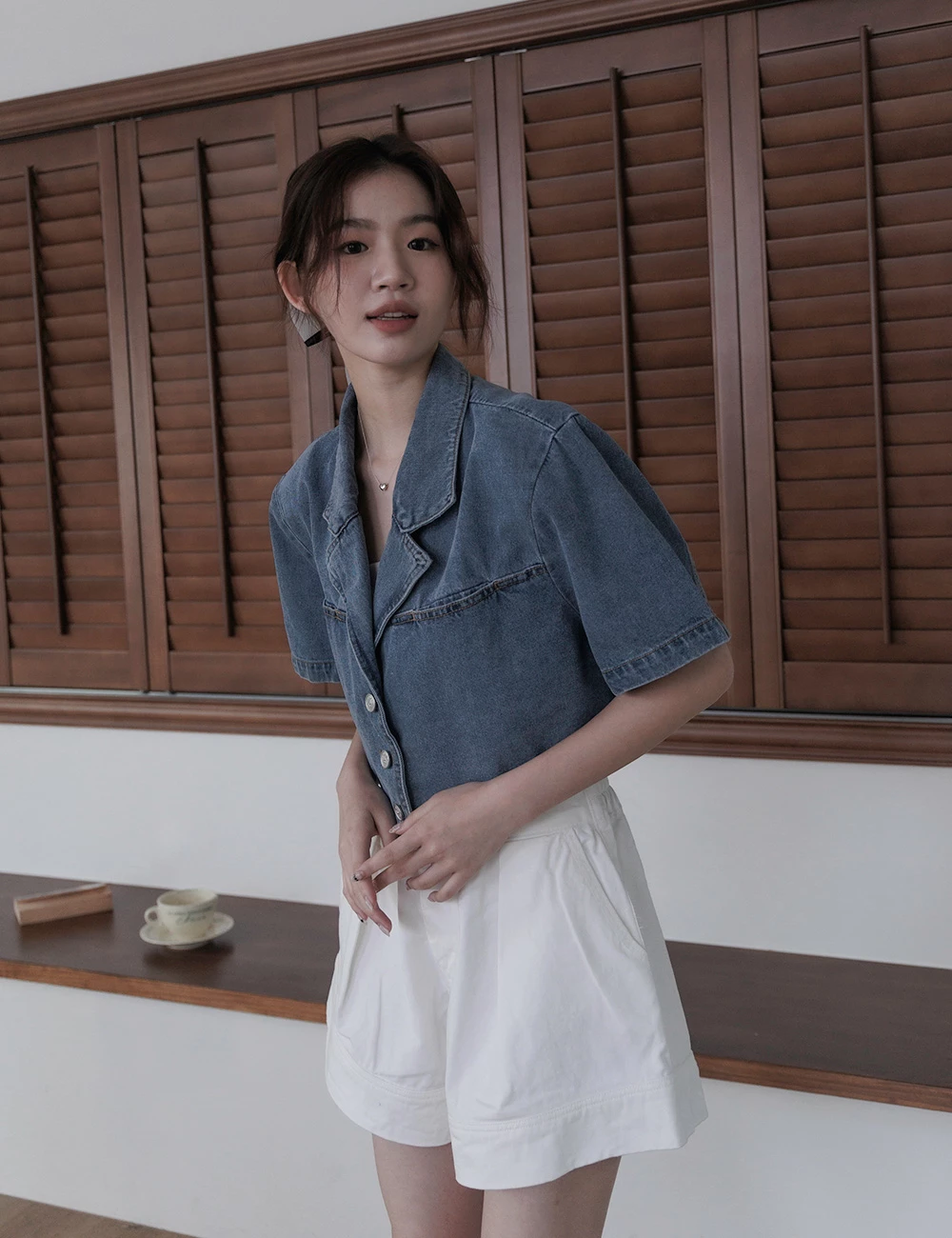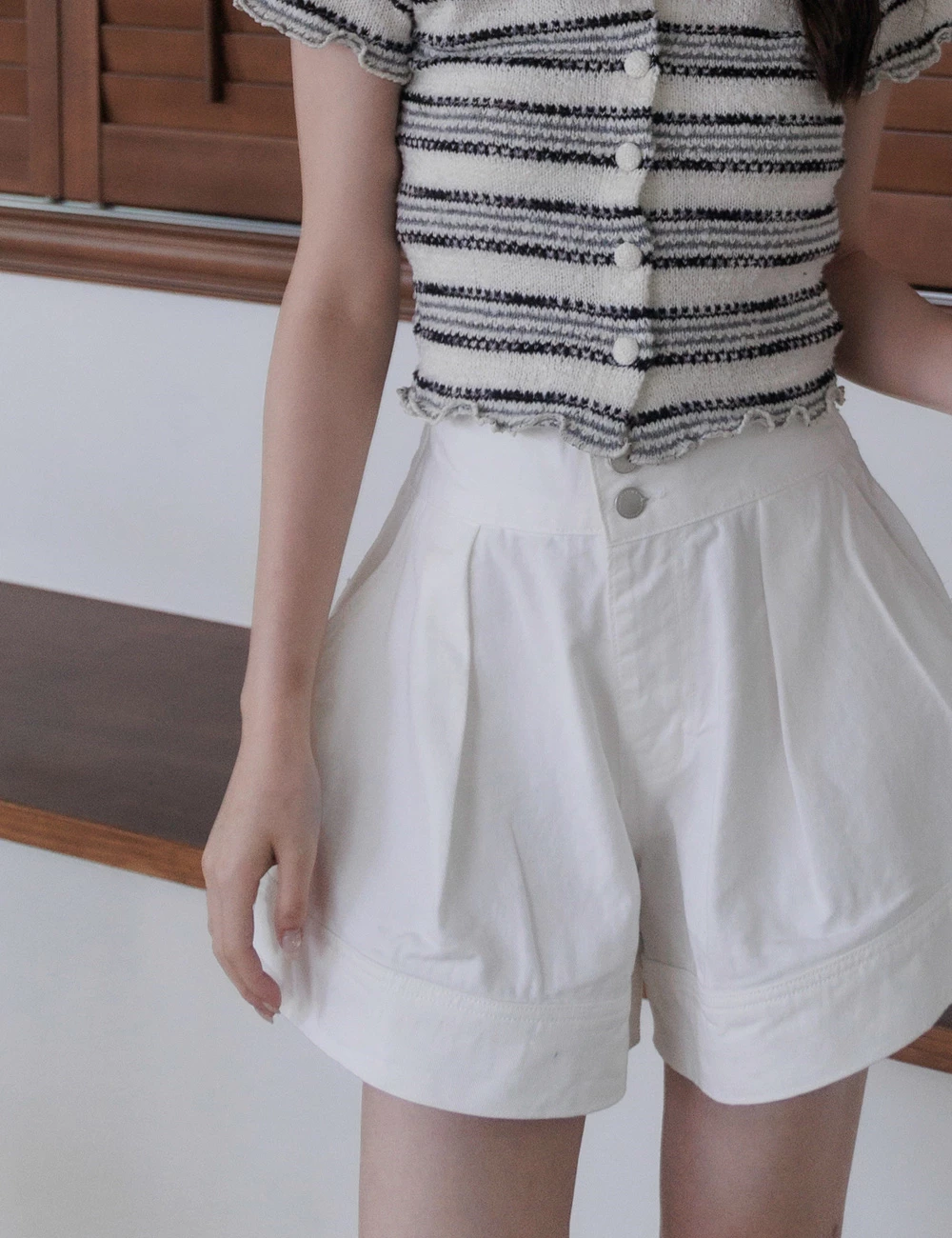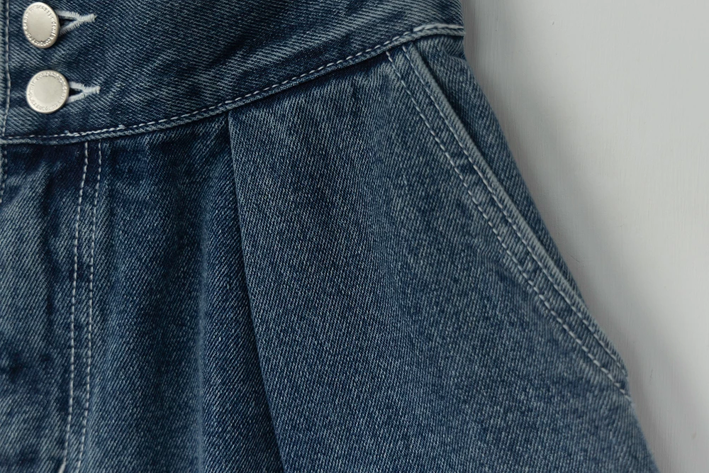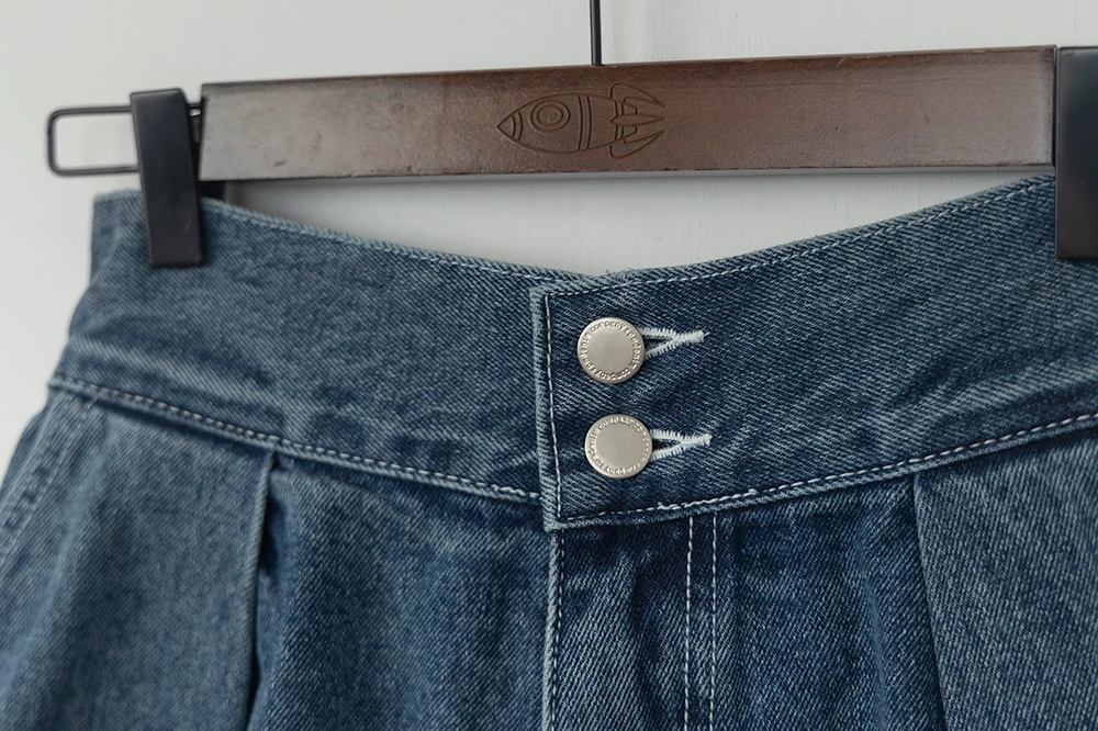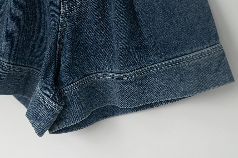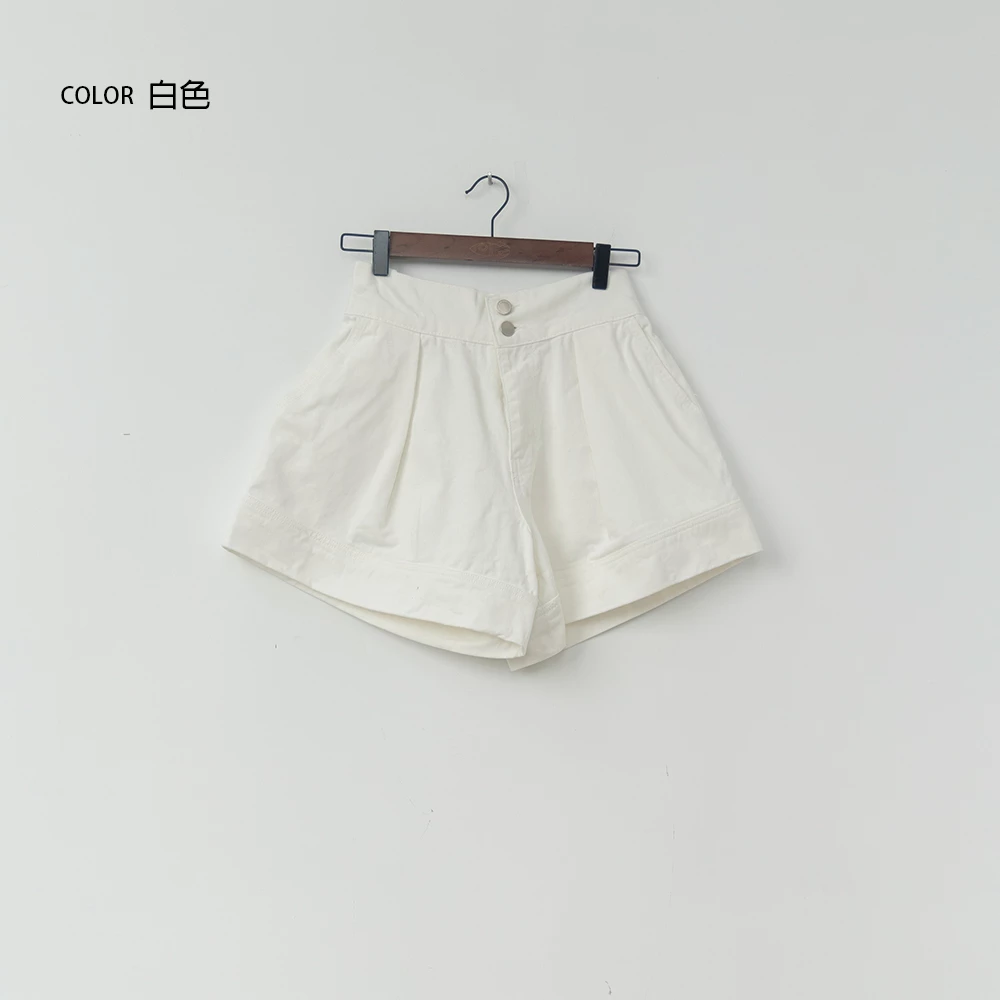 後鬆緊雙釦牛仔短褲