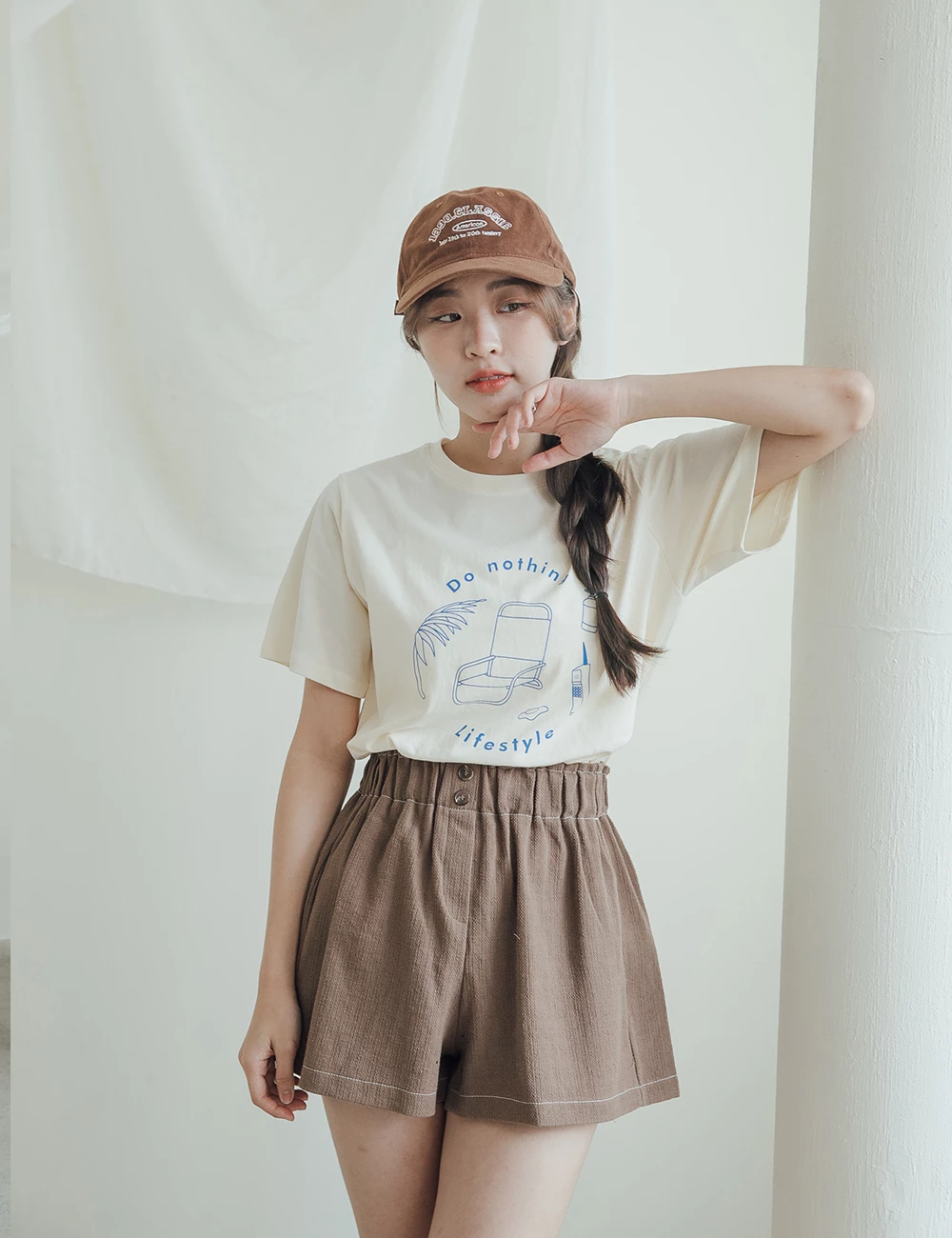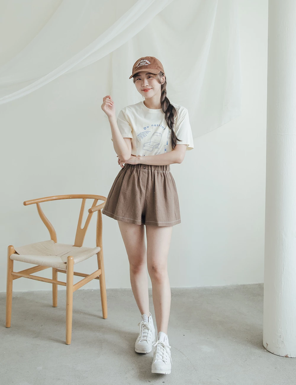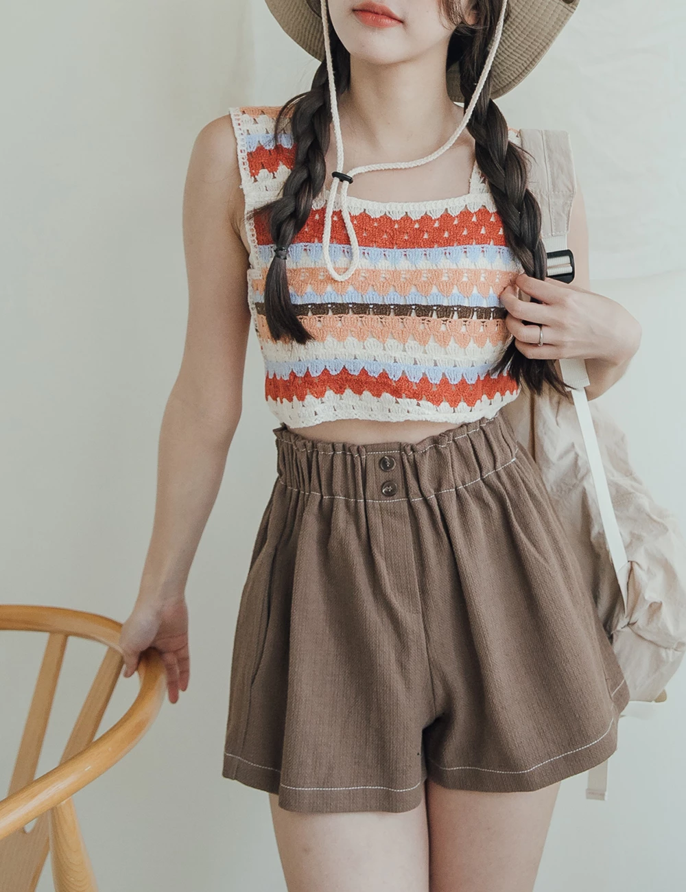 正韓-後腰鬆緊雙釦短褲