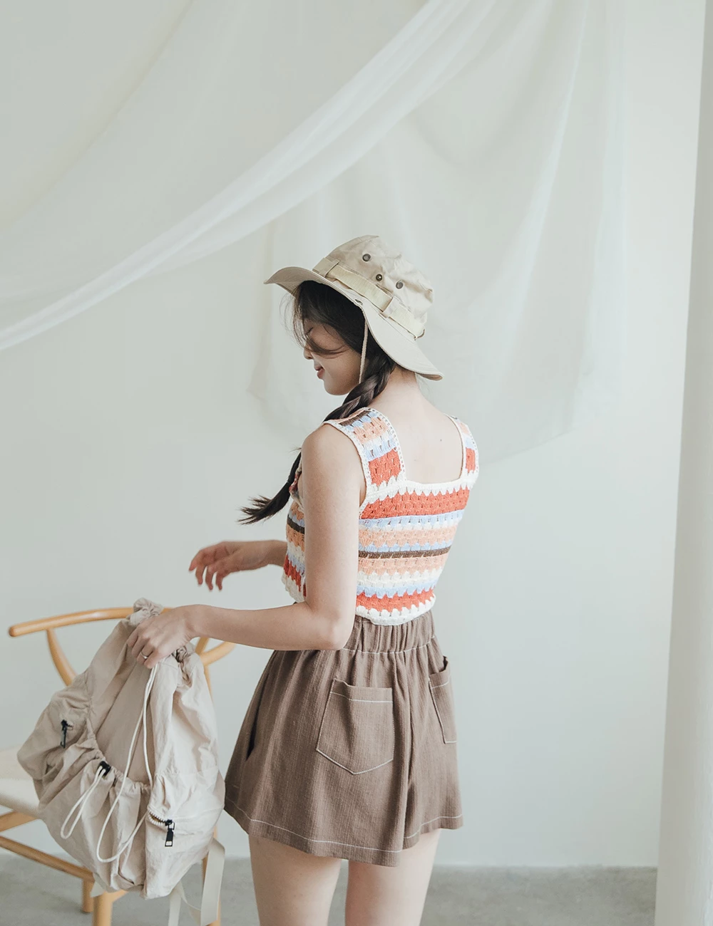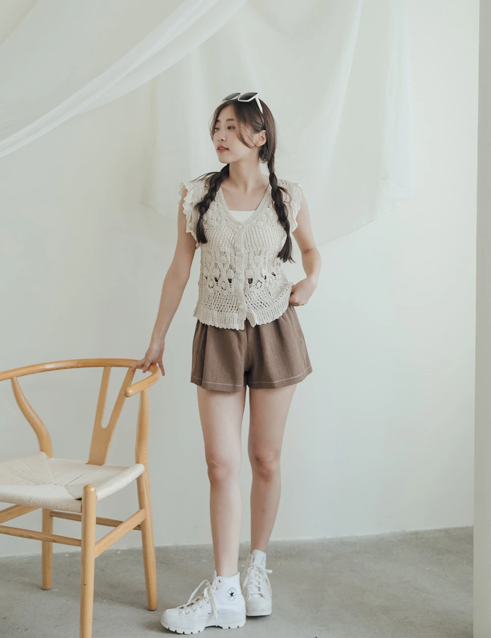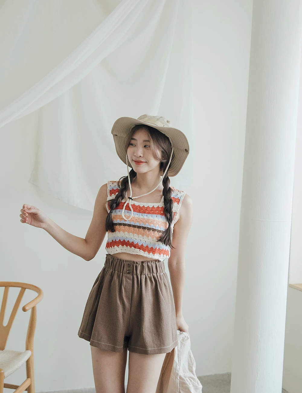 正韓-後腰鬆緊雙釦短褲