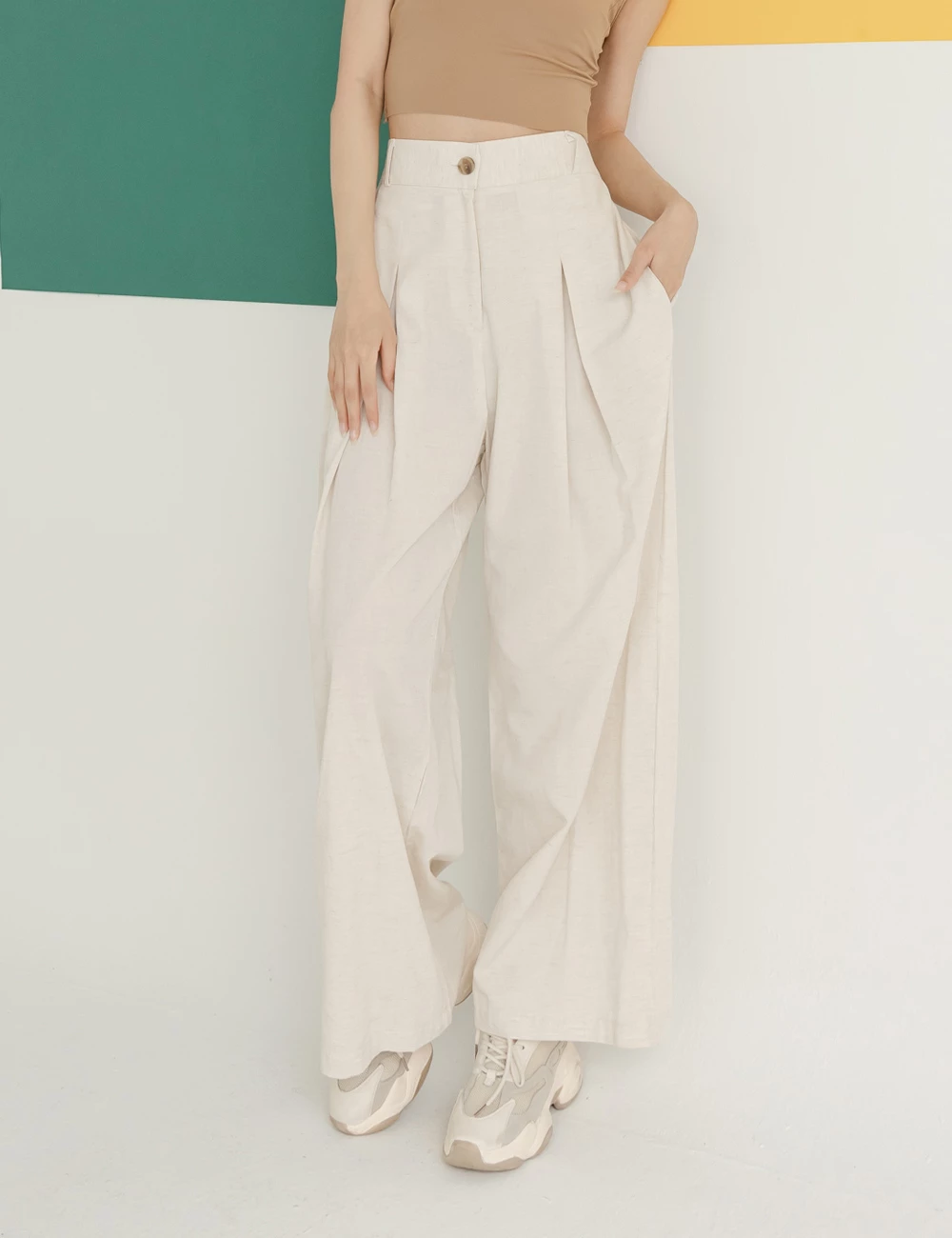 正韓-後腰鬆緊前打摺寬褲