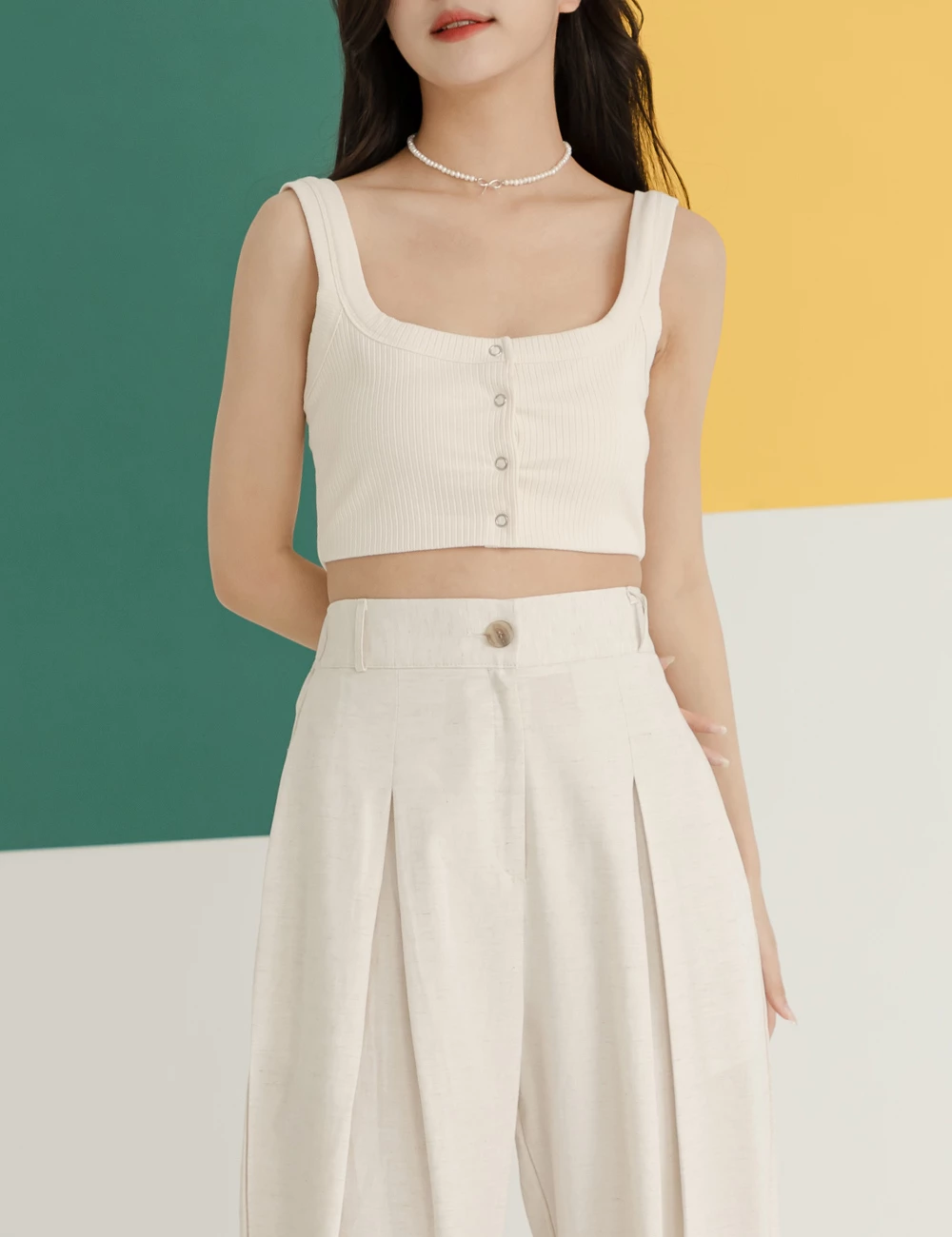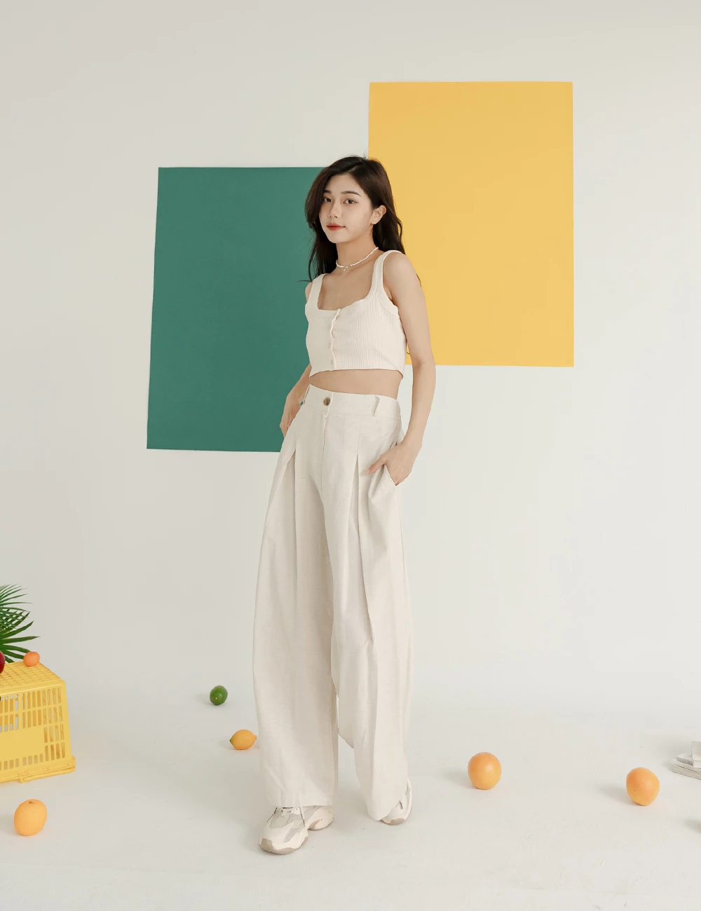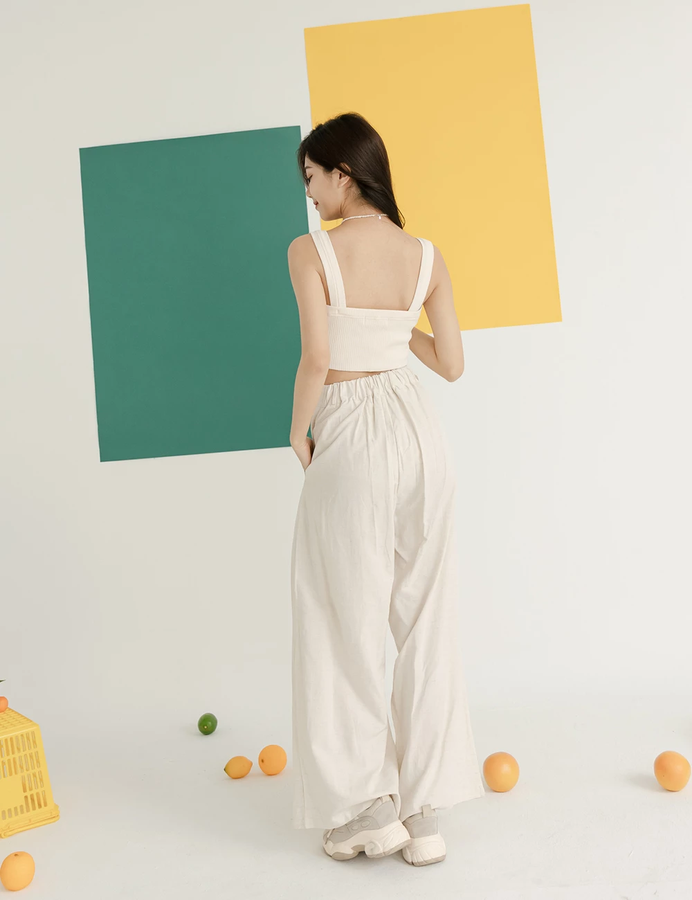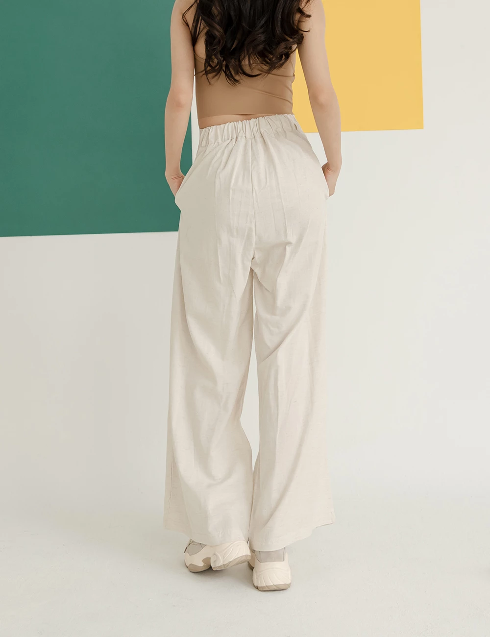 正韓-後腰鬆緊前打摺寬褲 | Space Picnic