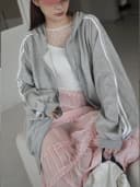 正韓-寬袖拉鍊連帽外套
