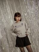 正韓-刺繡蝴蝶結字母大學Tee