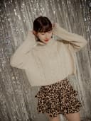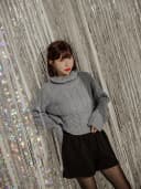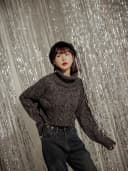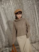 正韓-高領麻花針織上衣
